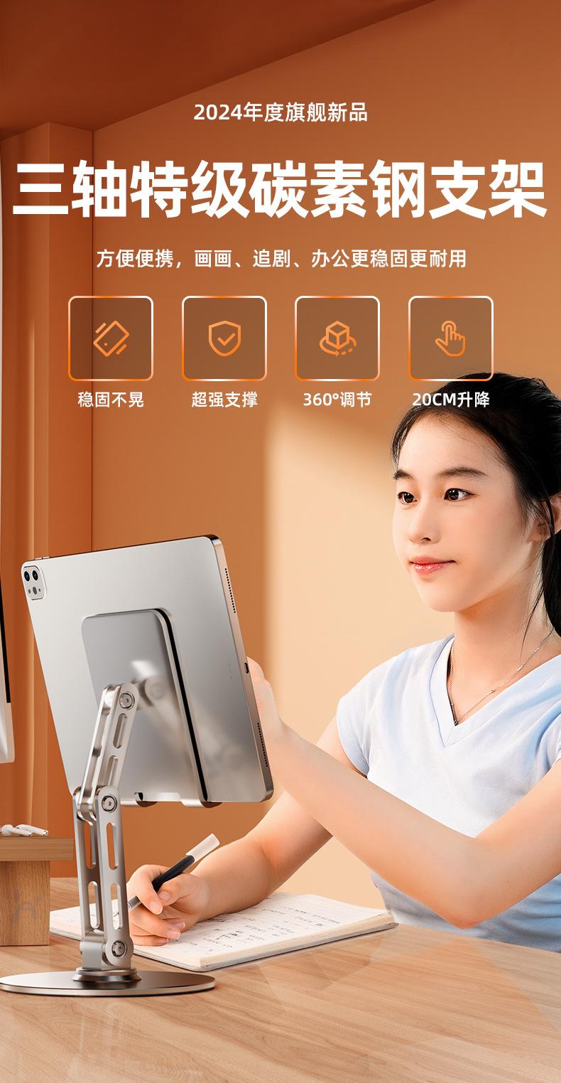 Soporte plegable para teléfono móvil, totalmente metálico, giratorio de 360 grados, para escritorio, tableta, soporte portátil para teléfono móvil en vivo y perezoso