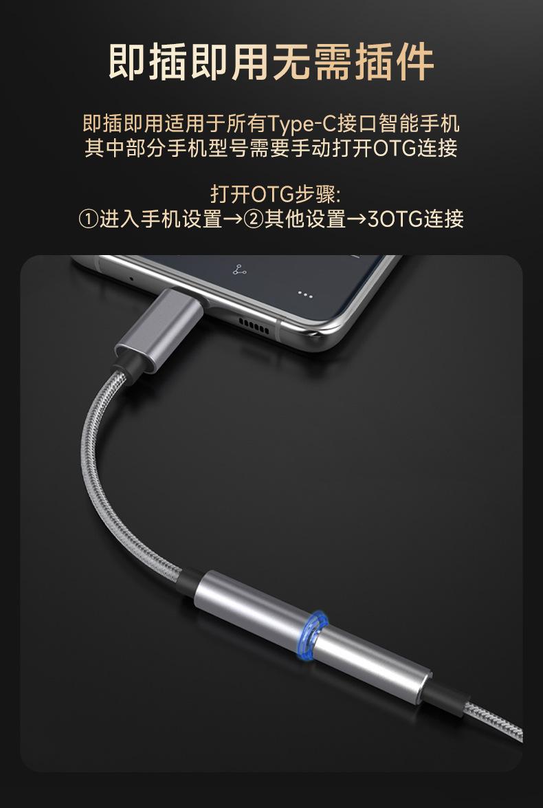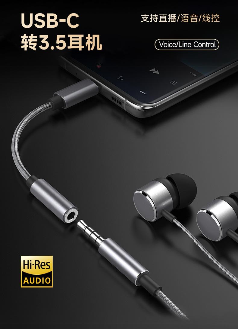 Adaptador Convertidor de Auriculares Tipo C Cable Adaptador Tipo C a 3.5mm Adaptador de Enchufe de Orificio Redondo para Audio de Teléfono Móvil
