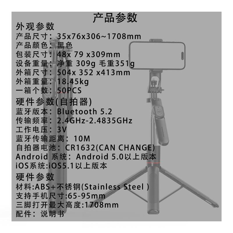 Tripode selfie stick transfronterizo con gimbal de mano bluetooth y artefacto para selfies, soporte para teléfono móvil bluetooth, luz de relleno