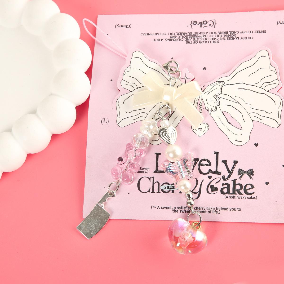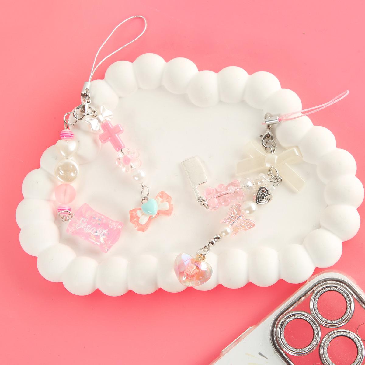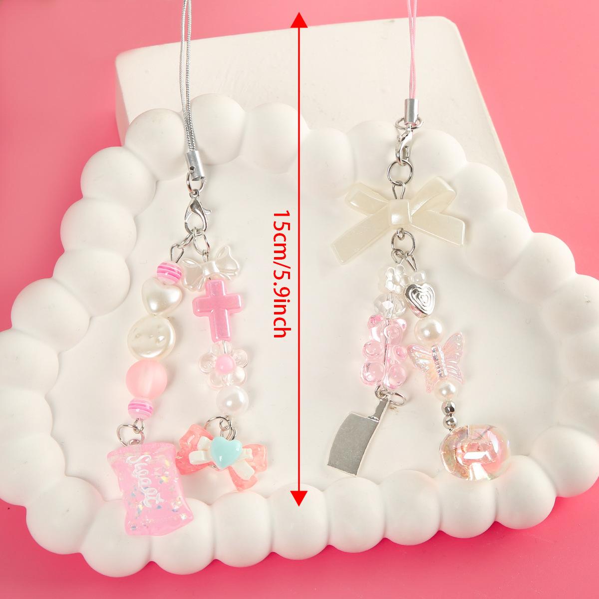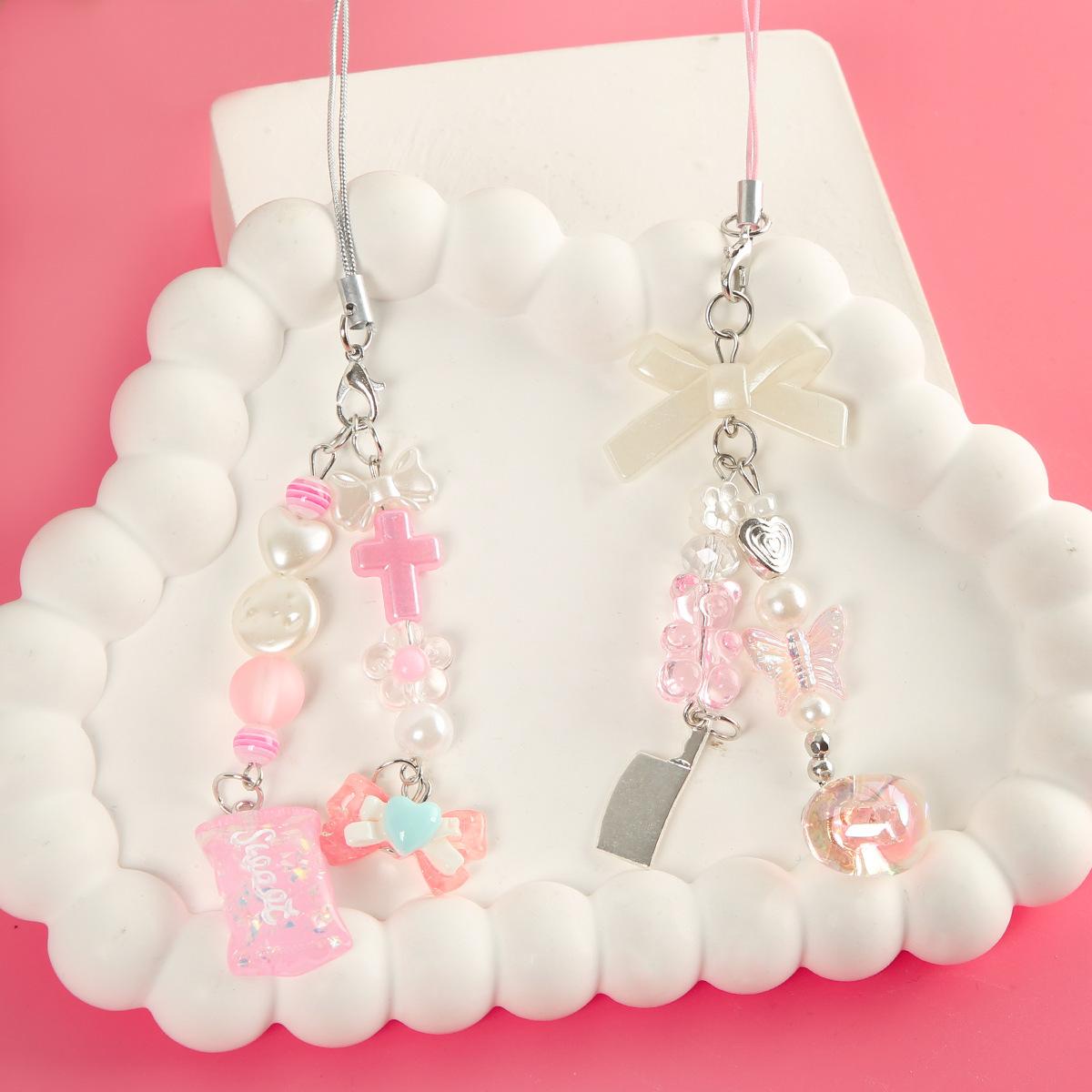 Ins Dulce Colgante de Oso con Lazo Joyería de Corazón Cadena de Cuentas DIY Cordón Universal para Teléfono Móvil Colgante para Teléfono Móvil