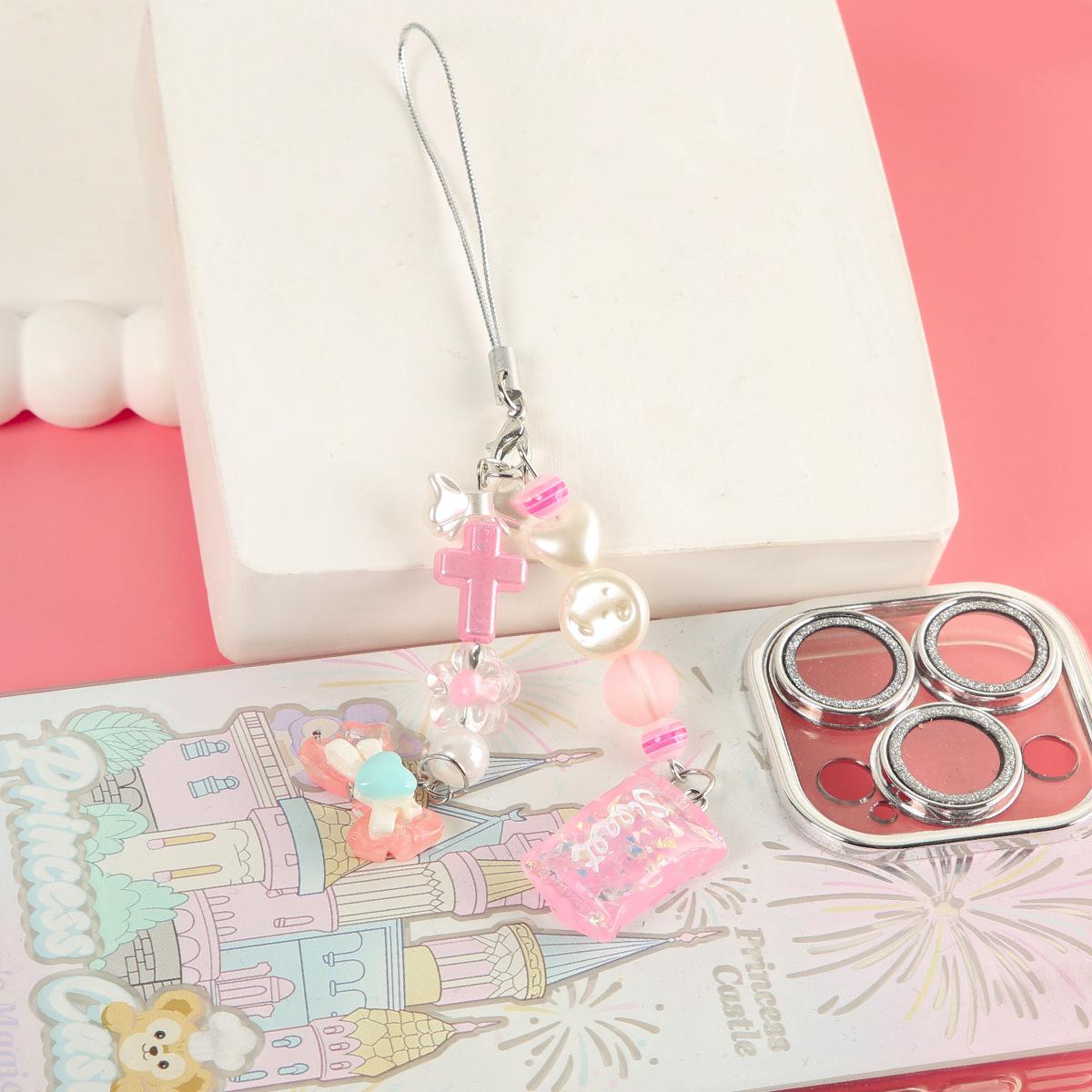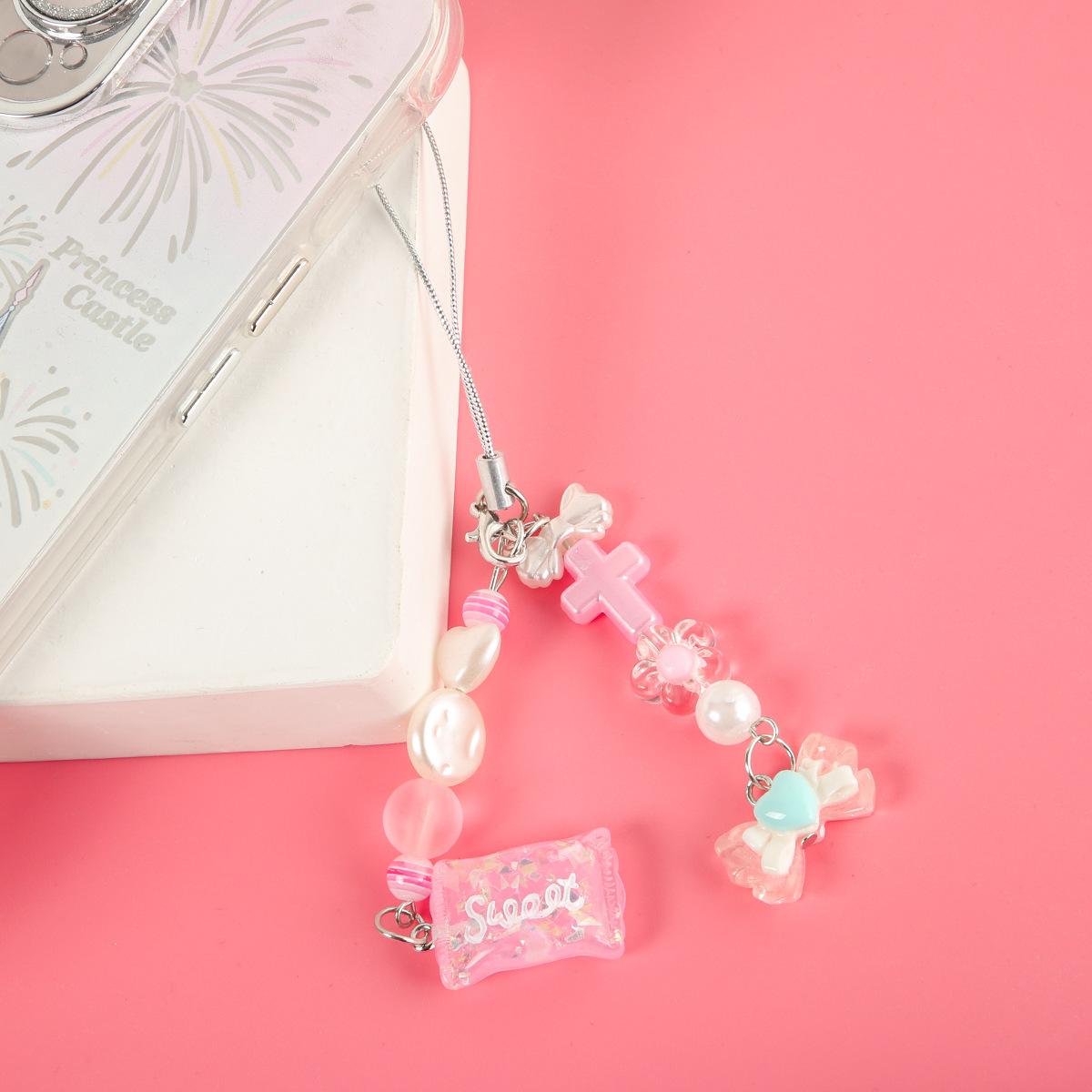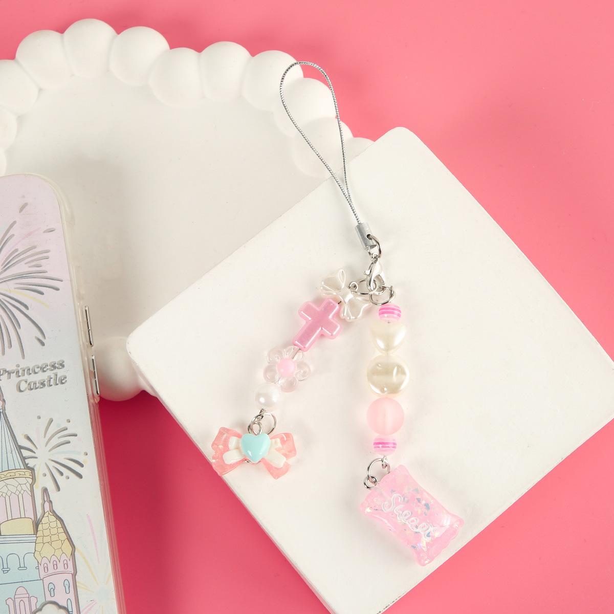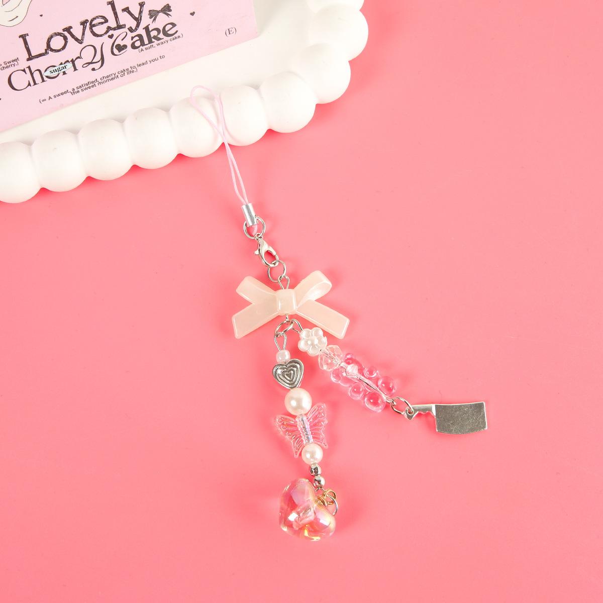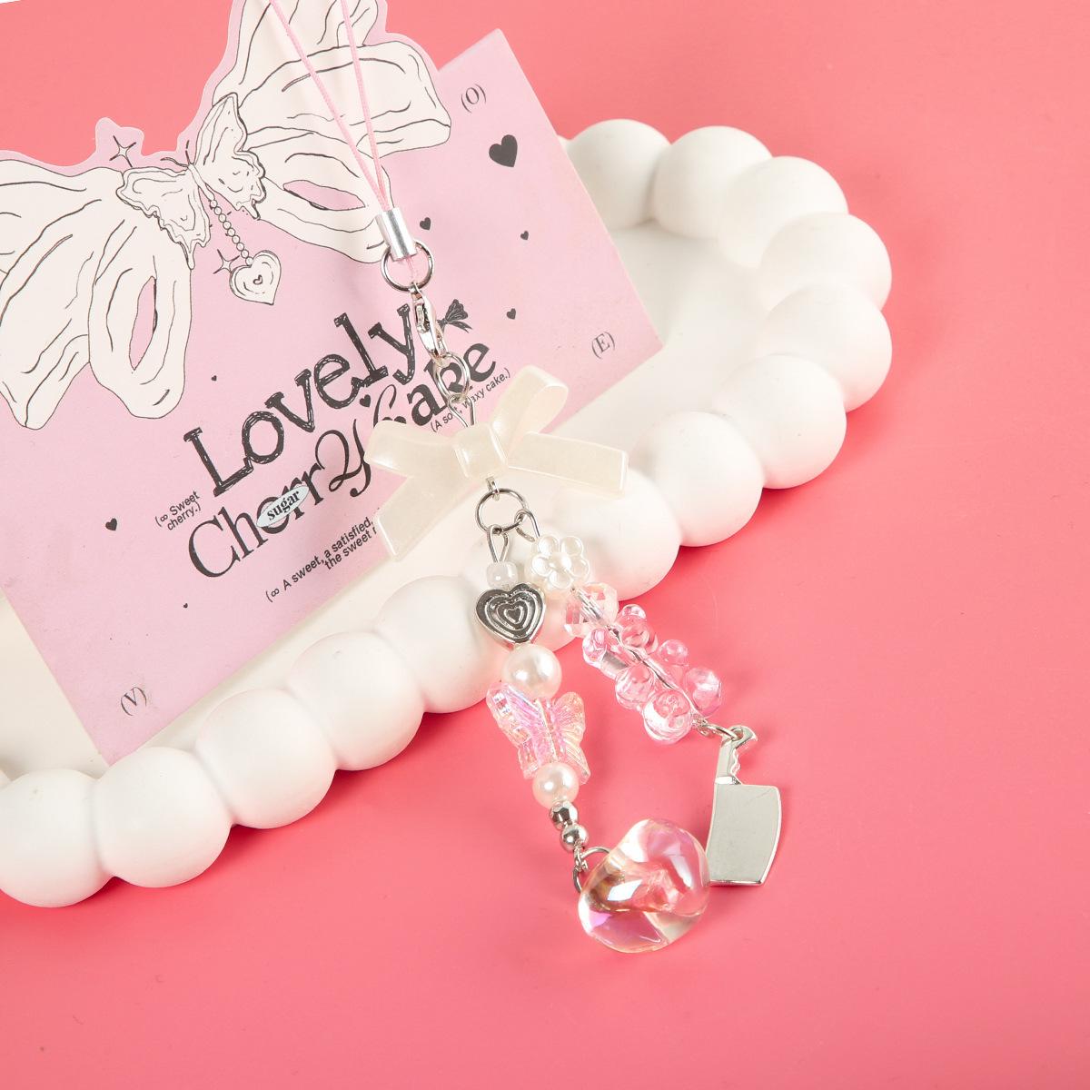 Ins Dulce Colgante de Oso con Lazo Joyería de Corazón Cadena de Cuentas DIY Cordón Universal para Teléfono Móvil Colgante para Teléfono Móvil
