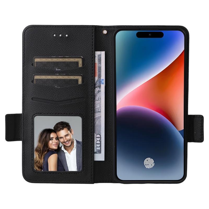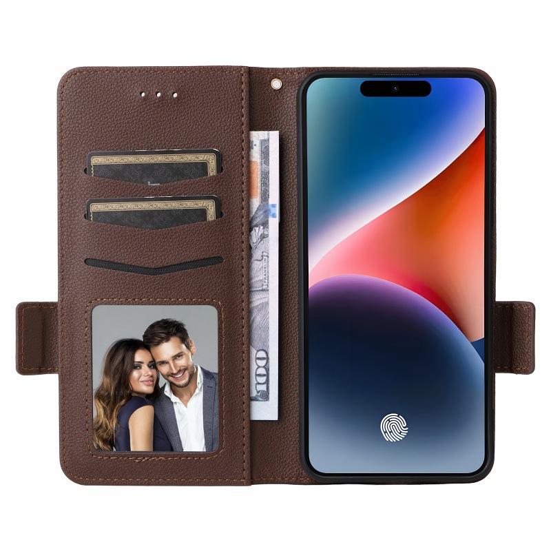 【Características】Cuero de lichi de alta calidad, resistente al desgaste, resistente a las caídas, billetera portátil con ranura para tarjetas