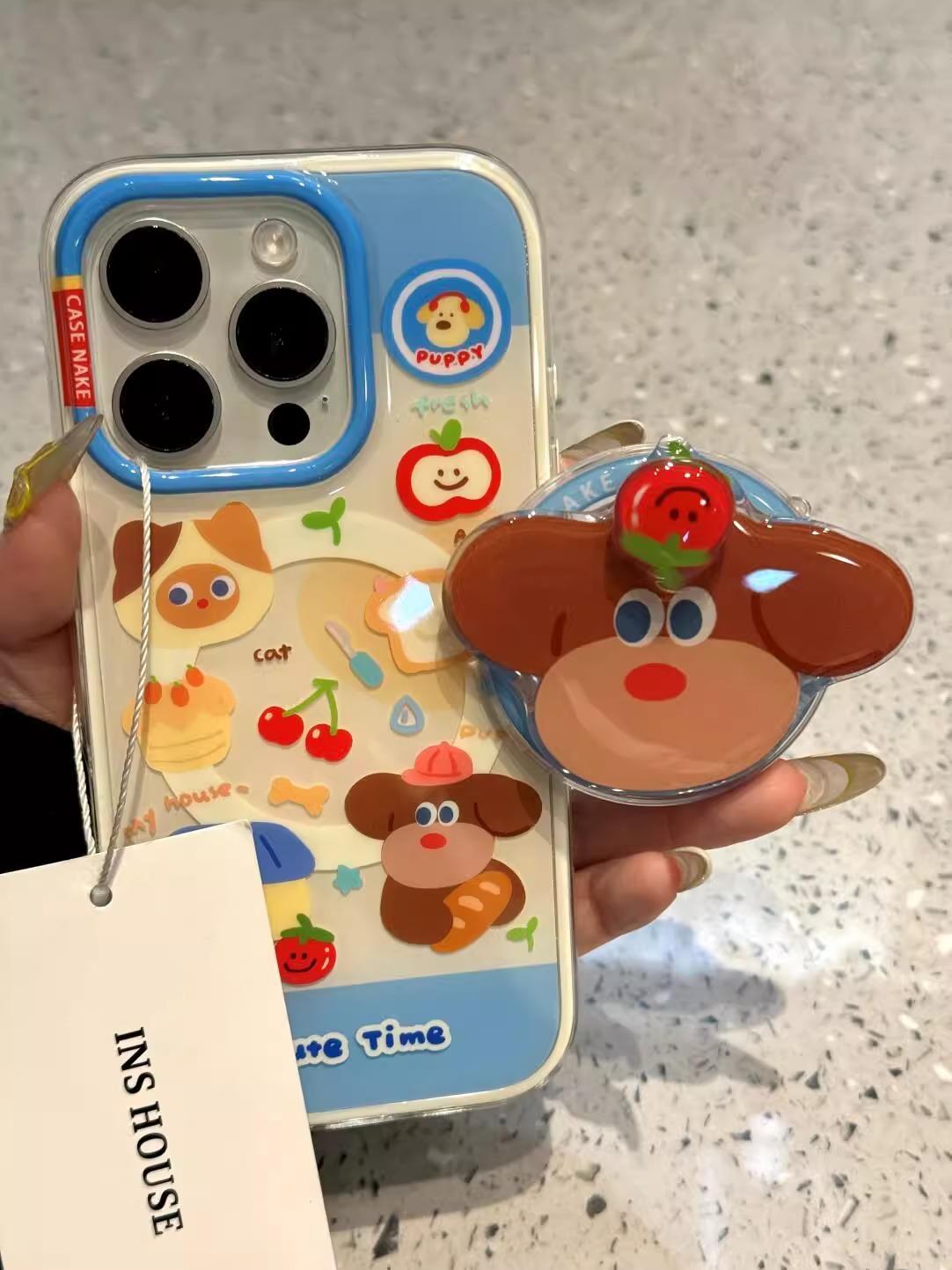 Blue and yellow background apple puppy magnetic attraction (single shell)