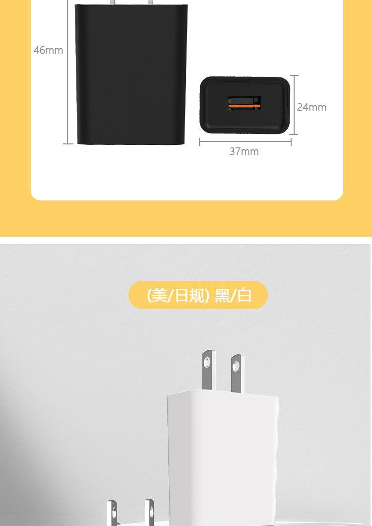 Cargador de Teléfono Móvil 5V2A Interfaz USB Universal Estándar Europeo Estándar Americano Certificación de Seguridad 10W Cabezal de Cargador para Pequeño Electrodoméstico