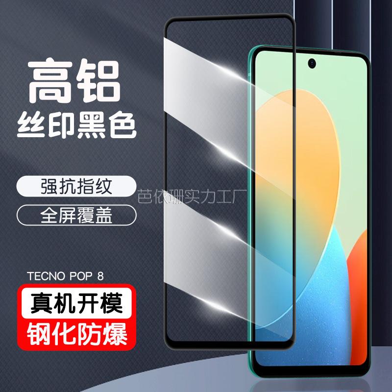 Adecuado para Tecno Pop 8 Película Templada de Pantalla Completa Tecno Pop8 Serigrafía de Doble Fortaleza Película de Vidrio Templado de Alta Definición