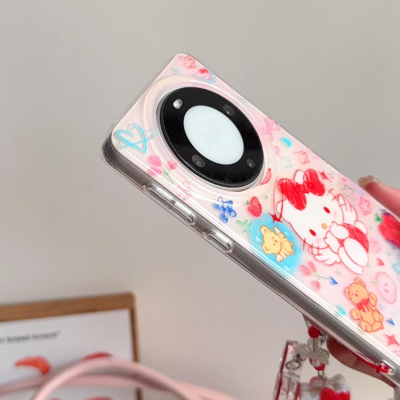 Funda con colgante de gato KT con diseño de ángel de ensueño para Huawei P70Pro, Mate40/50, P60Pro