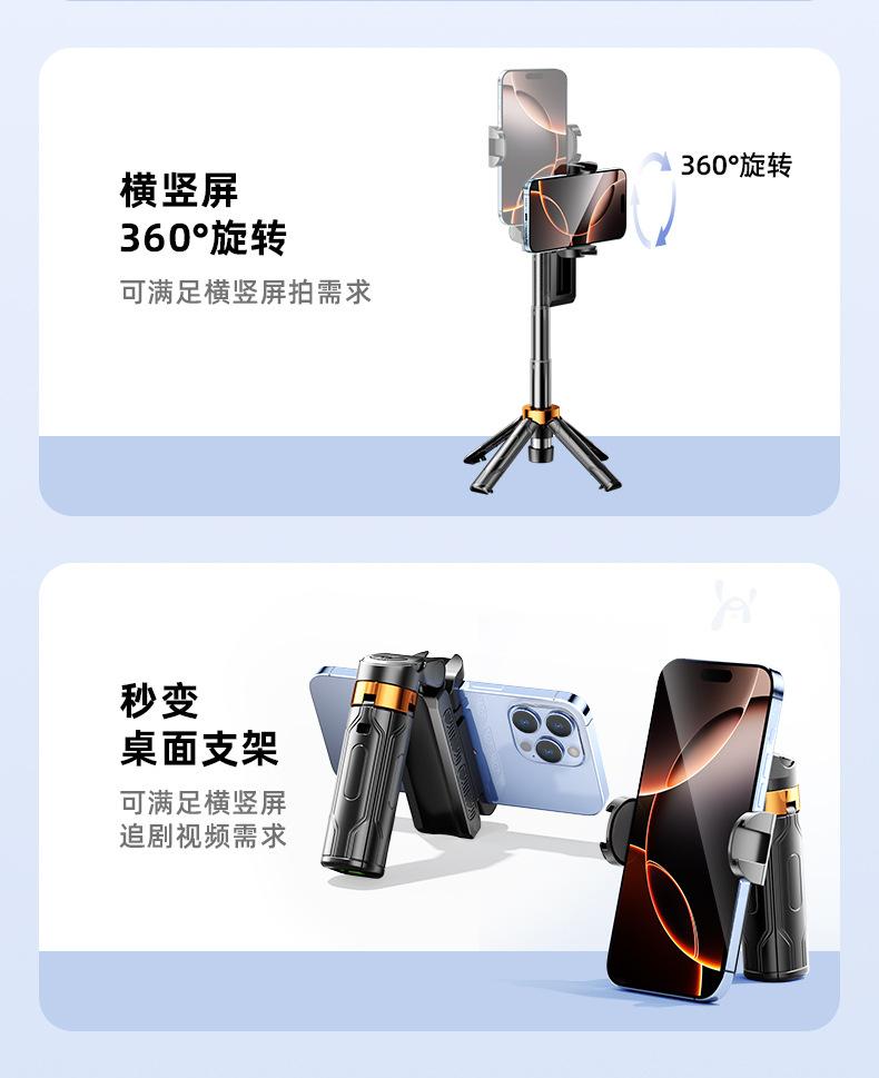 Mini palo selfie tres en uno portátil soporte para teléfono móvil artefacto para fotos vlog disparo de mano soporte de escritorio para transmisión en vivo