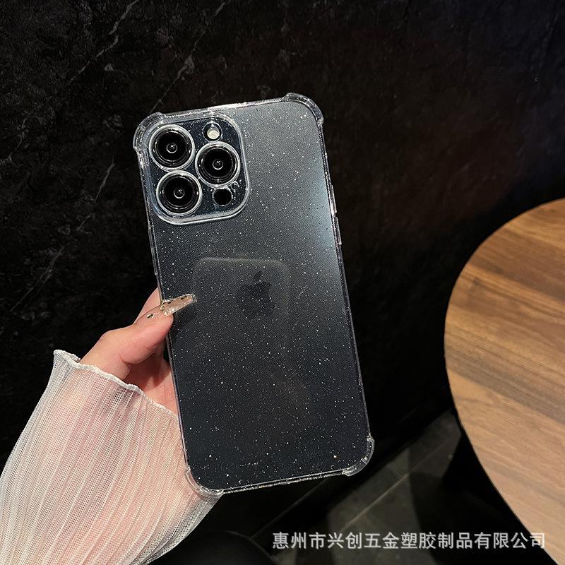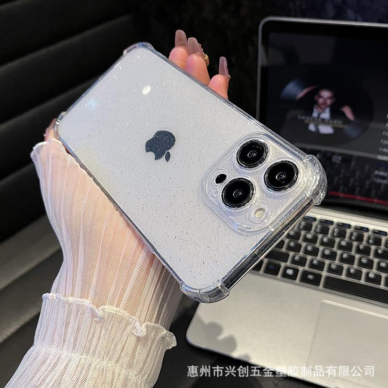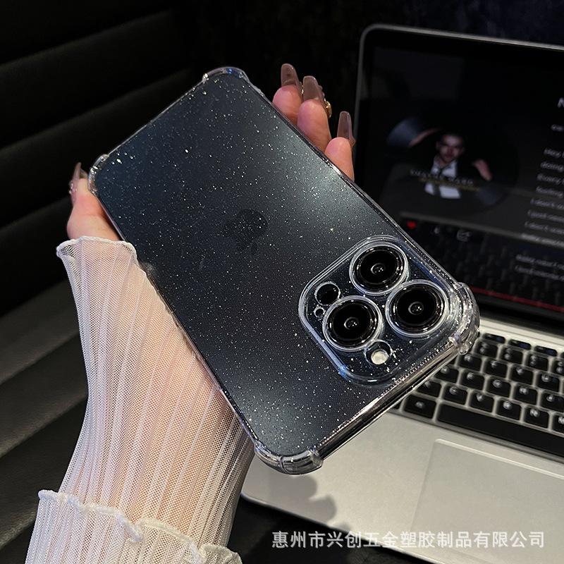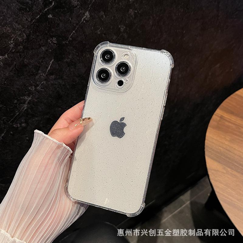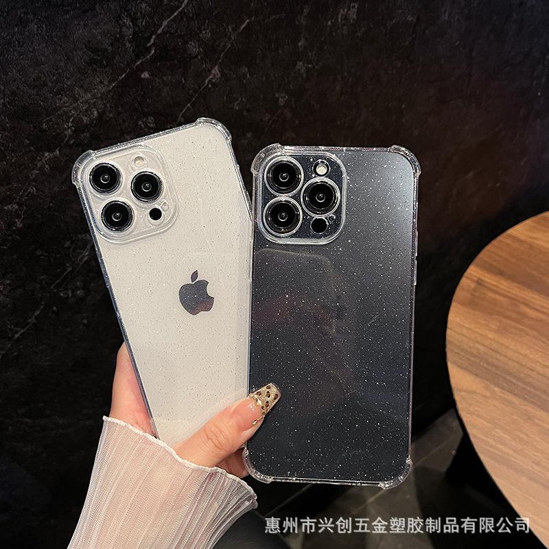 Funda protectora para teléfono móvil Apple 16, iPhone 15, Pro Max 14, con carcasa de TPU transparente con purpurina simple y anticaídas