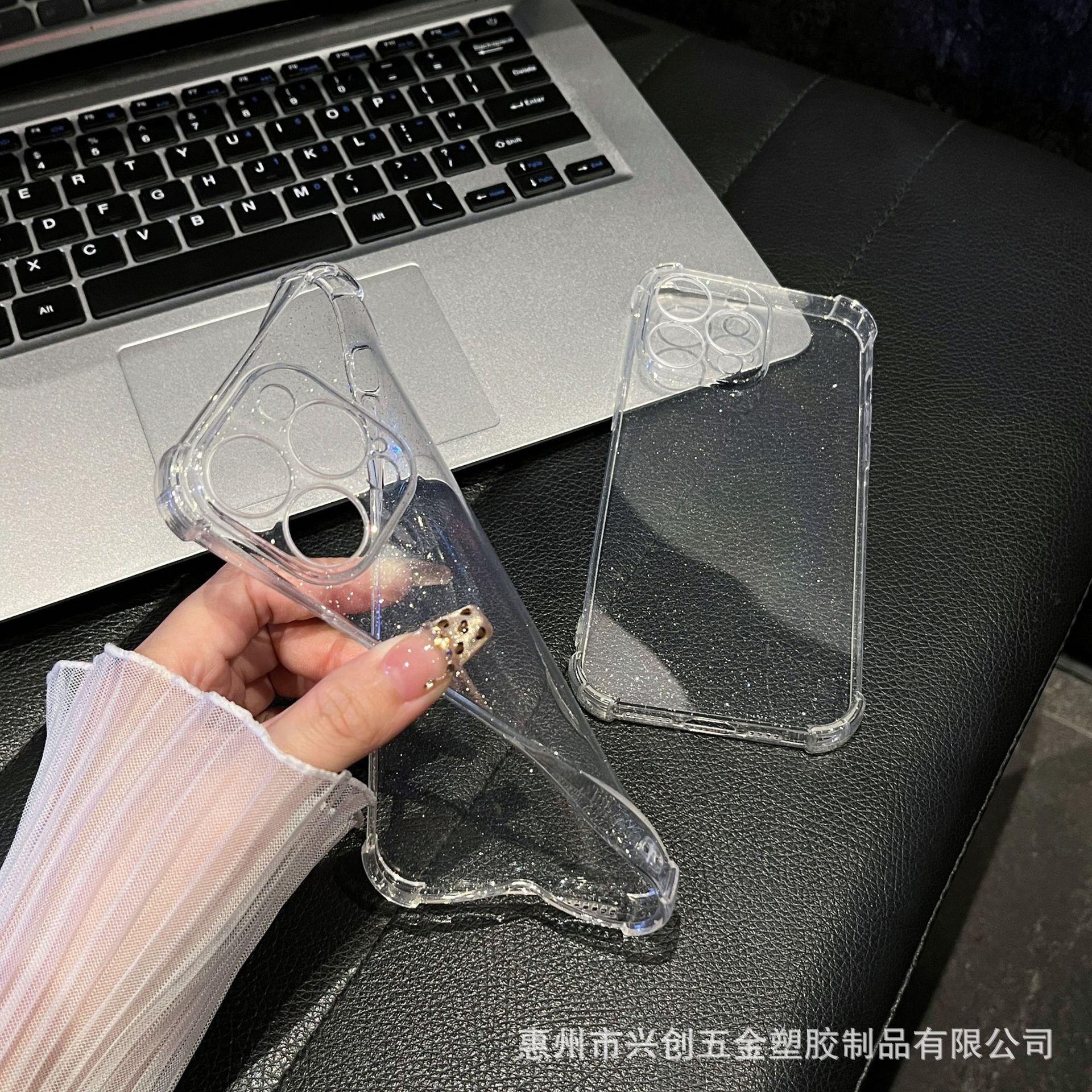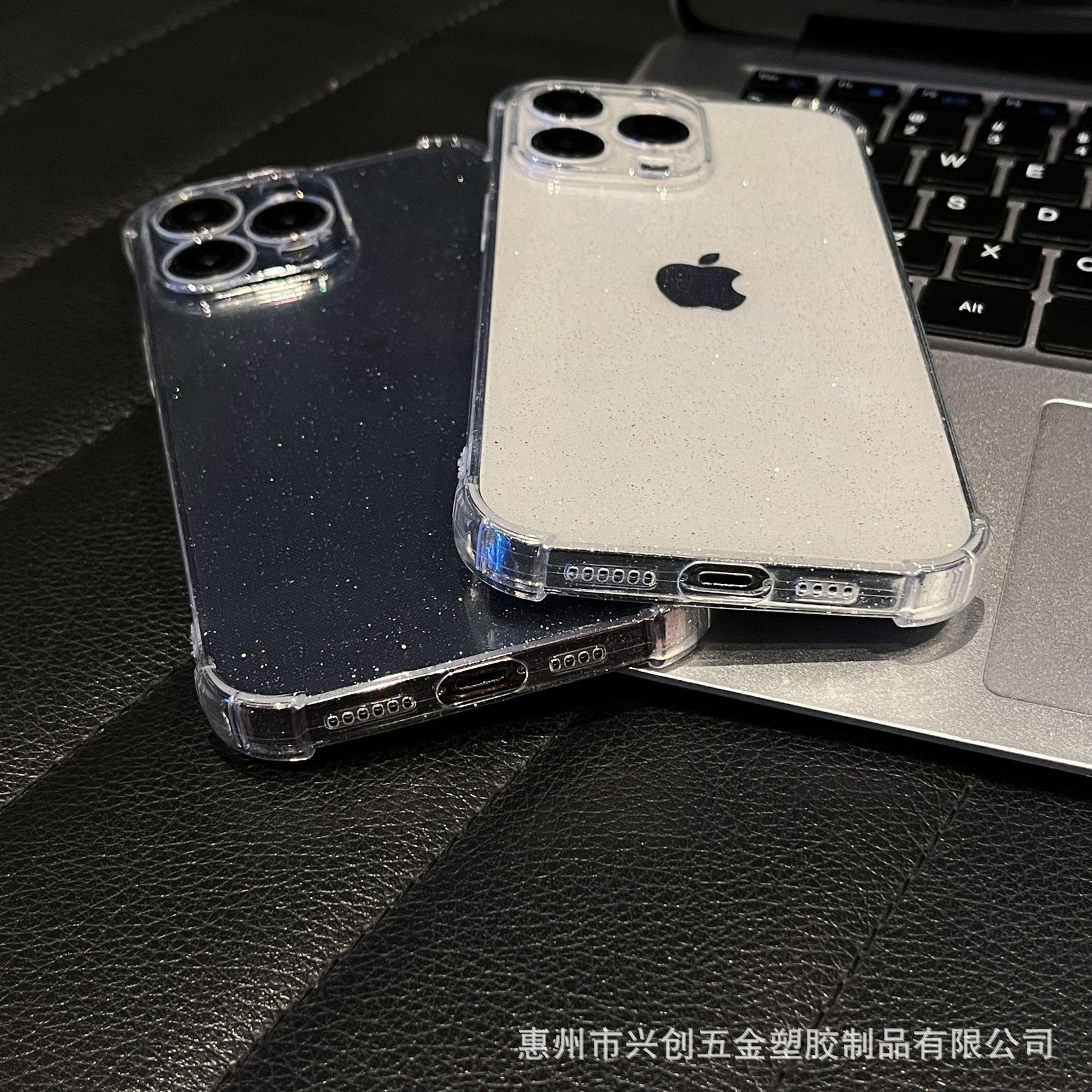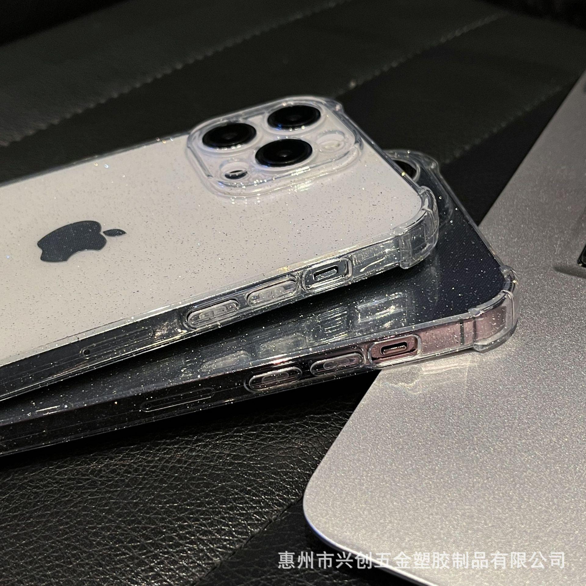 Funda protectora para teléfono móvil Apple 16, iPhone 15, Pro Max 14, con carcasa de TPU transparente con purpurina simple y anticaídas