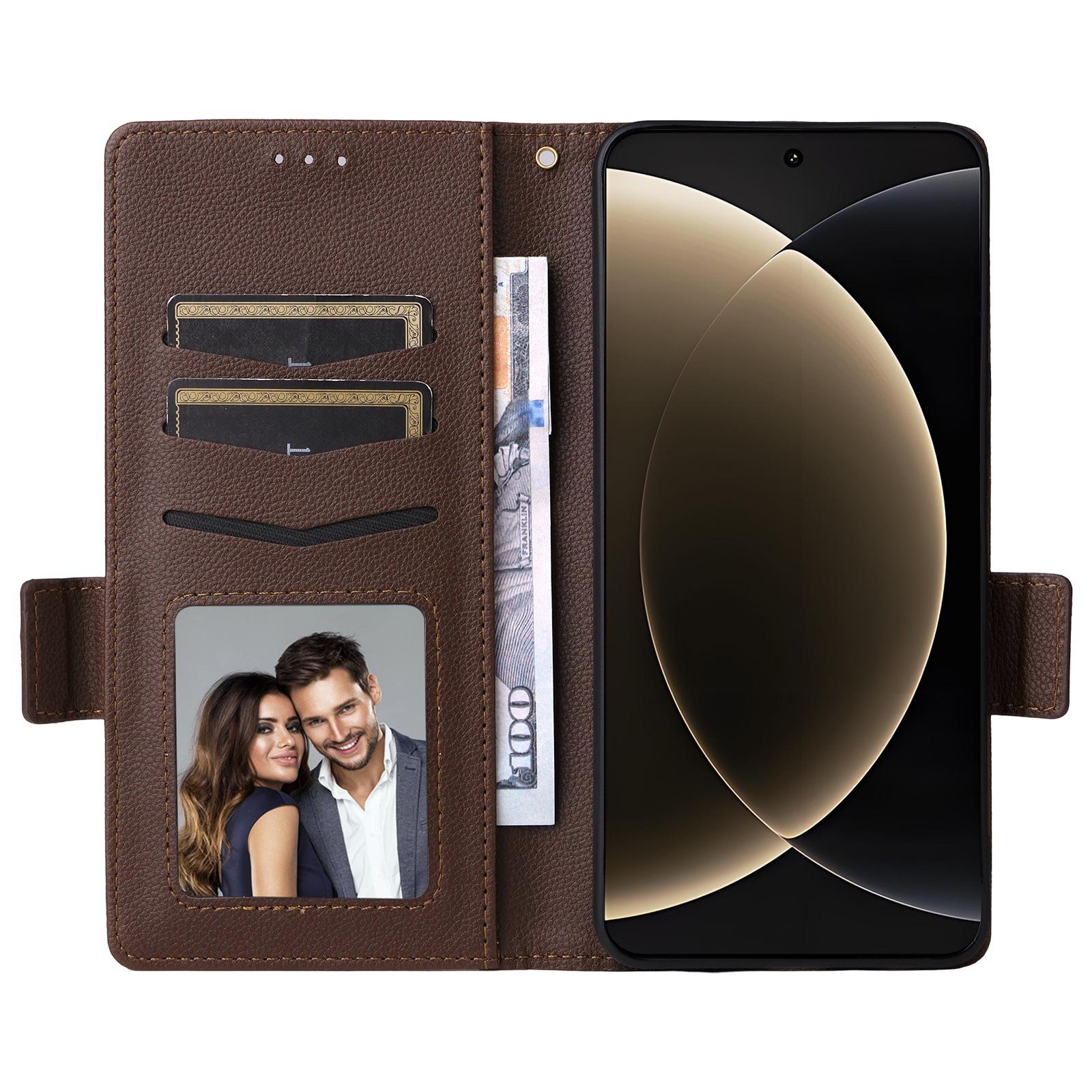 【Características】Cuero de lichi de alta calidad, resistente al desgaste, resistente a las caídas, billetera portátil con ranura para tarjetas