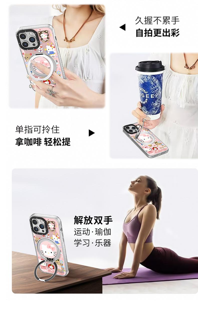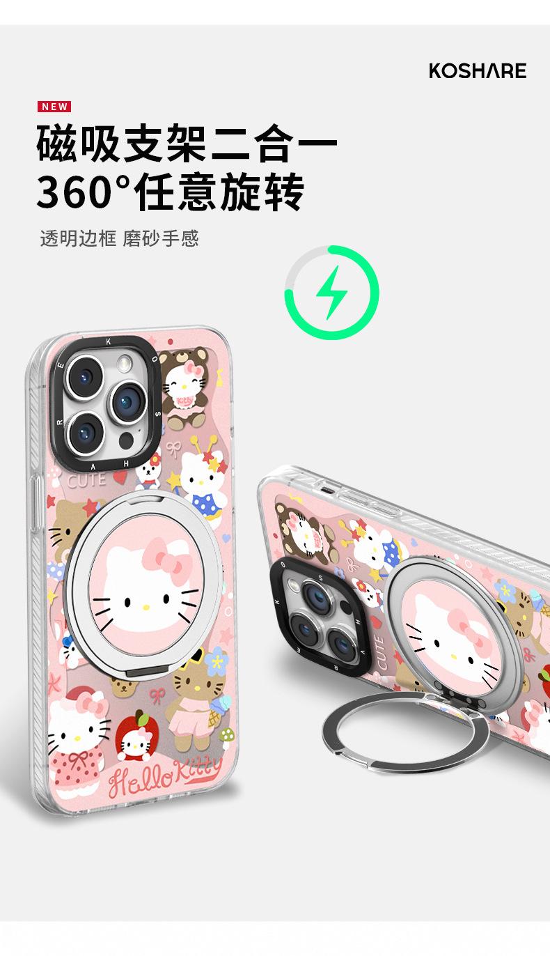 Imd vitality shell - transparent white - full screen hello kitty + fulcrum stand (large hole)★360 degree rotat...