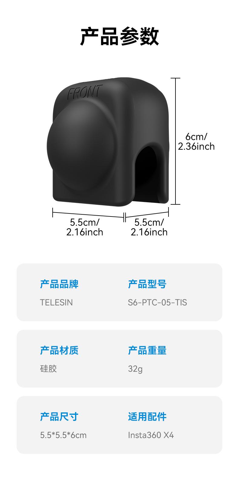 Telesin Shadowstone Estuche Protector de Lente Insta360X4 Estuche Protector de Silicona para Lente Panorámica de Cámara de Acción X4