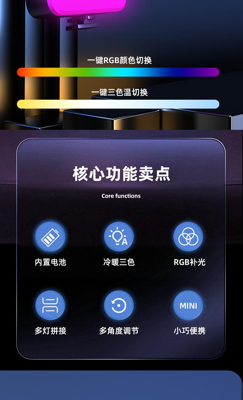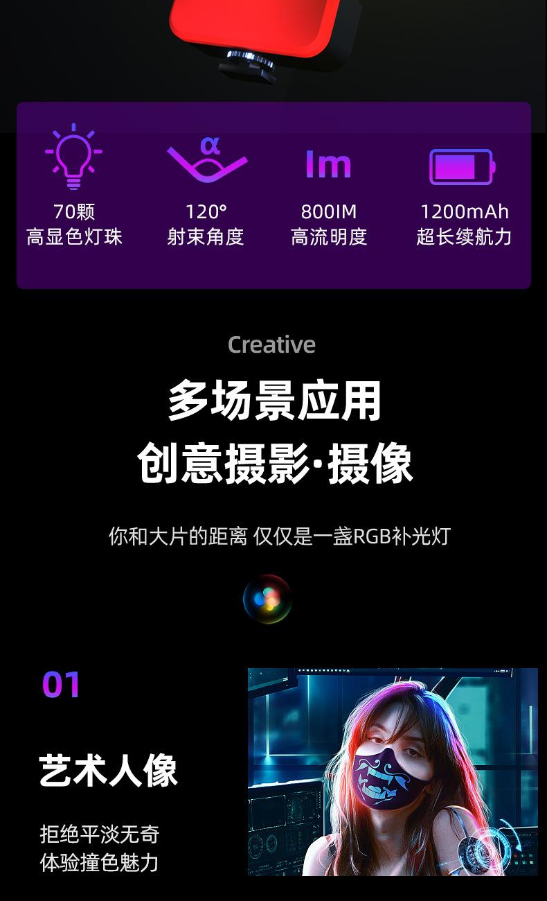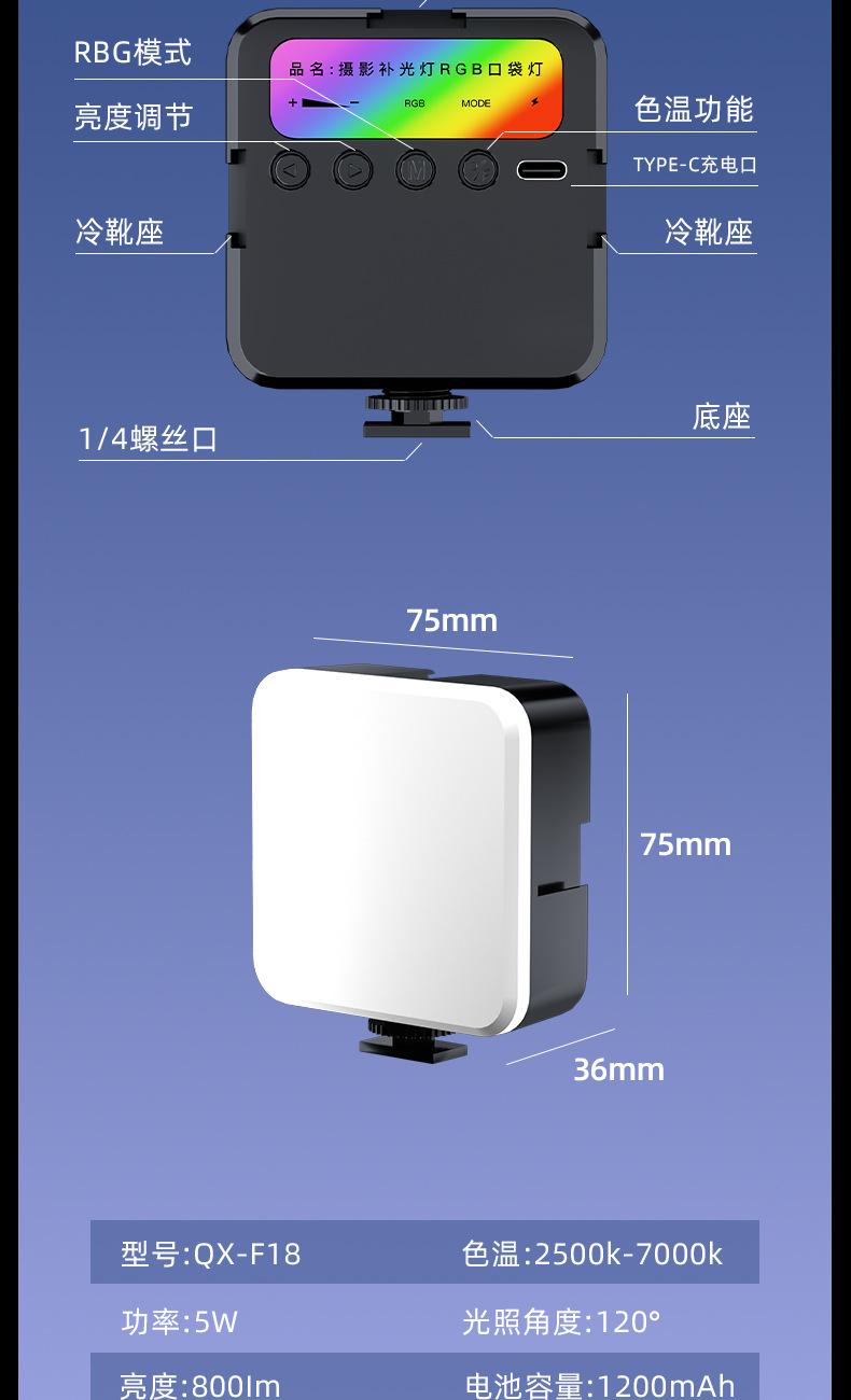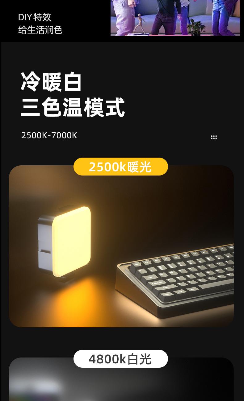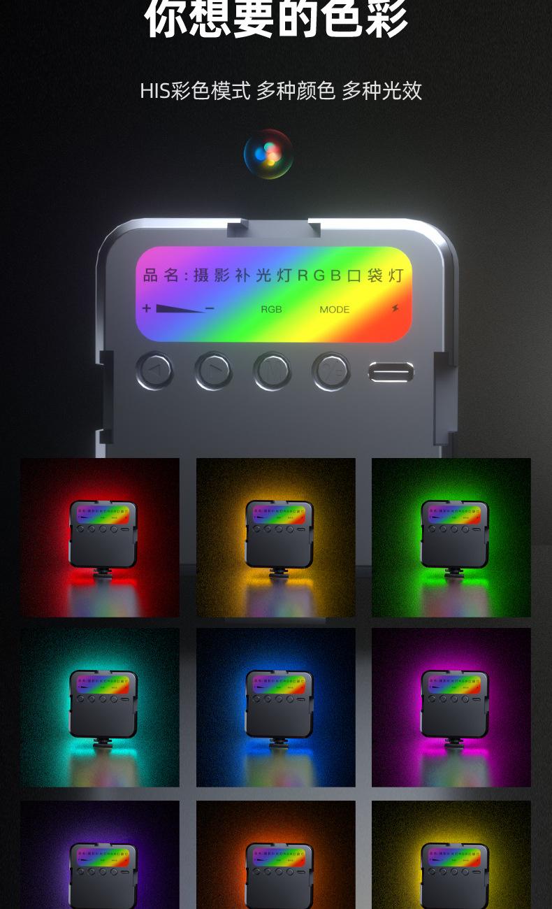 Luz de relleno LED con temporizador automático, iluminación portátil, luz de bolsillo RGB de mano, luz para fotografía móvil en vivo, superventas transfronterizas