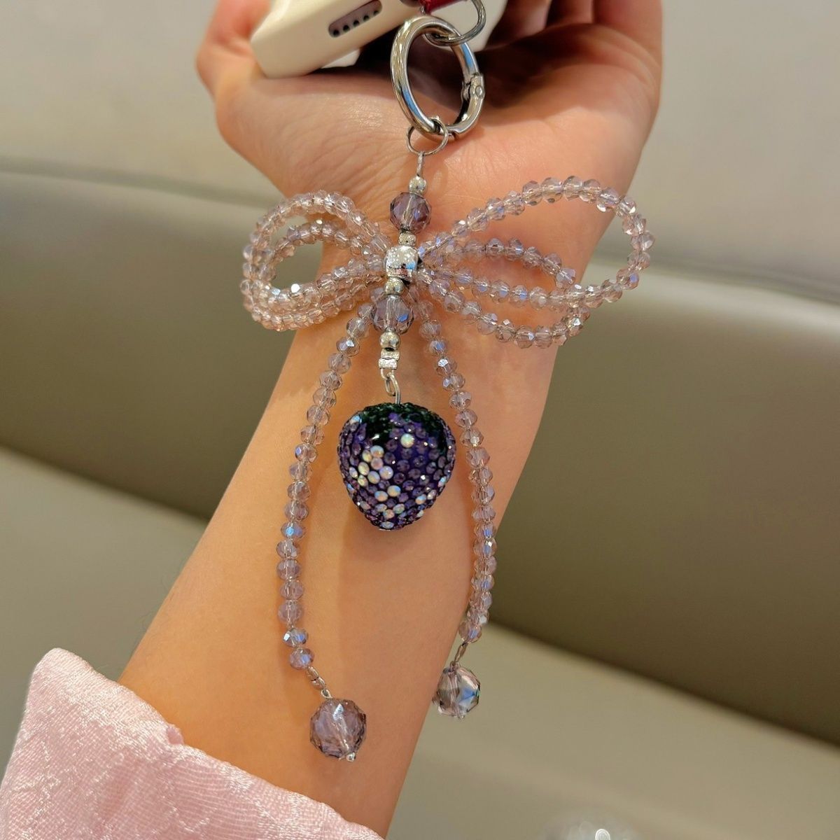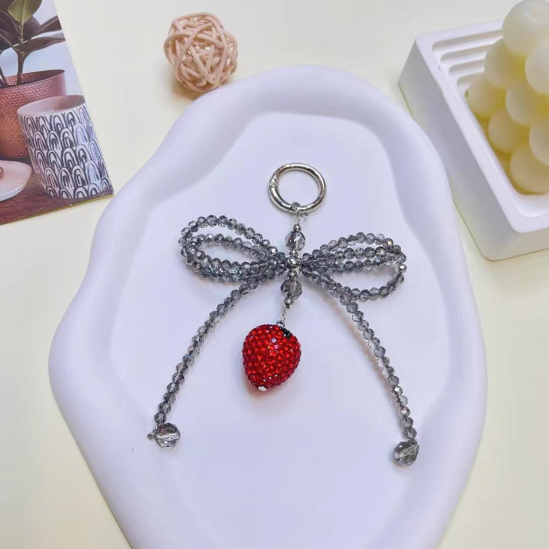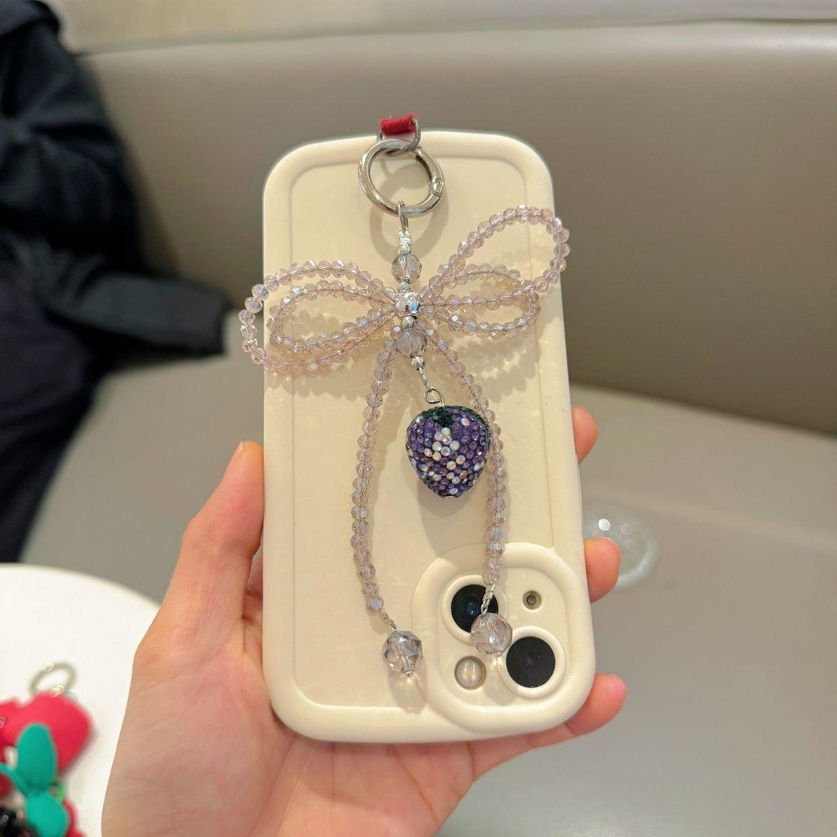 Cadena para Celular con Cuentas Explosivas Lazo de Cristal Fresa Cadena Colgante para Bolsa de Llaves Cordón de Perlas para Celular Pequeño Regalo
