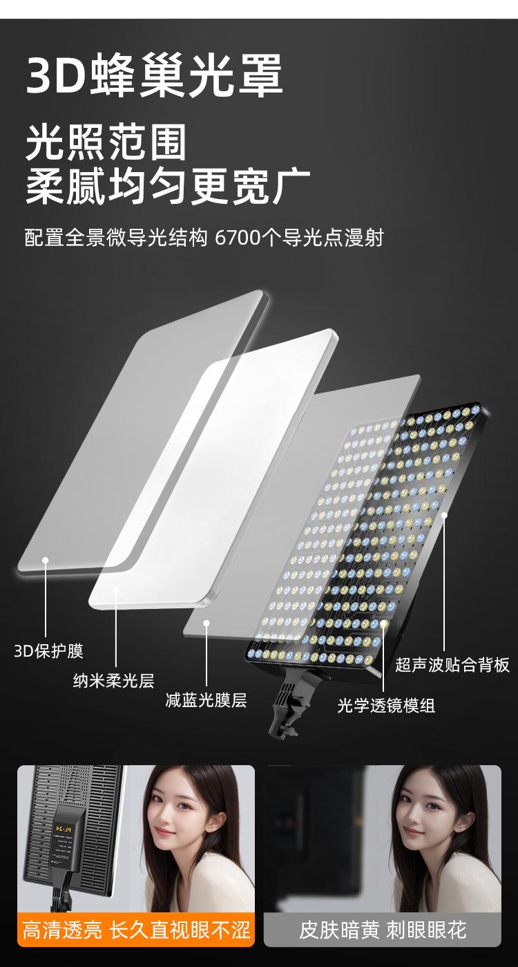Luz de Relleno para Transmisión en Vivo, Luz para Fotografía de Panel Plano, Artefacto de Belleza para Ancla de Celebridad de Internet, Luz Cuadrada para Fotografía y Video en Interiores