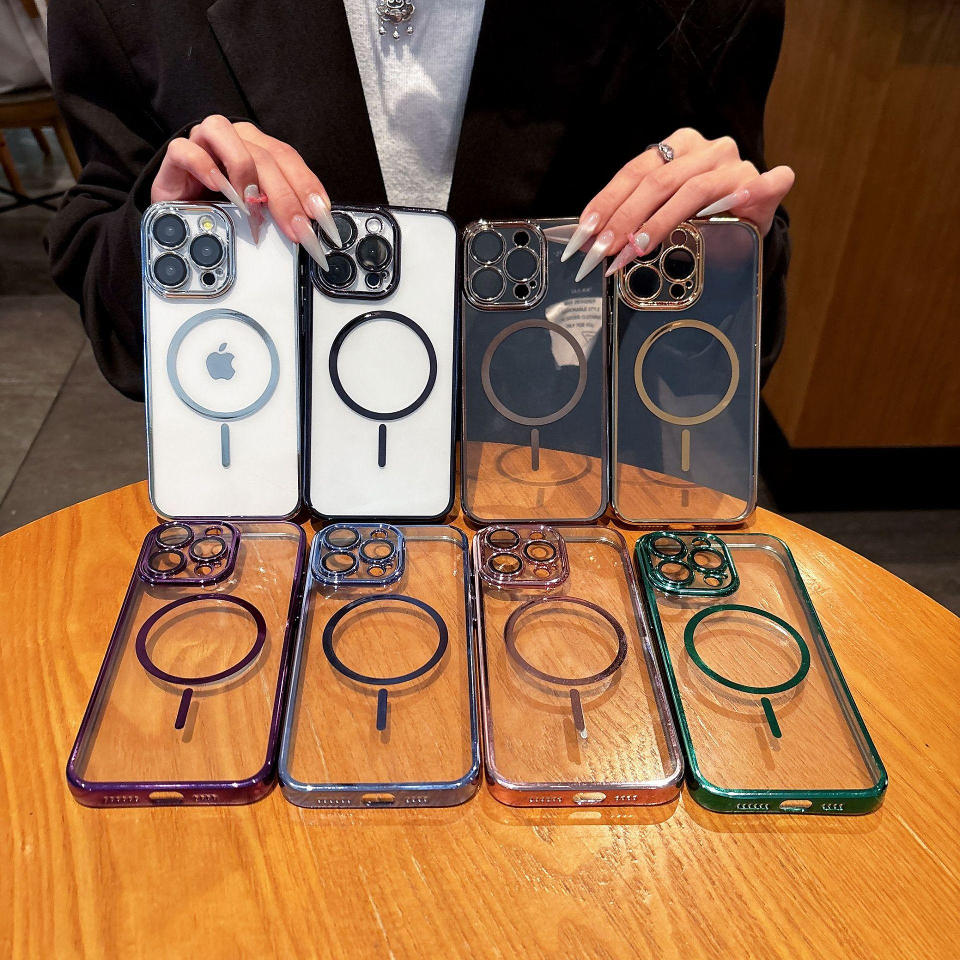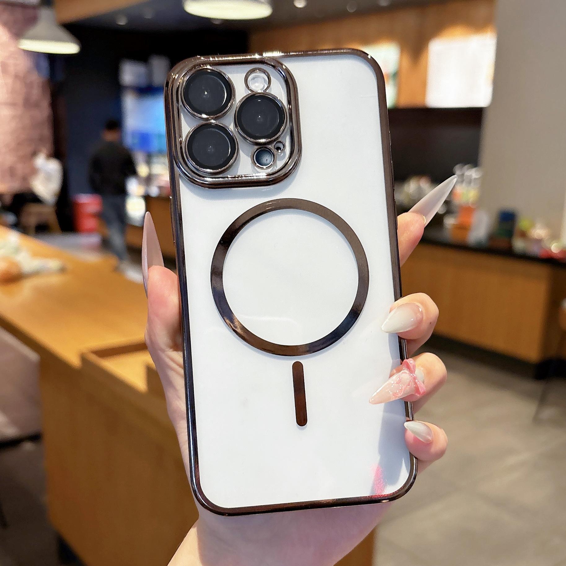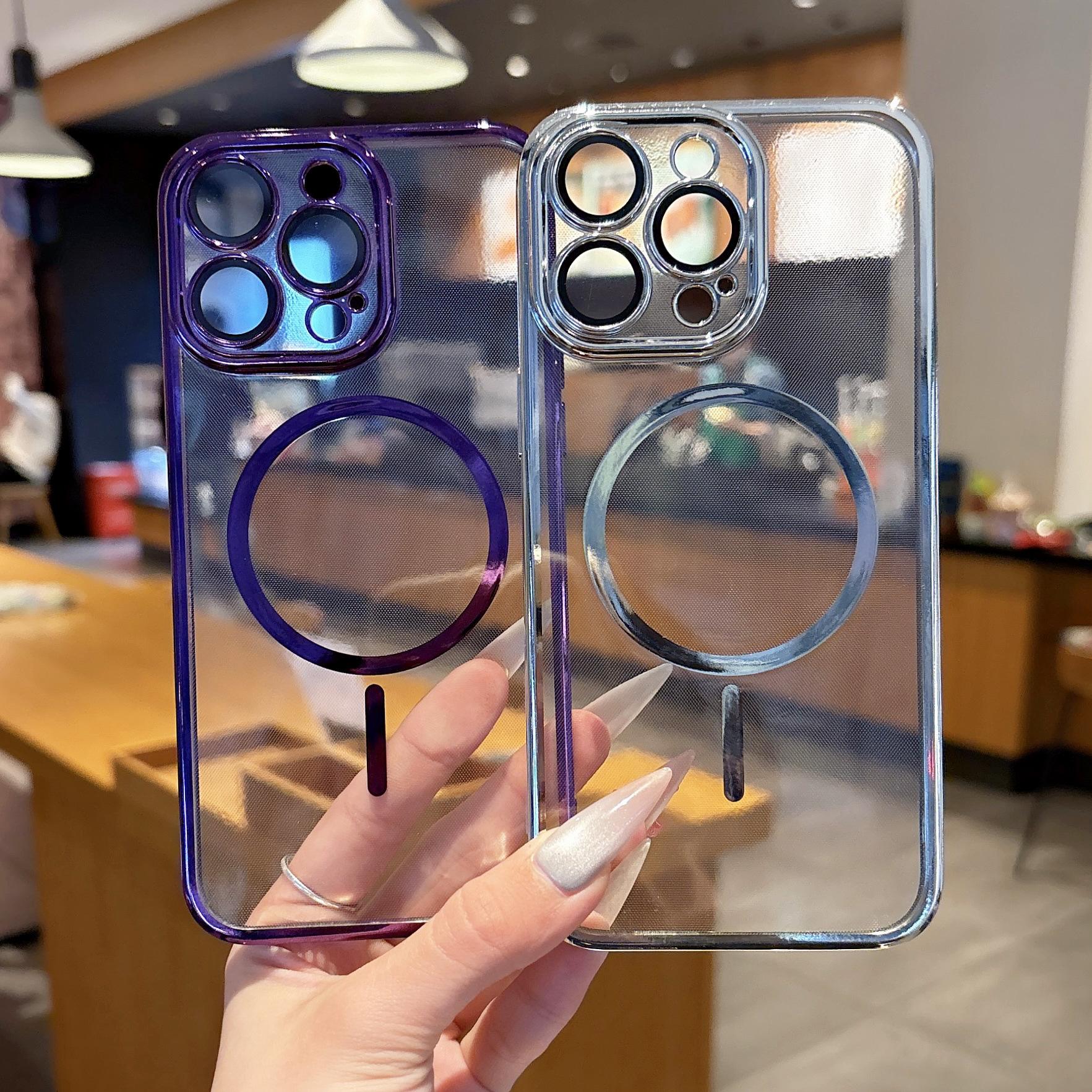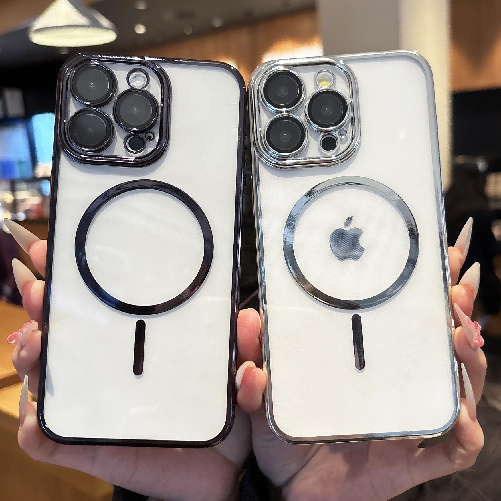 【Nombre del producto】:Carcasa transparente fina electrochapada con succión magnética