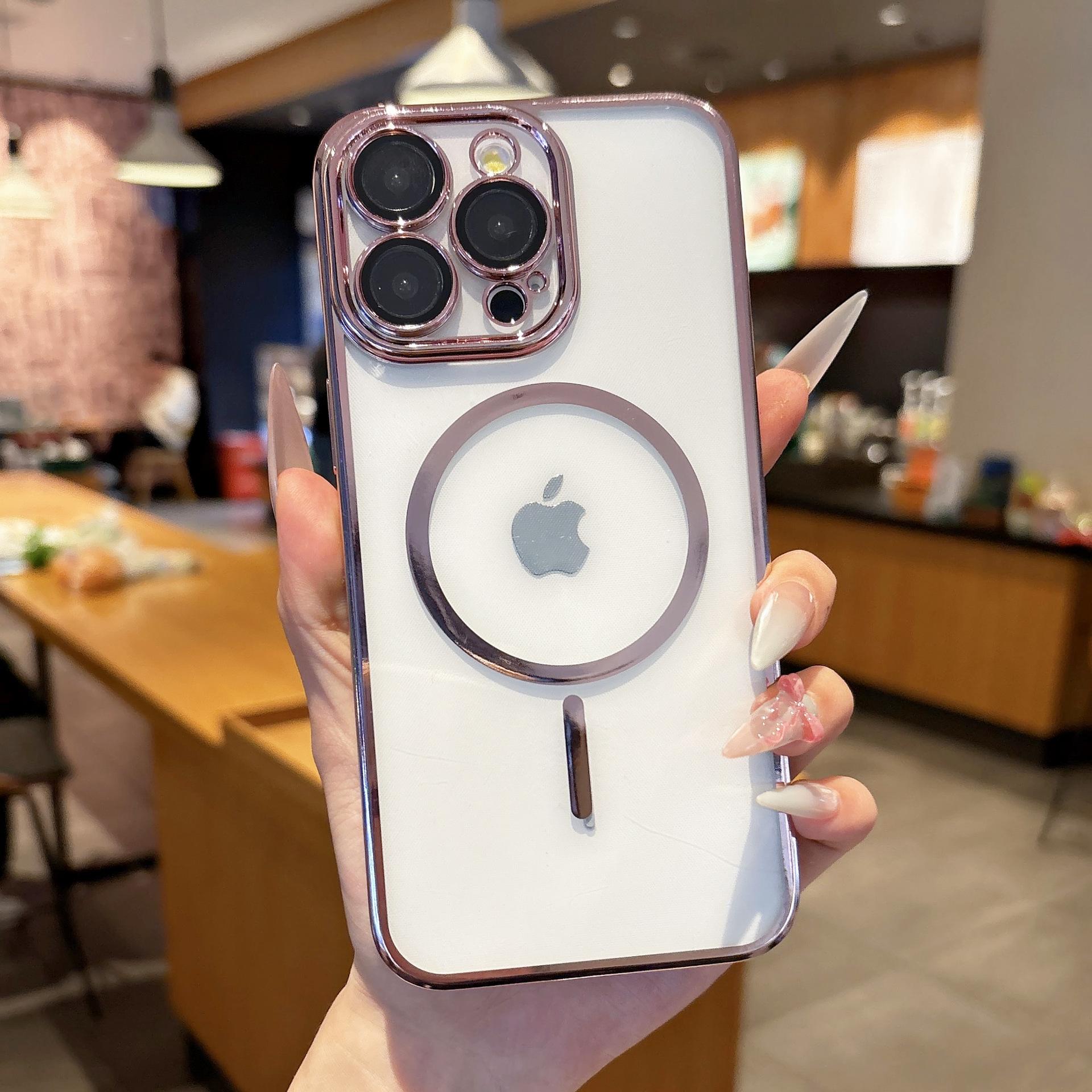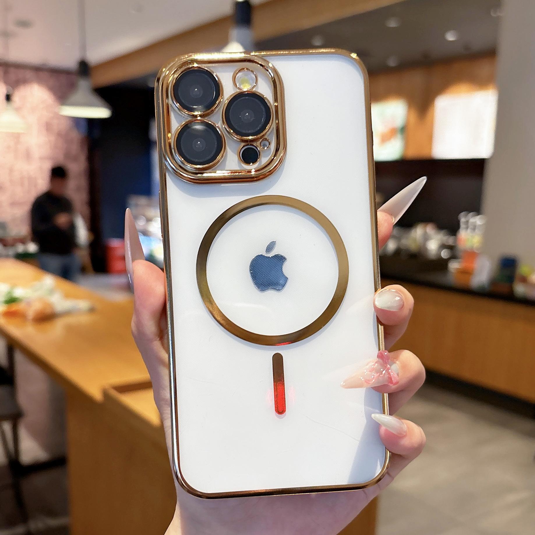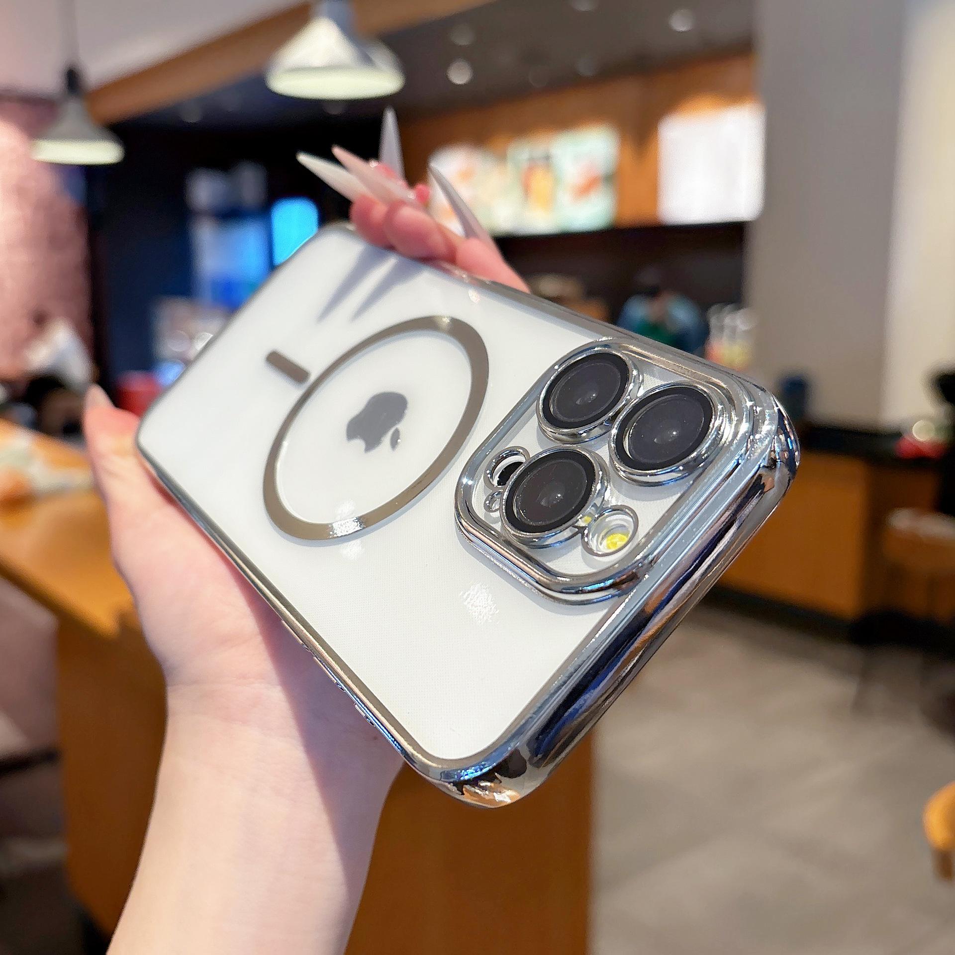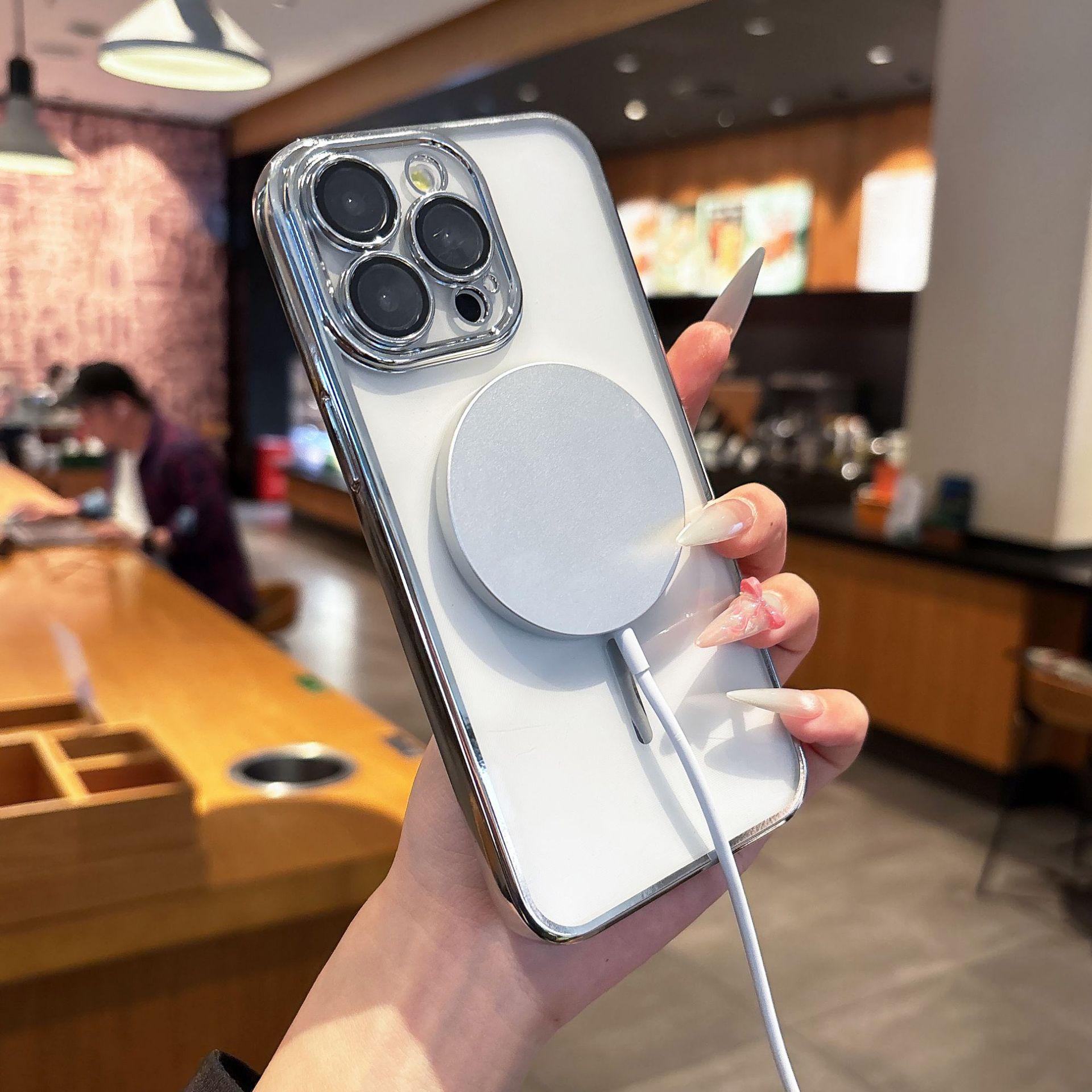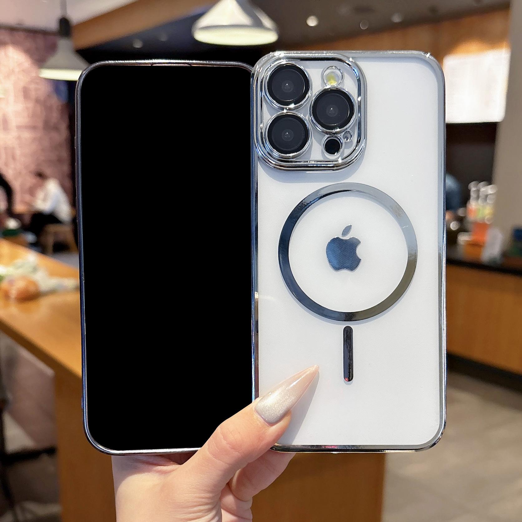 【Nombre del producto】:Carcasa transparente fina electrochapada con succión magnética