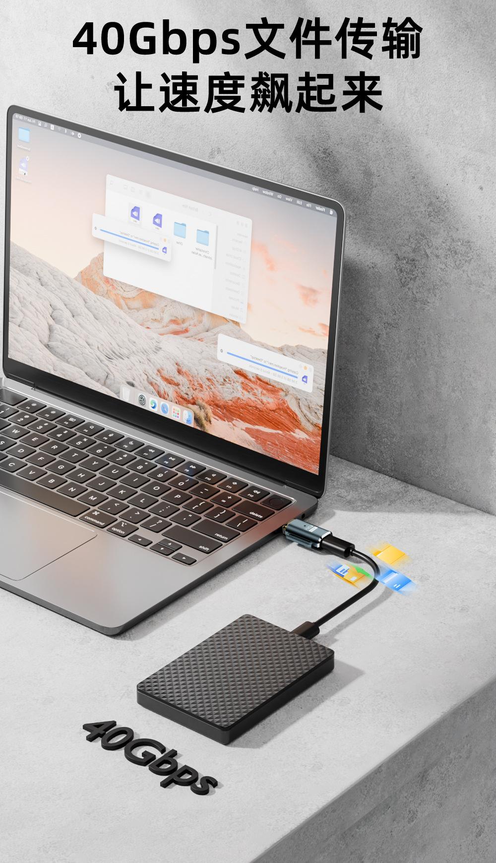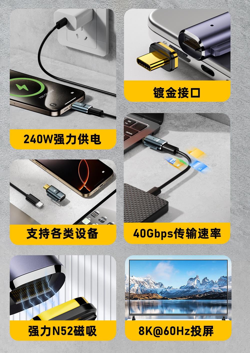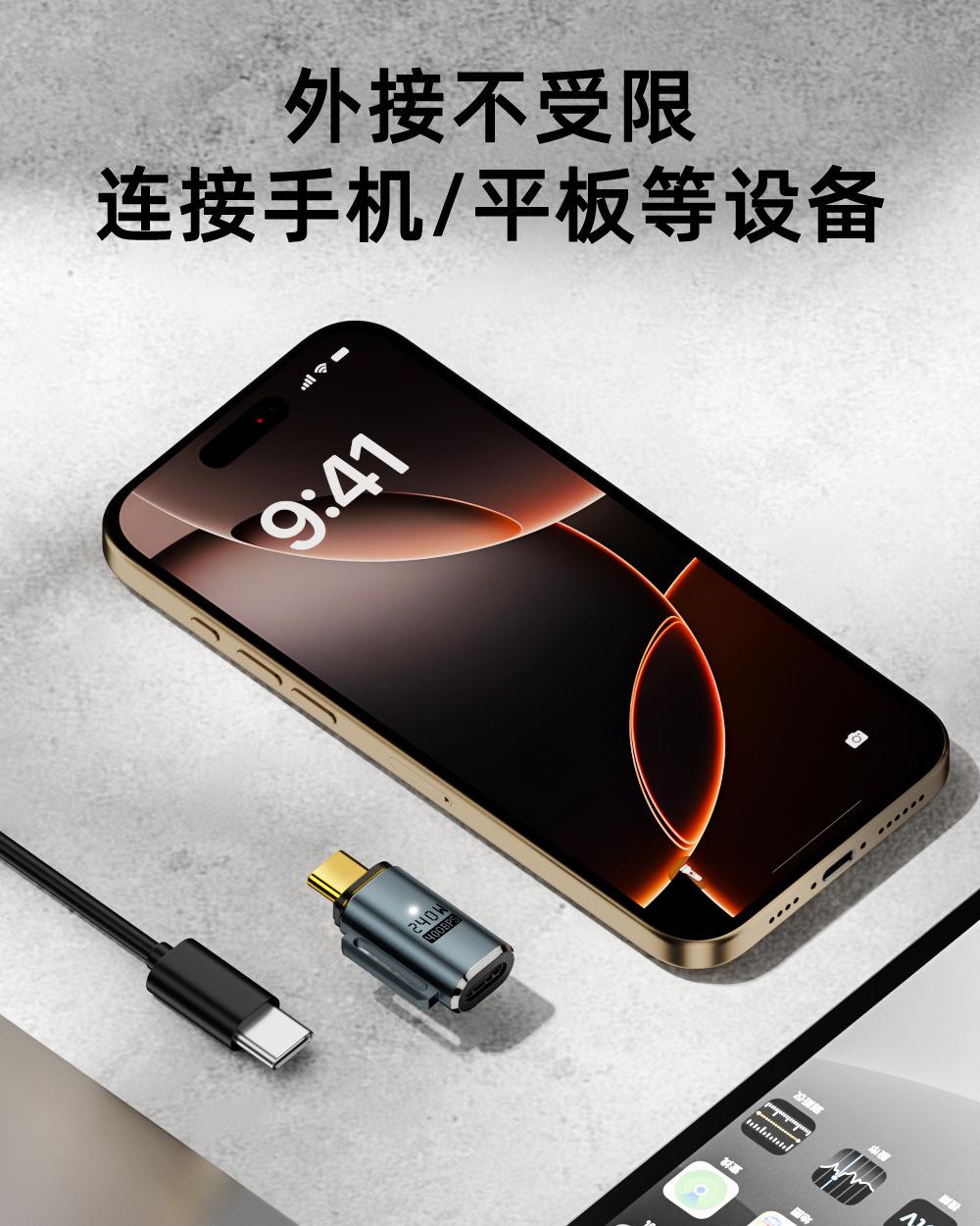 Adaptador magnético TYPE-C hembra a TYPE-C macho 240W aleación de aluminio 40GB adecuado para computadoras MacBook