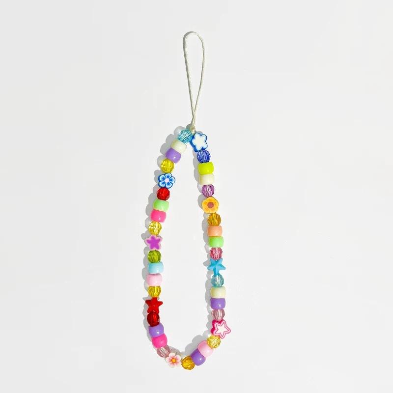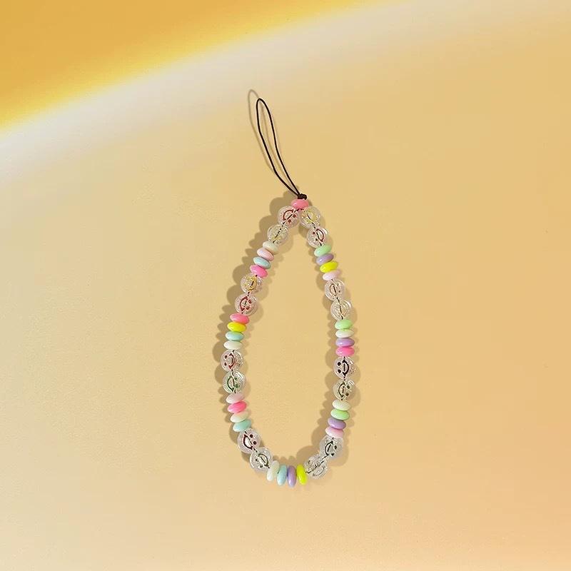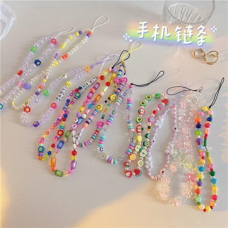 Cadena colgante de cuentas de colores frescos y pequeños, cadena de mano, funda universal para teléfono móvil, llavero con colgante, cordón antipérdida para teléfono móvil.