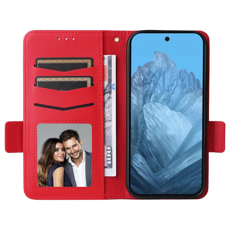 【Características】Cuero de lichi de alta calidad, resistente al desgaste, resistente a las caídas, billetera portátil con ranura para tarjetas