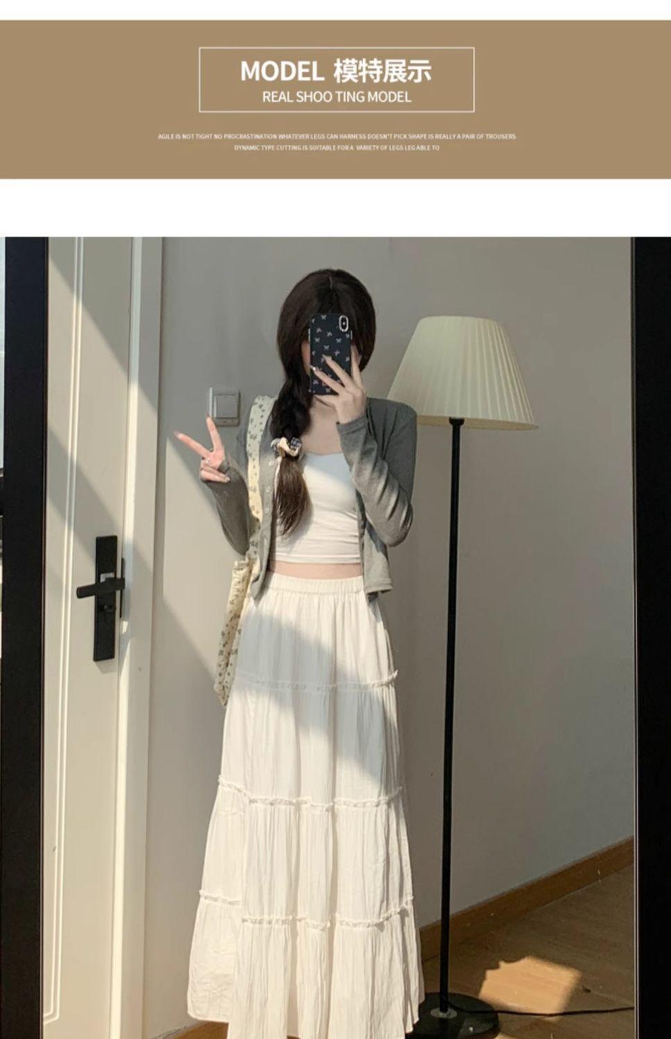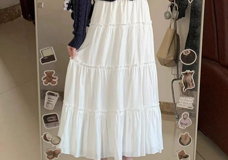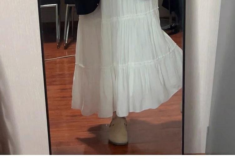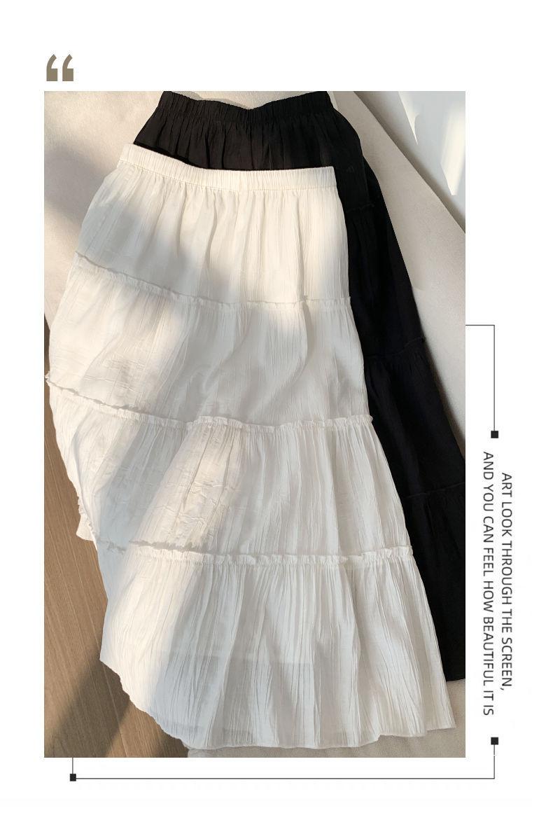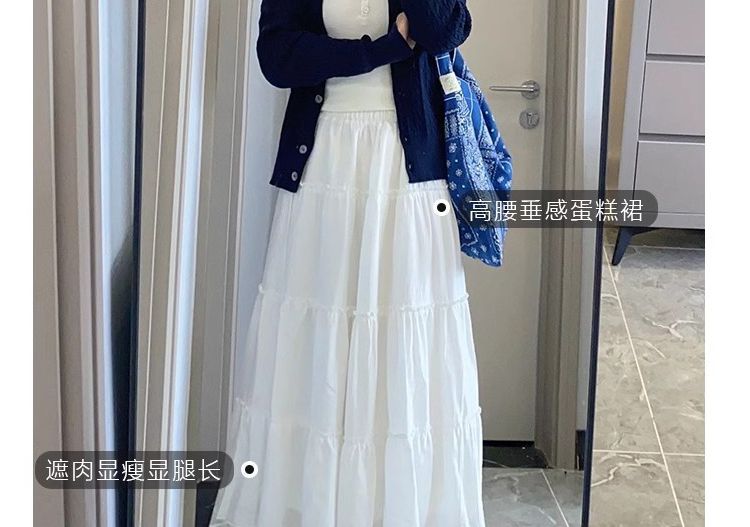 Falda Blanca para Mujer Primavera y Otoño 2025 Nueva Falda Línea A de Cintura Alta Falda Paraguas Falda Larga Verano Falda Pastelito