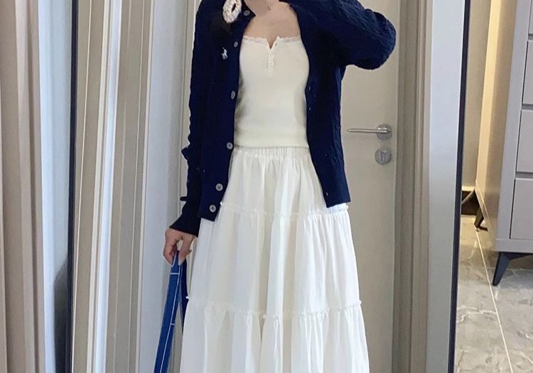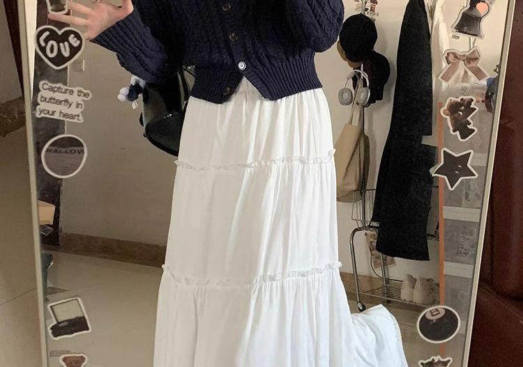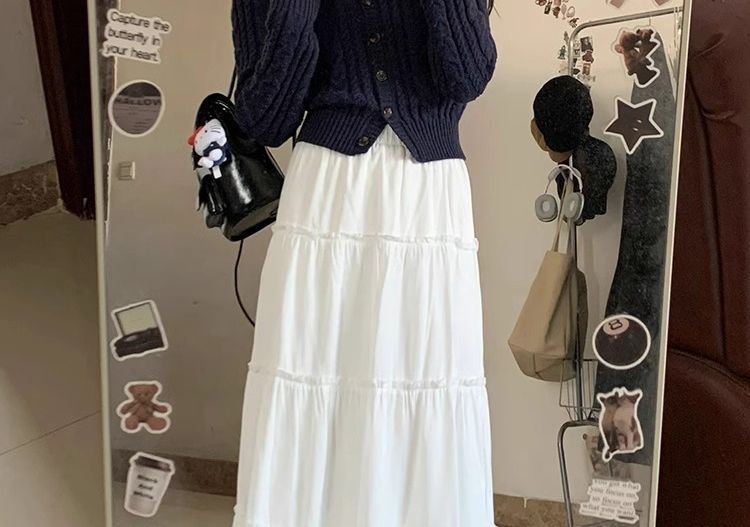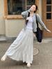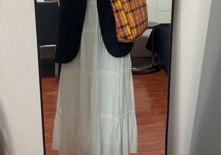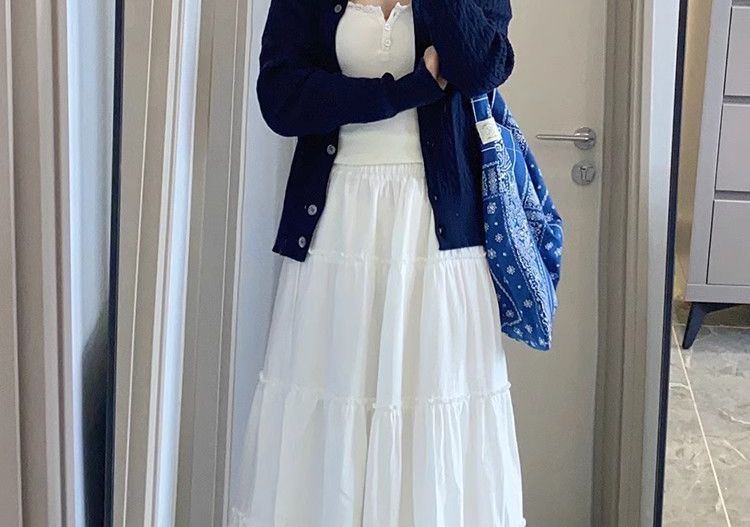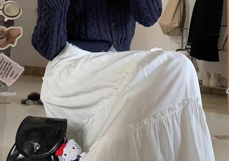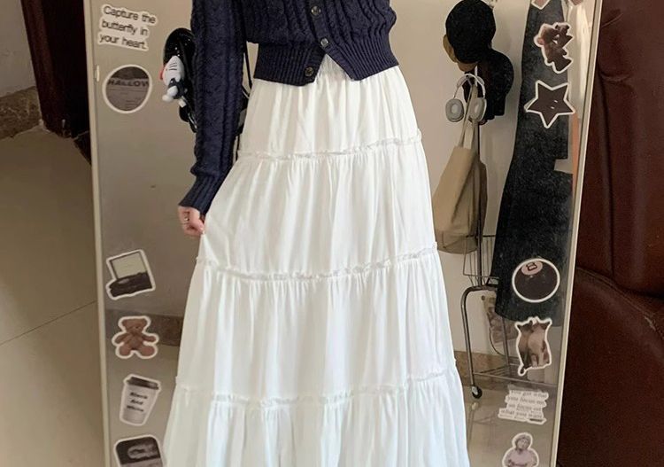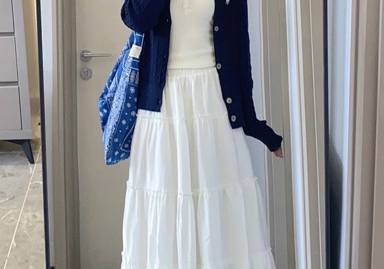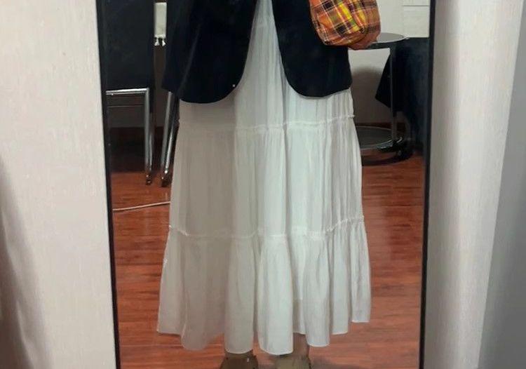 Falda Blanca para Mujer Primavera y Otoño 2025 Nueva Falda Línea A de Cintura Alta Falda Paraguas Falda Larga Verano Falda Pastelito