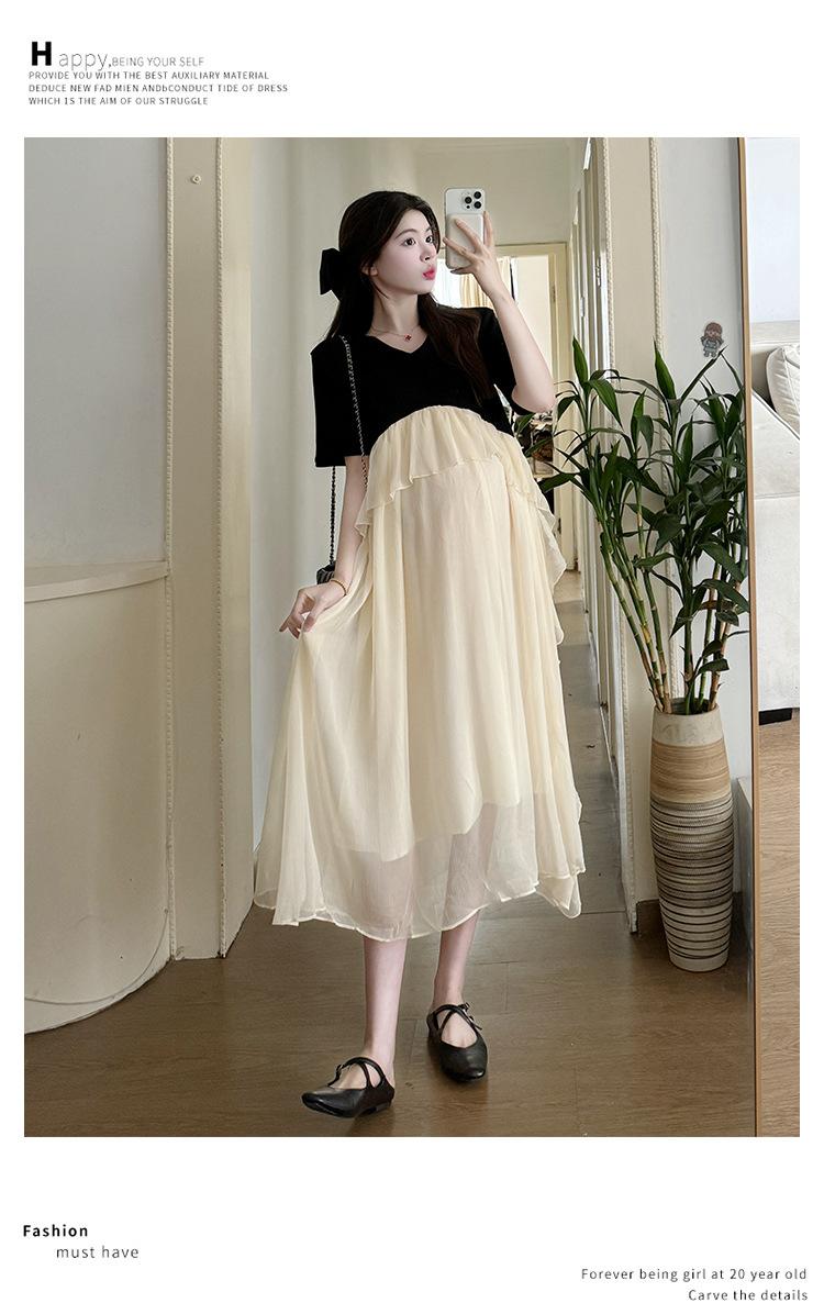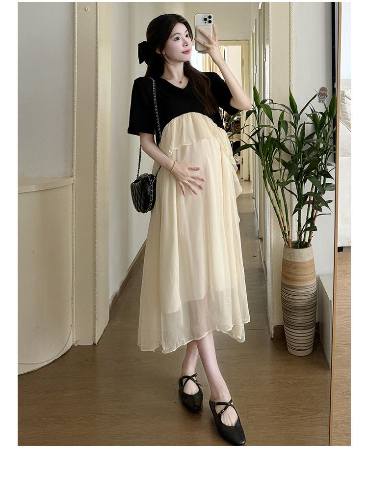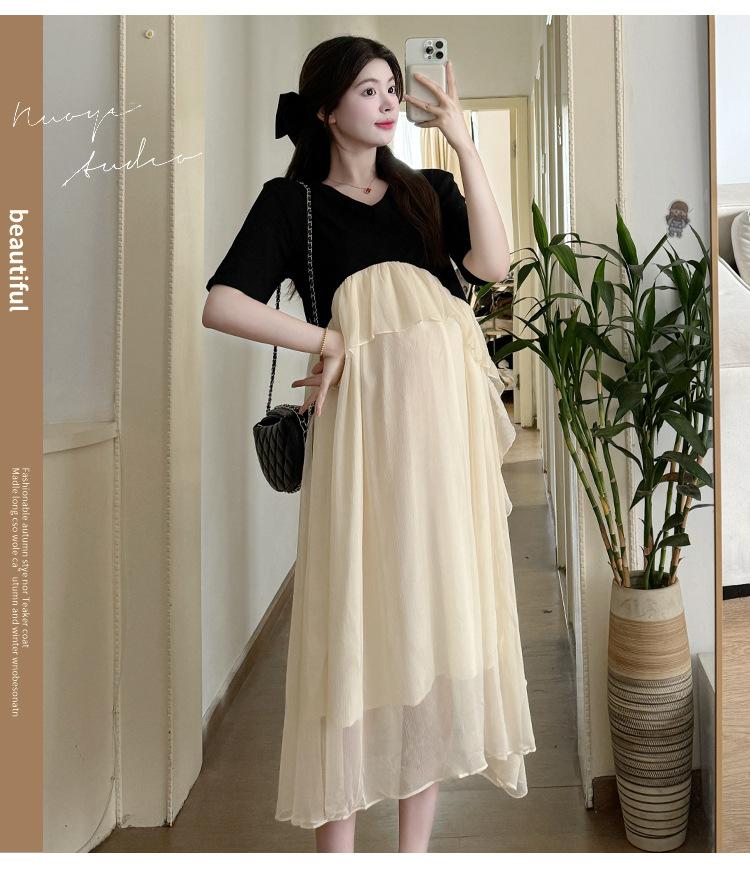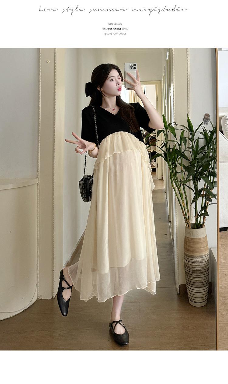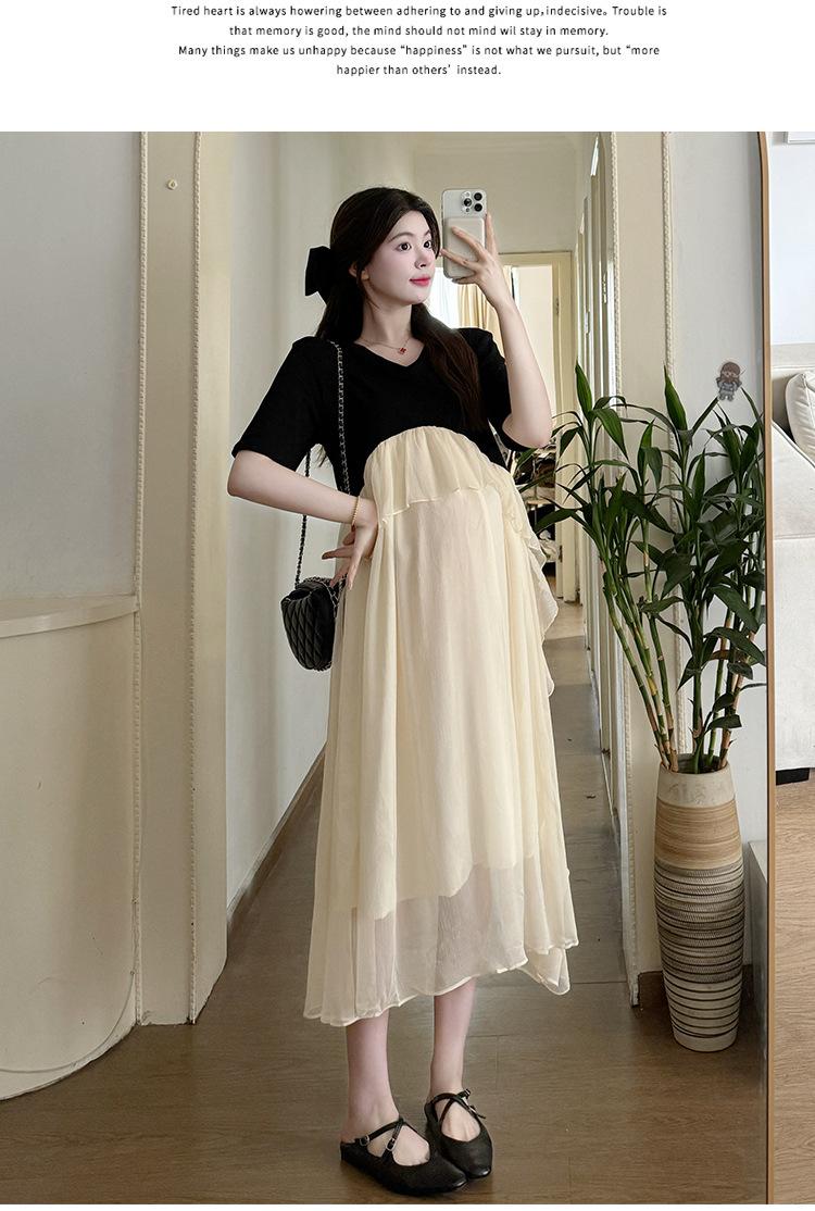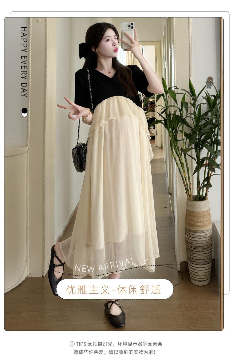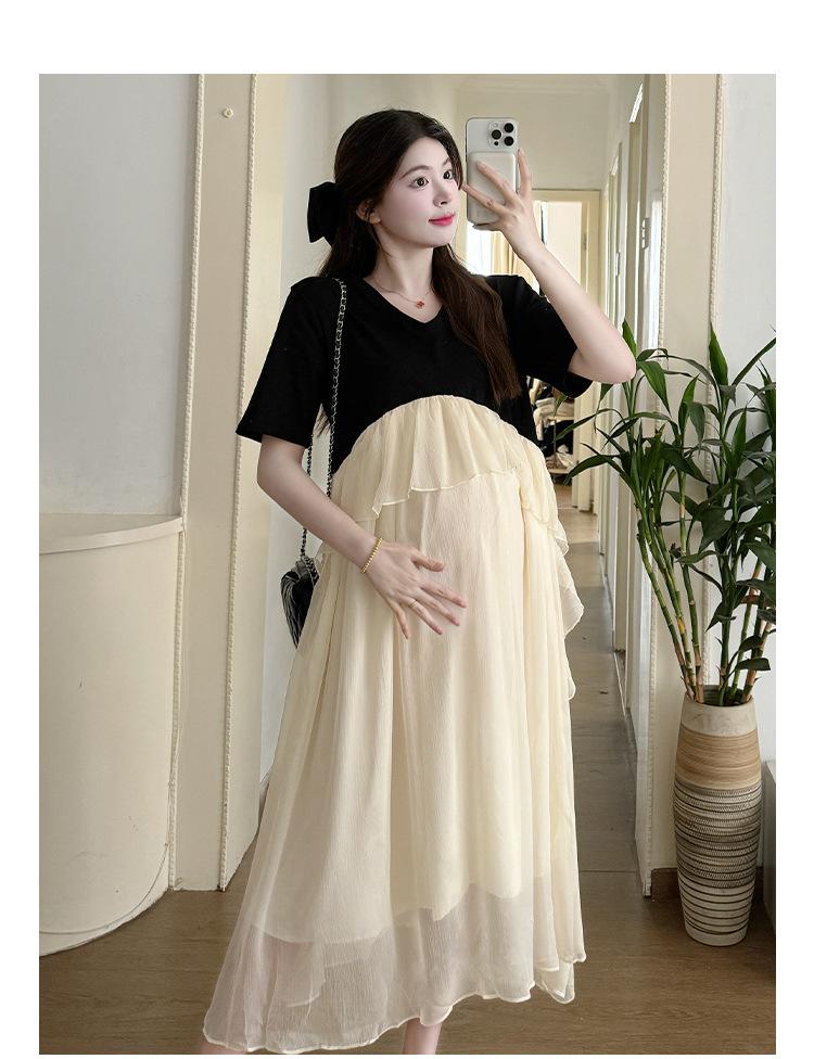 Vestido largo de verano 2024 para embarazadas, con escote en V y costuras, ideal para embarazadas.