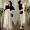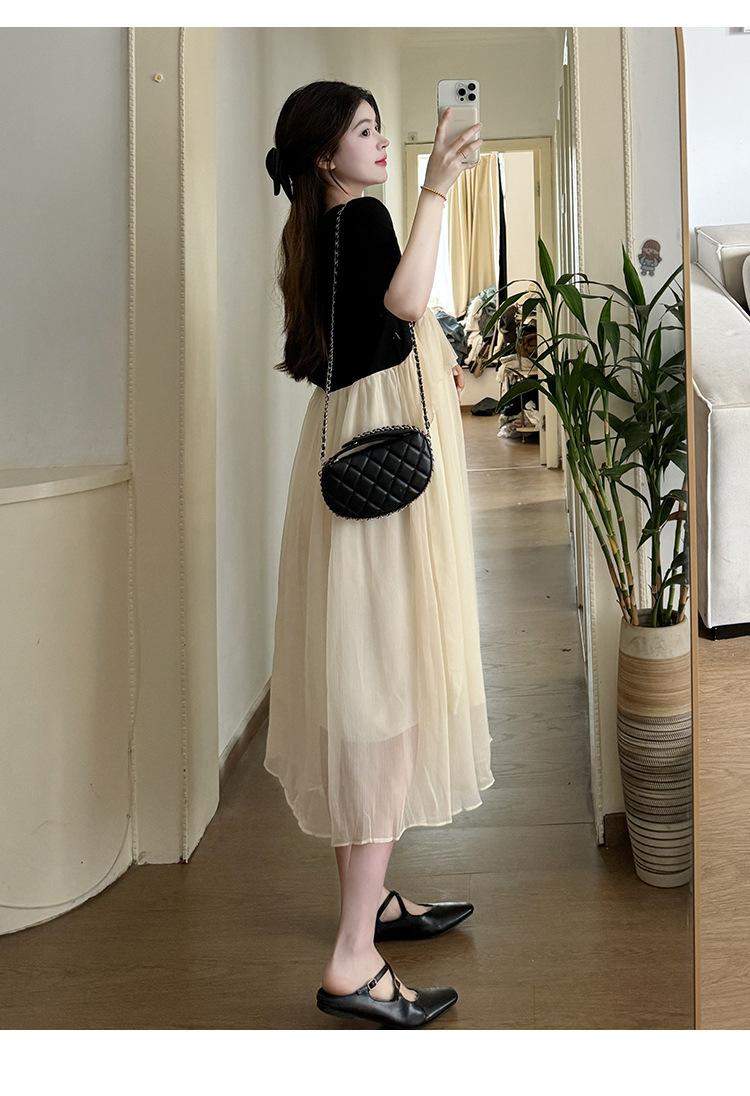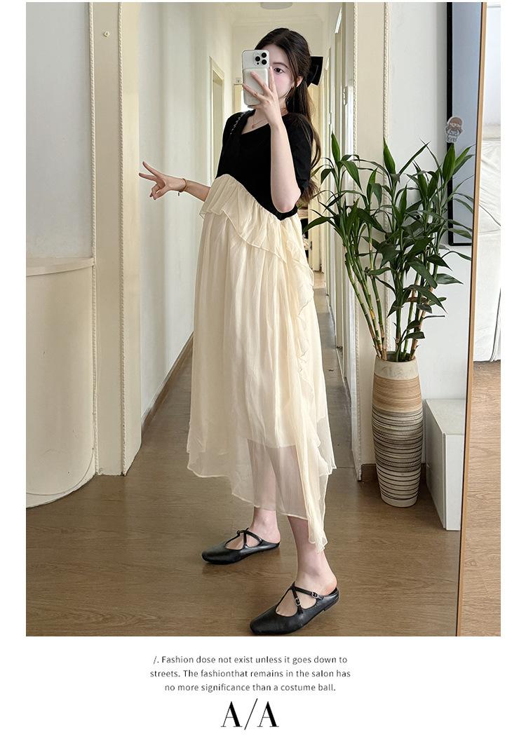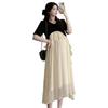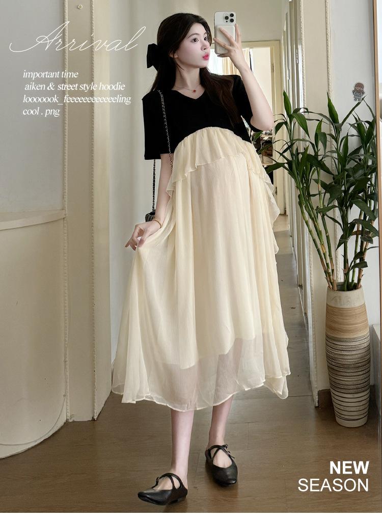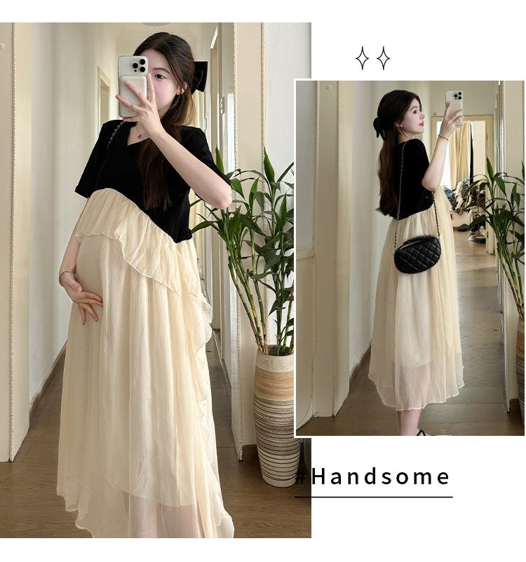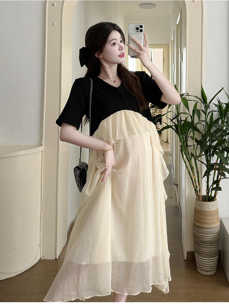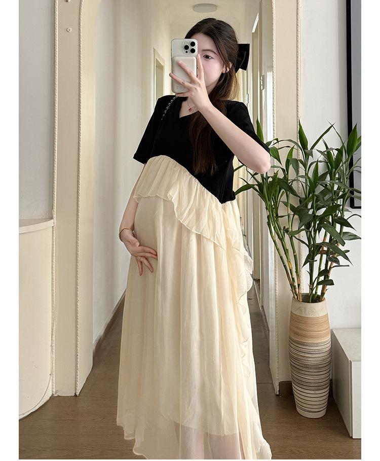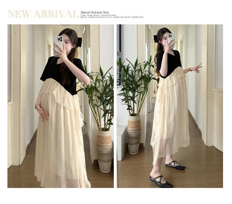 Vestido largo de verano 2024 para embarazadas, con escote en V y costuras, ideal para embarazadas.