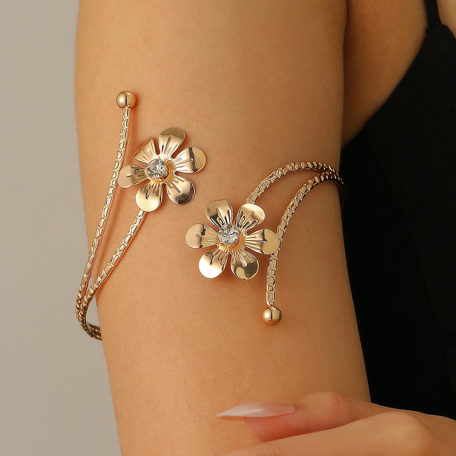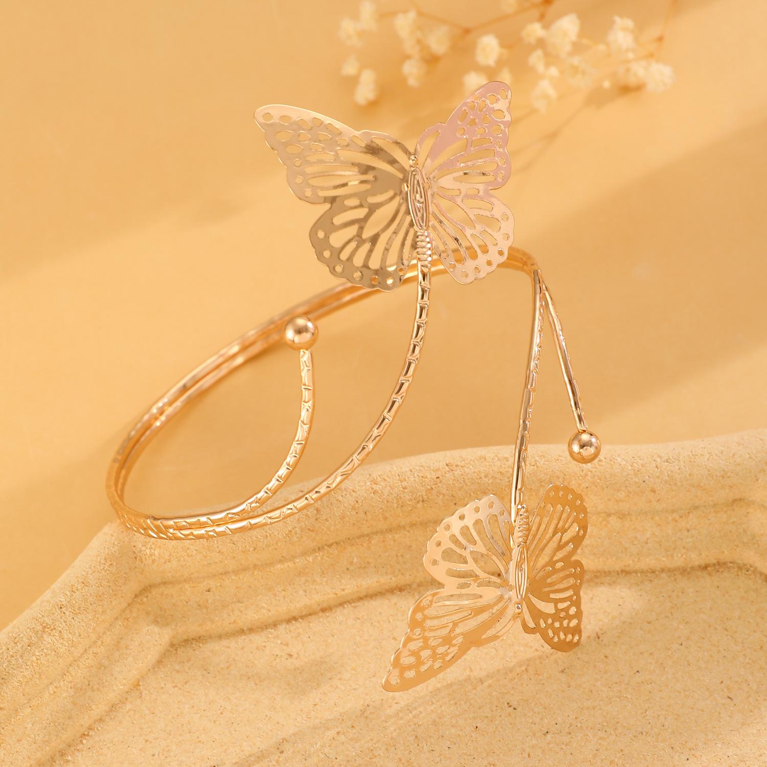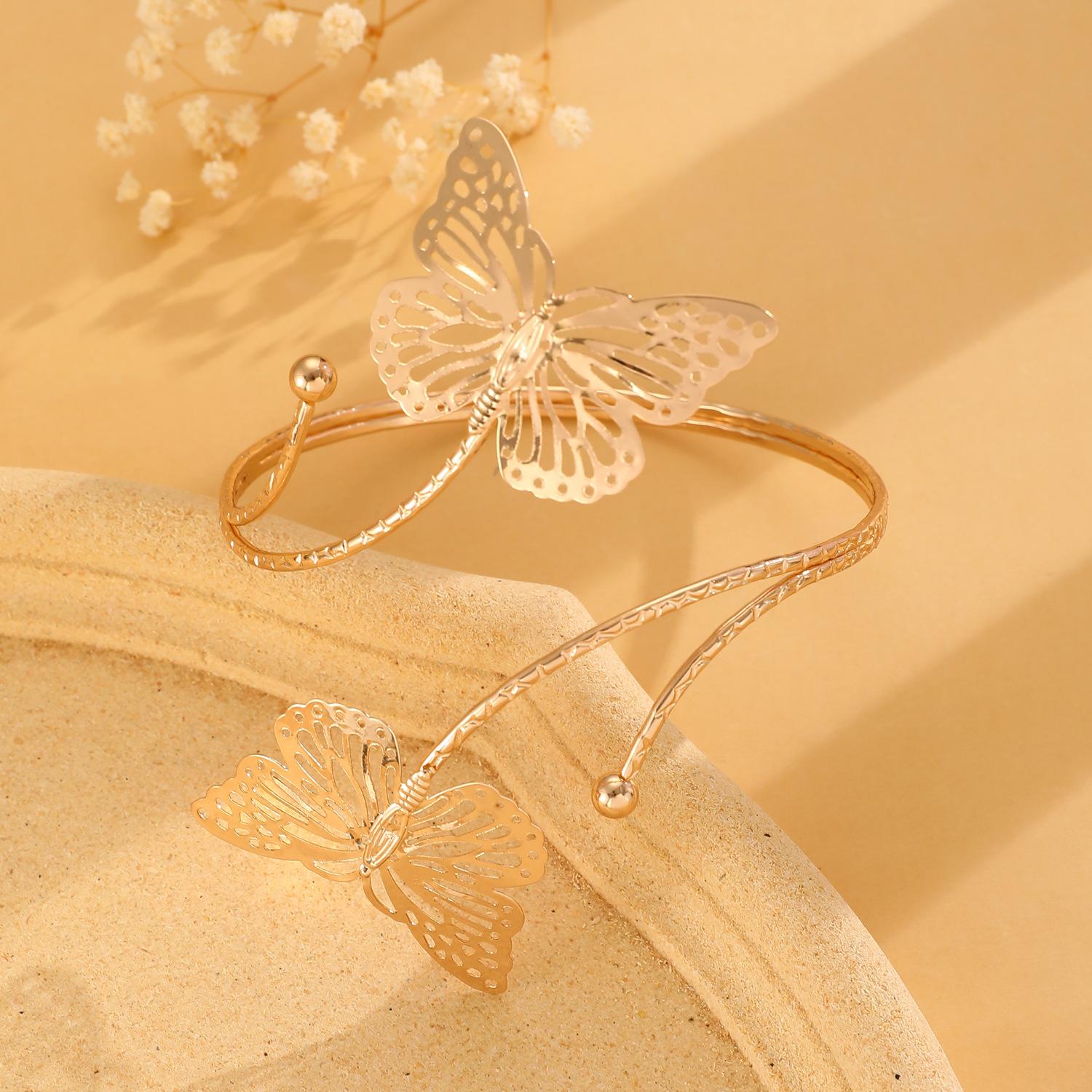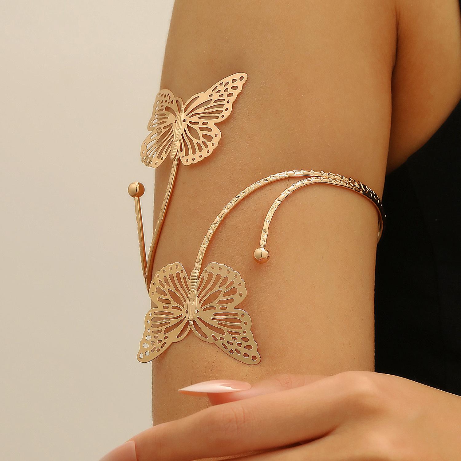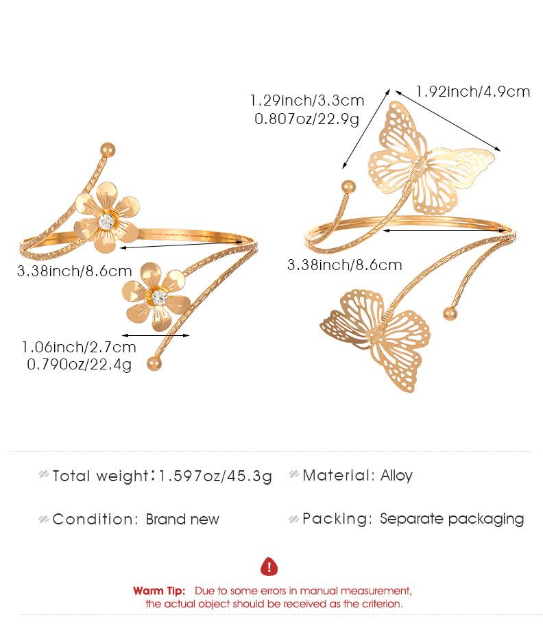 Pulsera de Mariposa Nueva de Moda Transfronteriza Europea y Americana Exagerada Hueca de Metal Flor Anillo de Brazo con Diamante Pulsera Abierta Anillo de Brazo