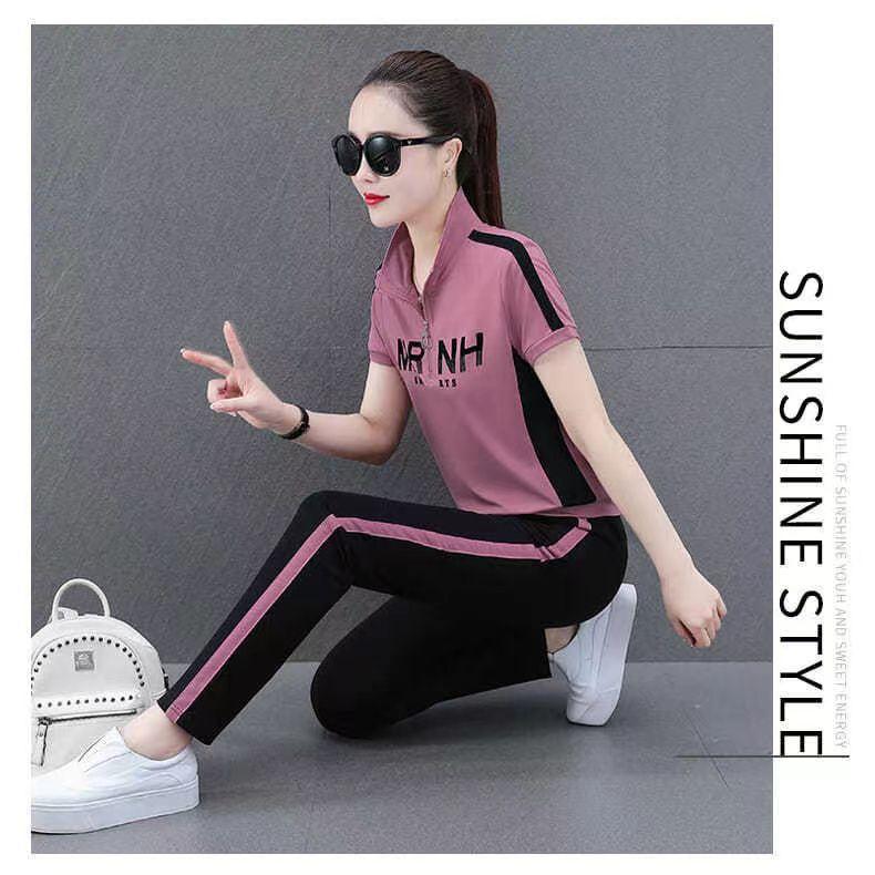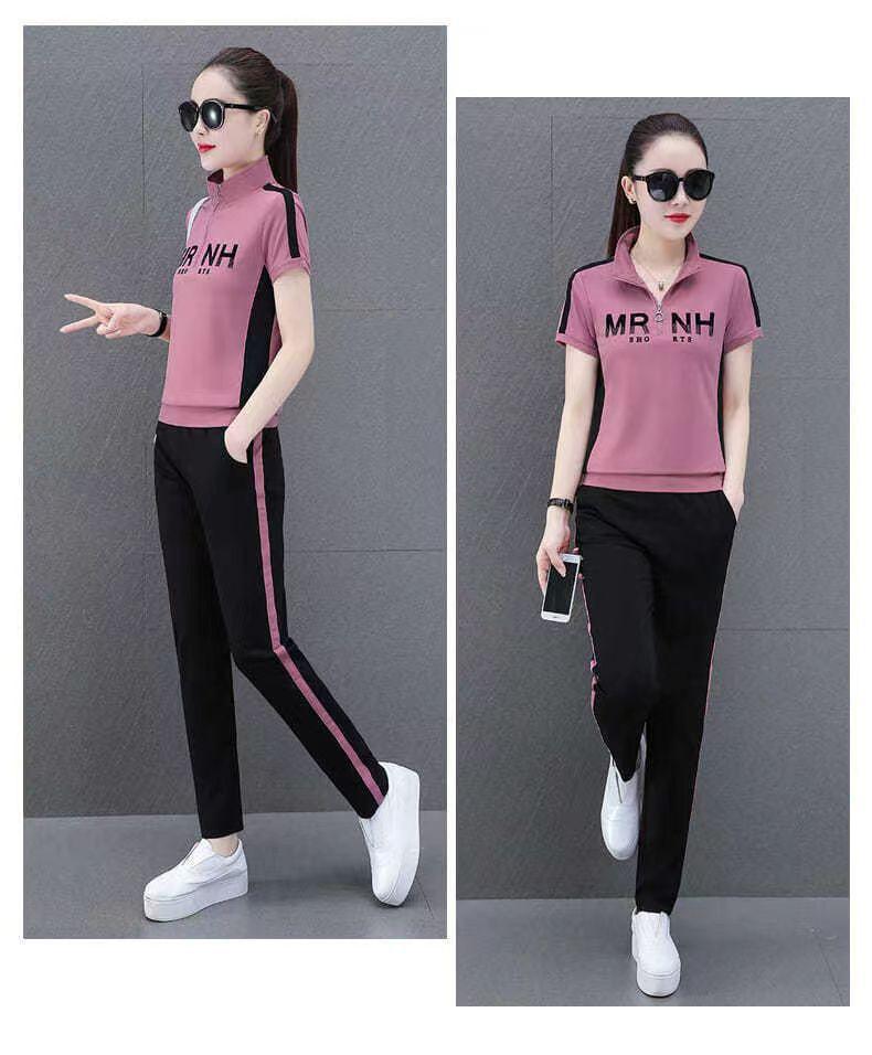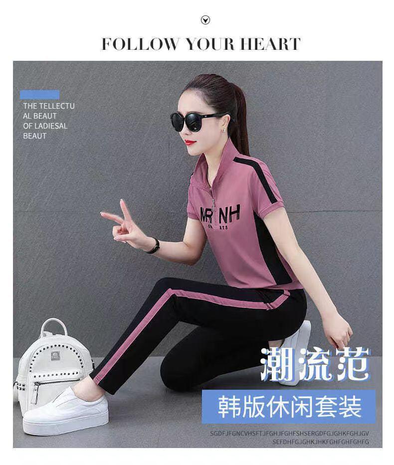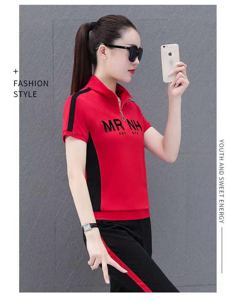 Traje deportivo informal de verano 2025 para mujer, estilo coreano, de manga corta, holgado, adelgazante, antiedad, conjunto de dos piezas para comercio exterior