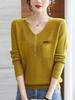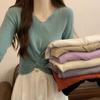 Suéter de cuello en V para mujer para gente pequeña, otoño e invierno, cintura alta, corto, popular, elegante, parte inferior, manga larga