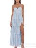 2025 Nuevo Vacacional Transfronterizo Europeo y Americano Deseo Puro Sexy Floral Abertura Cuello en V Sin Espalda Vestido de Tirantes Falda Larga para Mujer