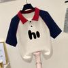 Polo de Verano para Niños de Algodón Puro Solapa de Color Contrastante Camiseta de Manga Corta 9-15 Tops de Manga Raglán de Moda para Niños Medianos y Grandes