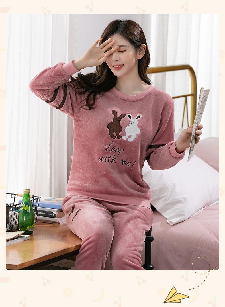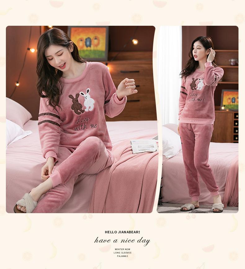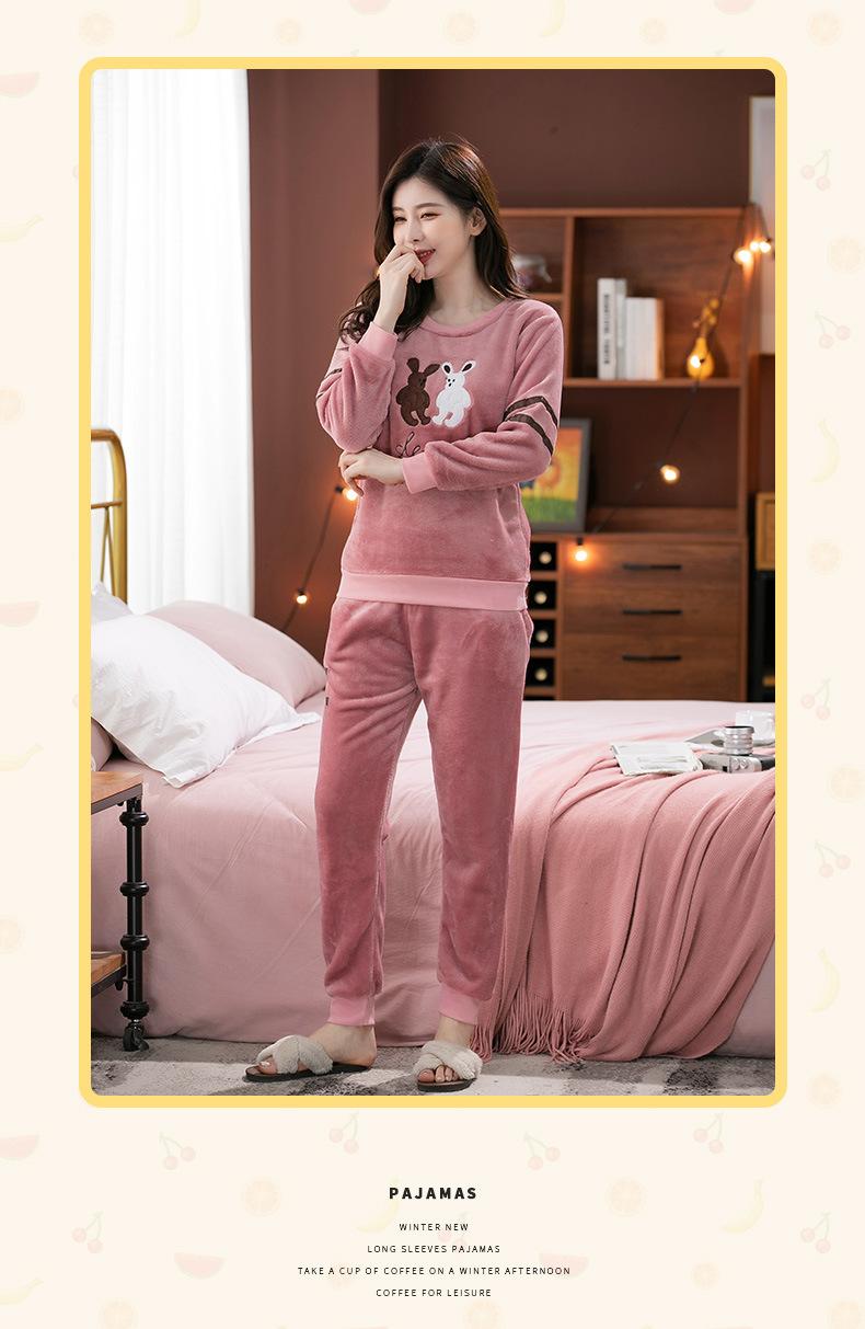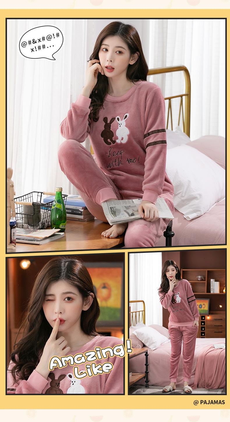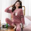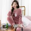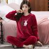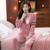 Pijamas de Franela para Mujer Invierno 2024 Nuevo con forro polar Espesado Vellón Coral Cuello Redondo Dibujos Animados Invierno Ropa de Casa