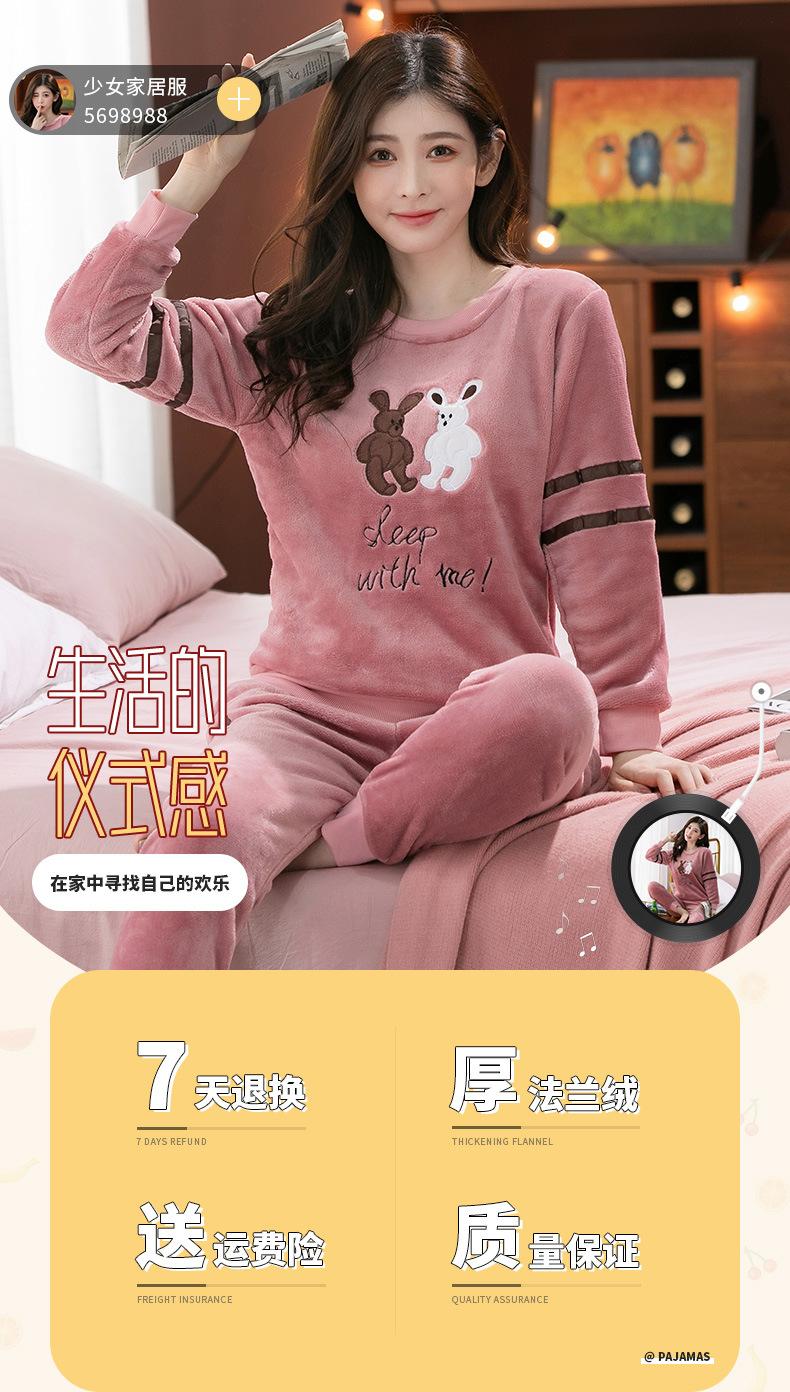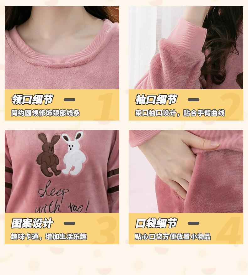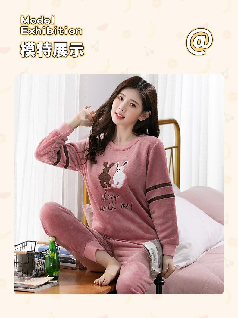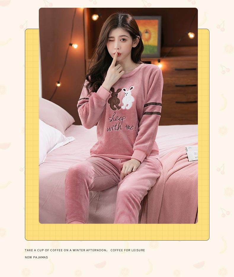 Pijamas de Franela para Mujer Invierno 2024 Nuevo con forro polar Espesado Vellón Coral Cuello Redondo Dibujos Animados Invierno Ropa de Casa