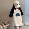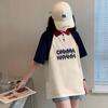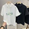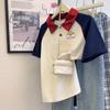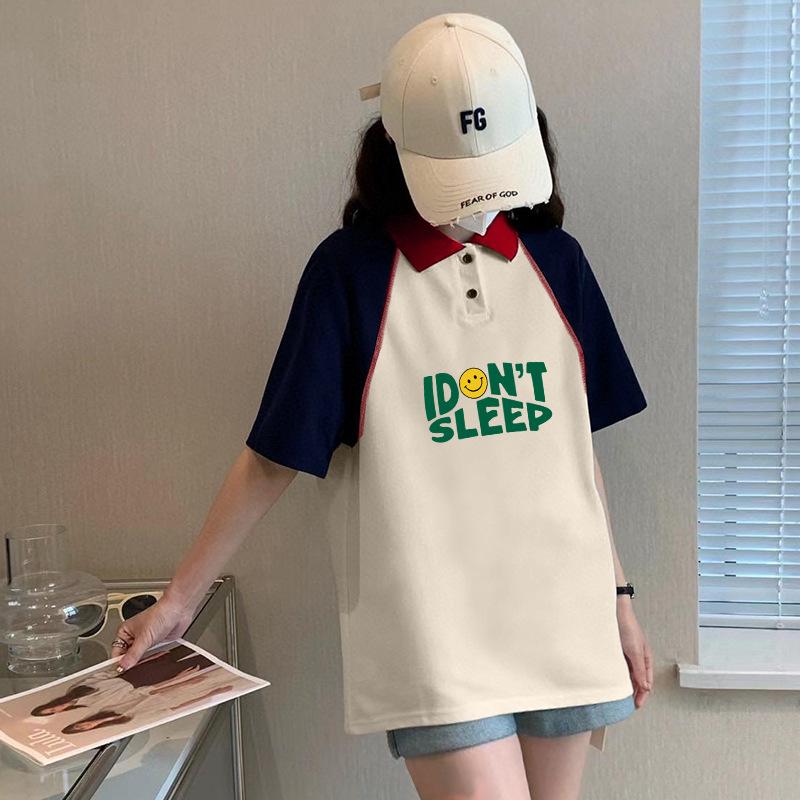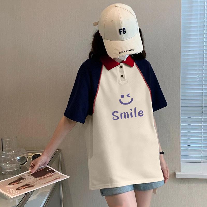 Polo de Verano para Niñas de Algodón Puro Solapa de Color Contrastante Camiseta de Manga Corta 6-15 Años Estudiantes de Mediana Edad y Mayores Top de Manga Raglán