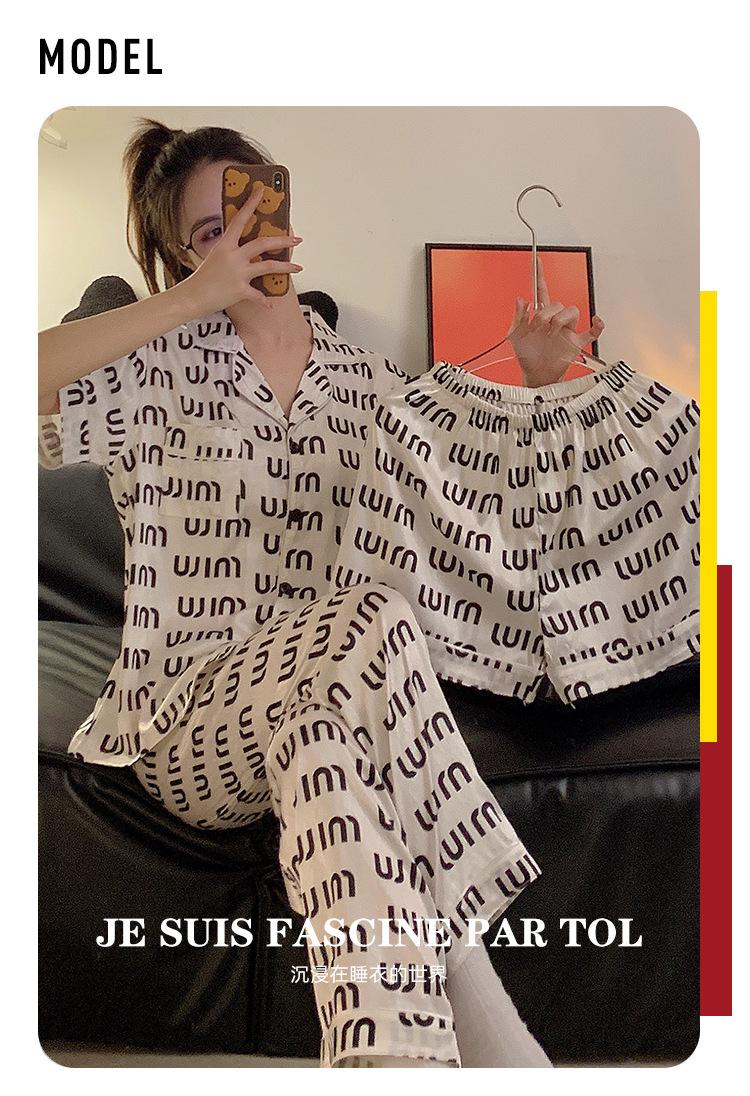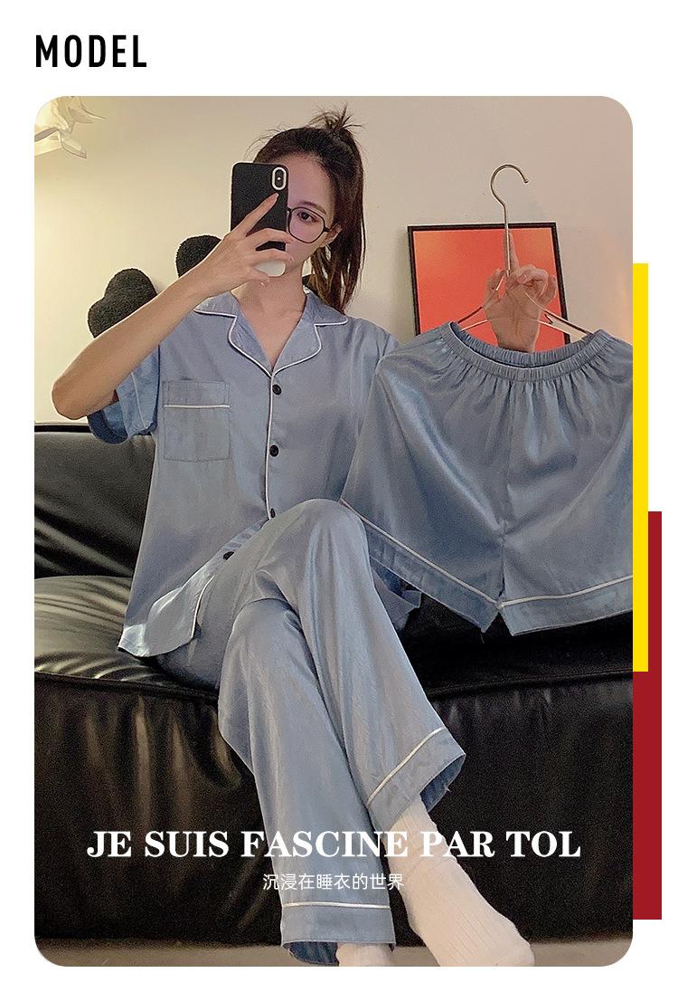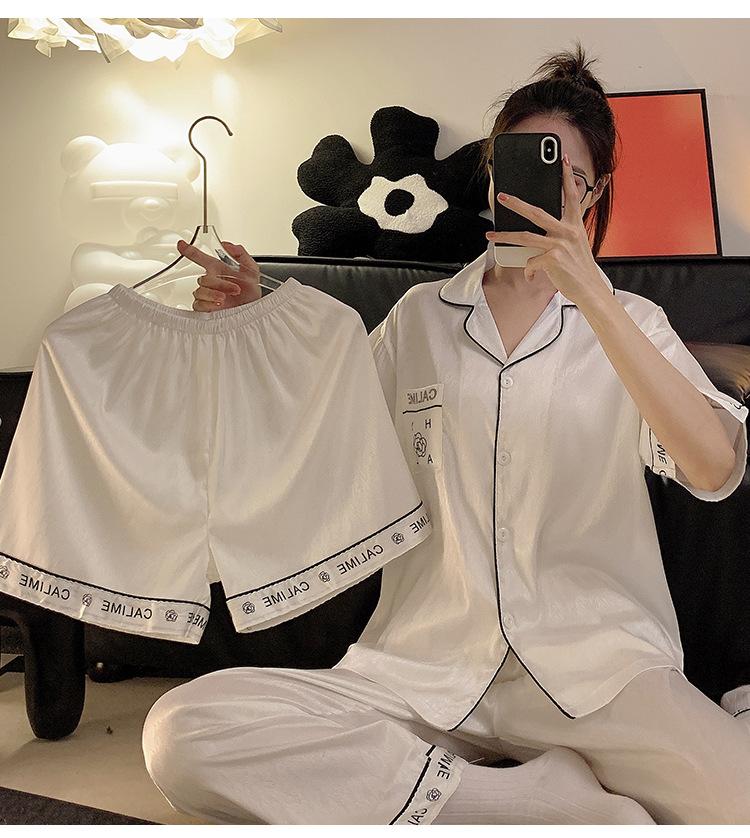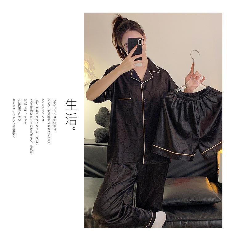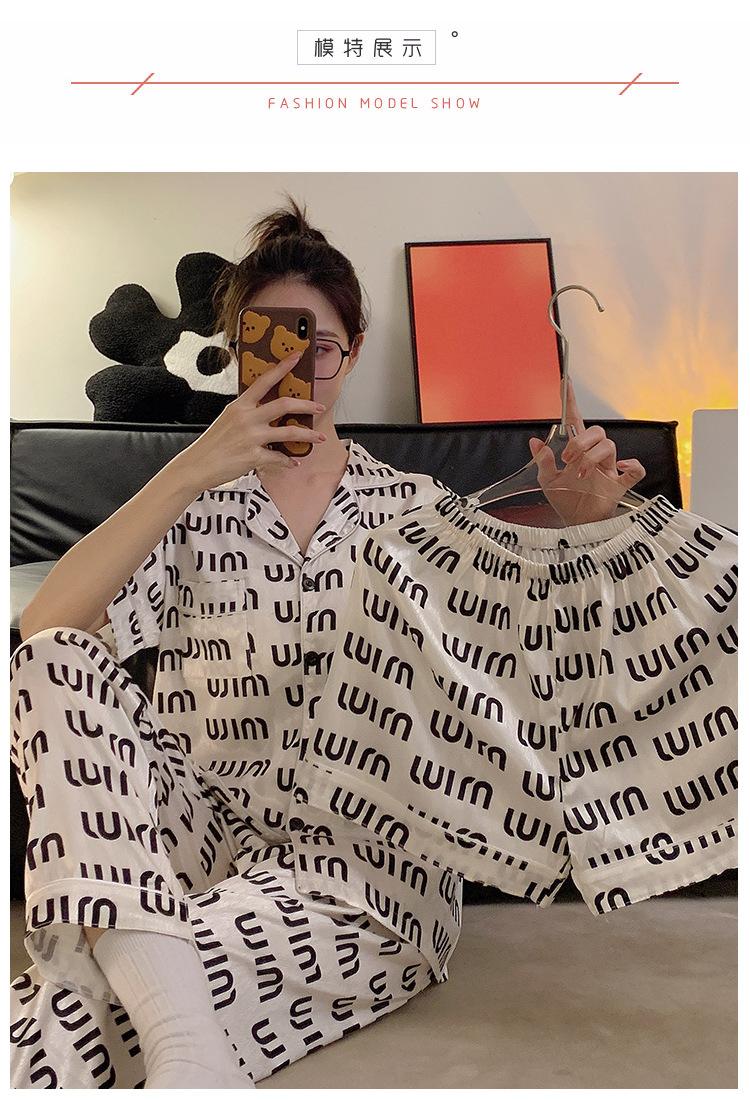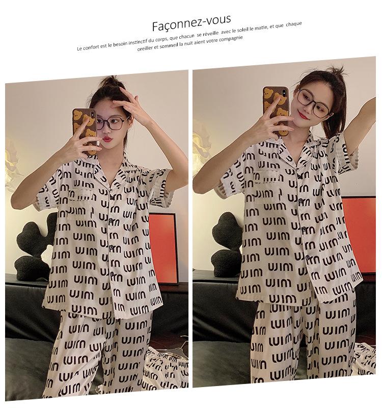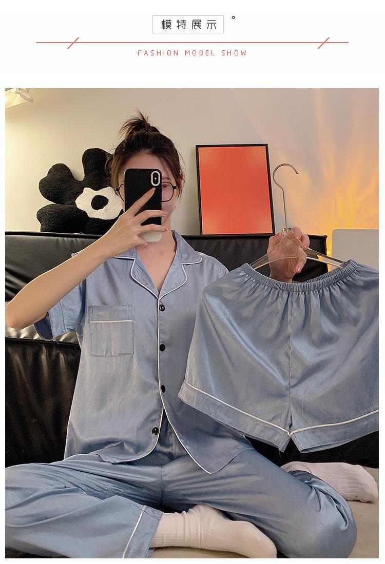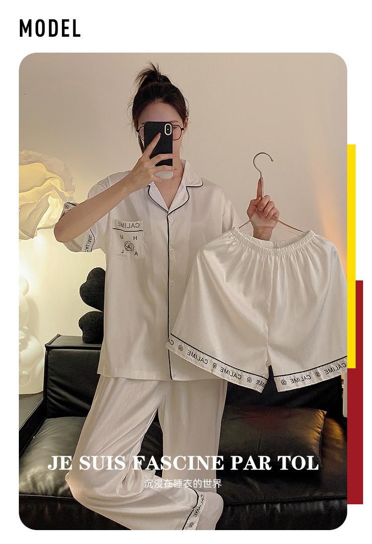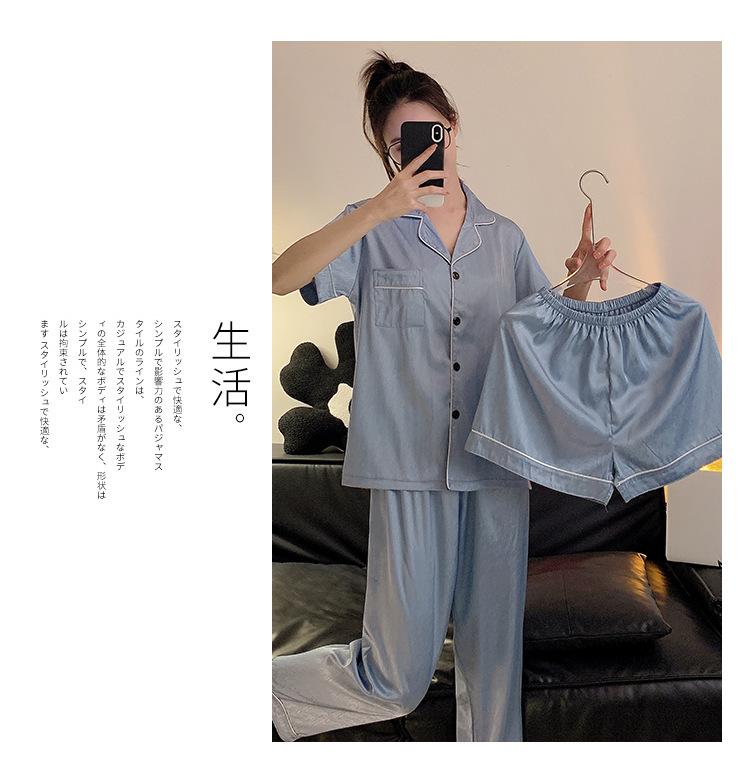 Pijama de tres piezas de seda de hielo y nieve de primavera y verano, pantalones de manga corta de seda de hielo para mujer, 2024, nuevo traje de ropa para el hogar popular en línea