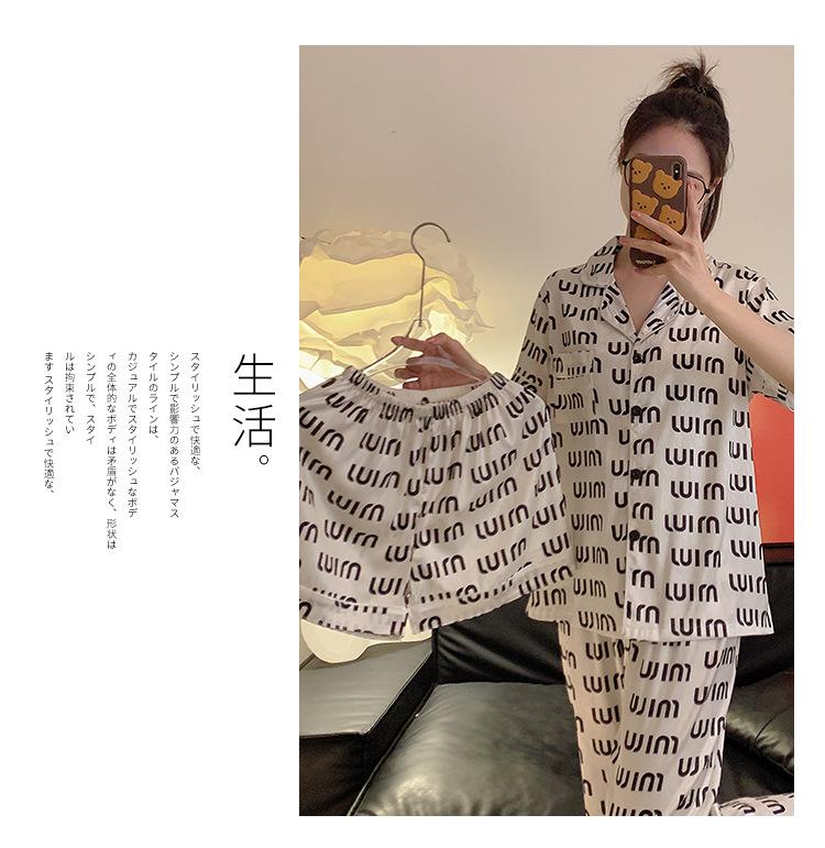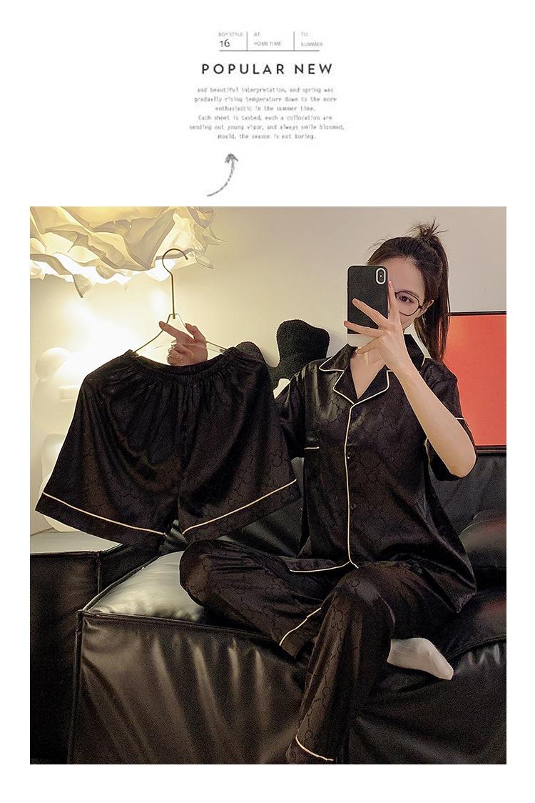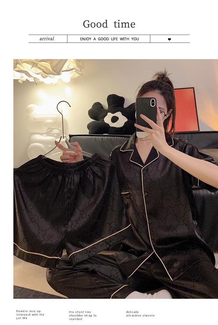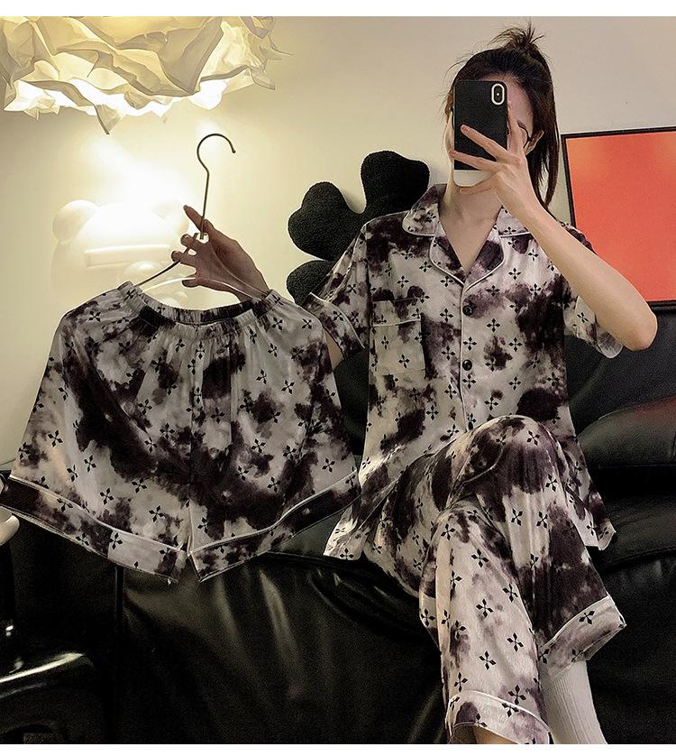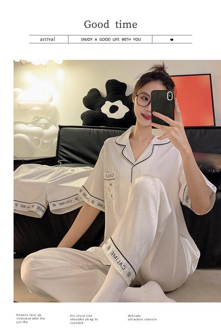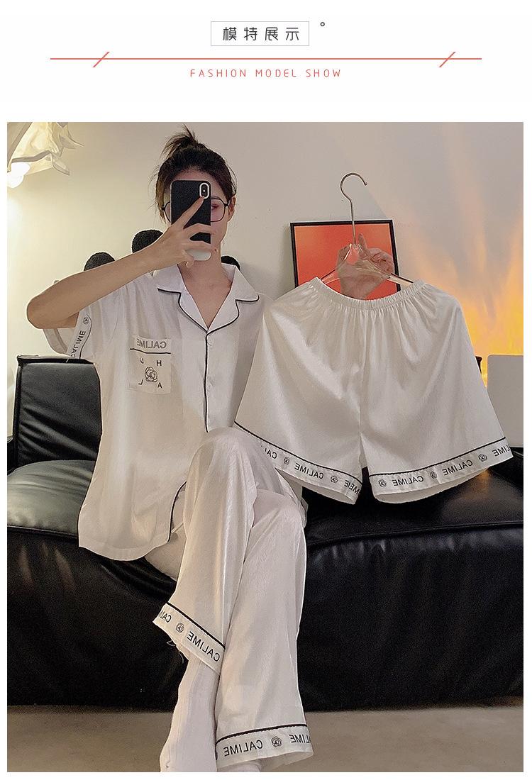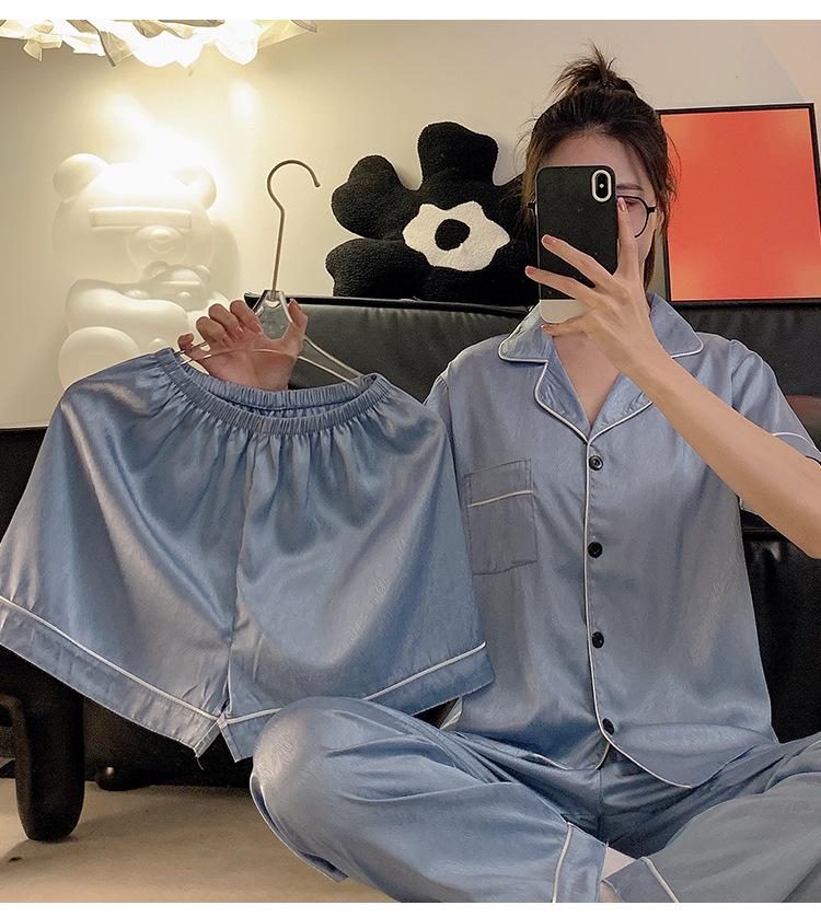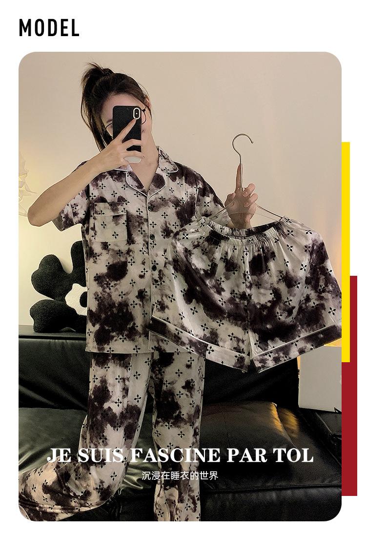 Pijama de tres piezas de seda de hielo y nieve de primavera y verano, pantalones de manga corta de seda de hielo para mujer, 2024, nuevo traje de ropa para el hogar popular en línea