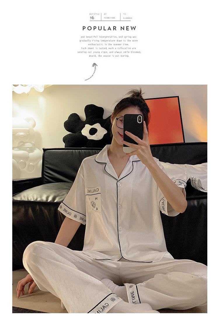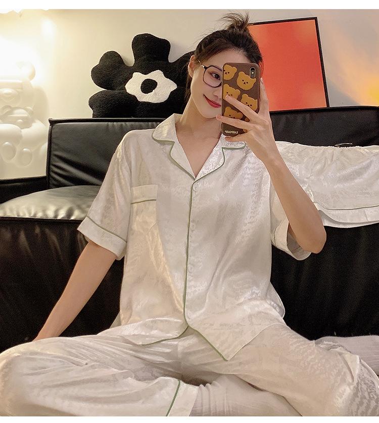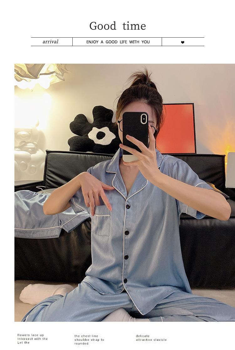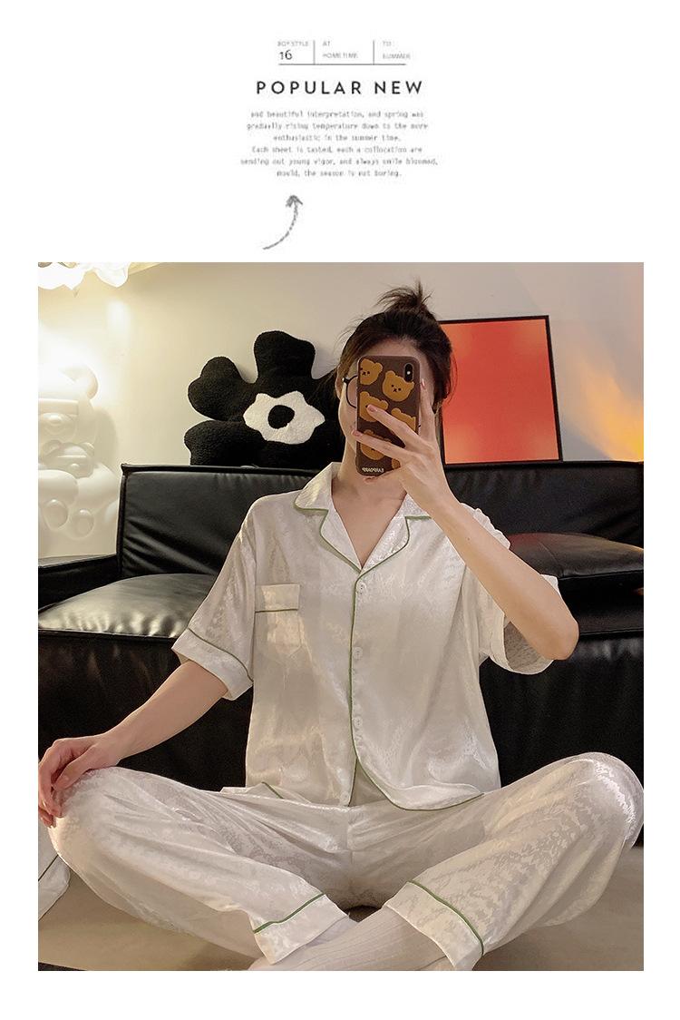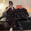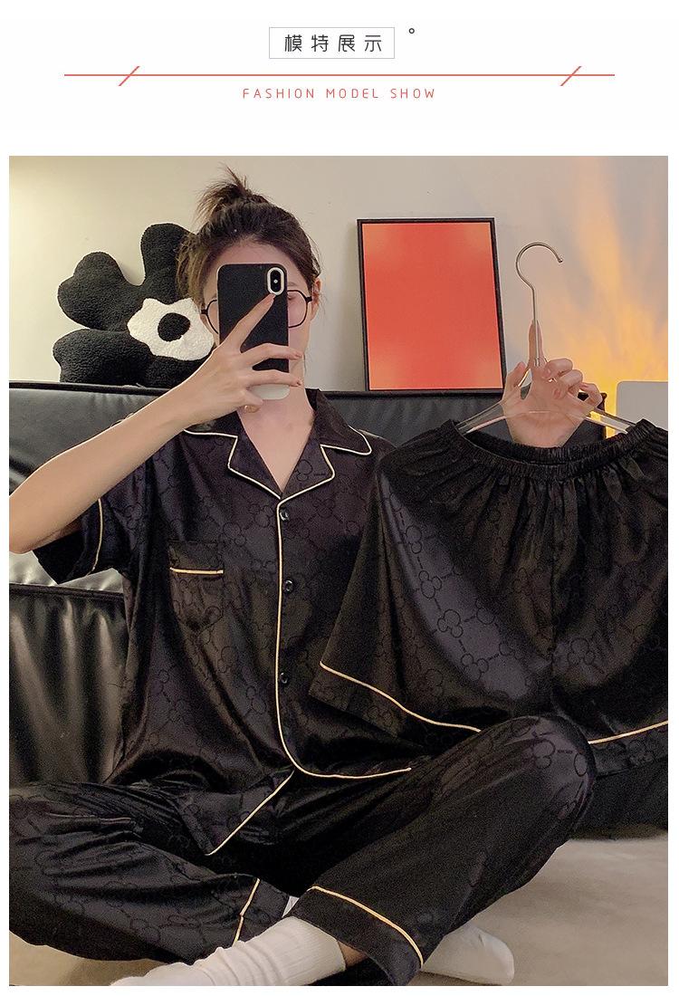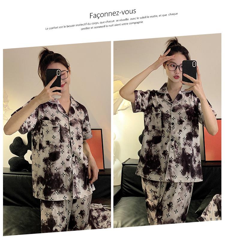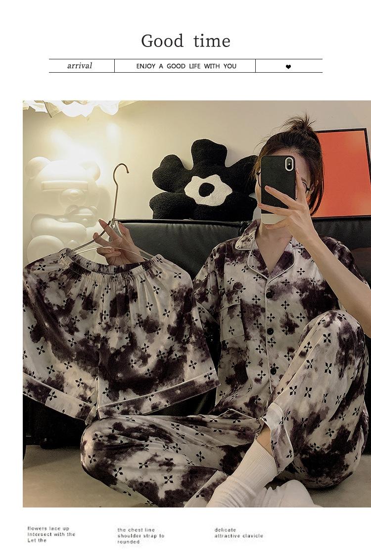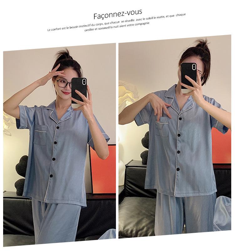 Pijama de tres piezas de seda de hielo y nieve de primavera y verano, pantalones de manga corta de seda de hielo para mujer, 2024, nuevo traje de ropa para el hogar popular en línea