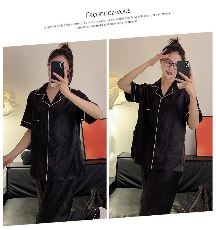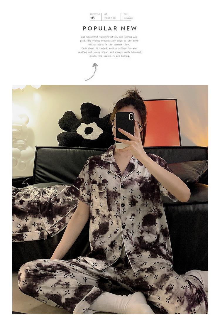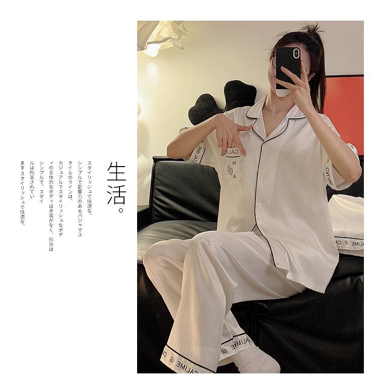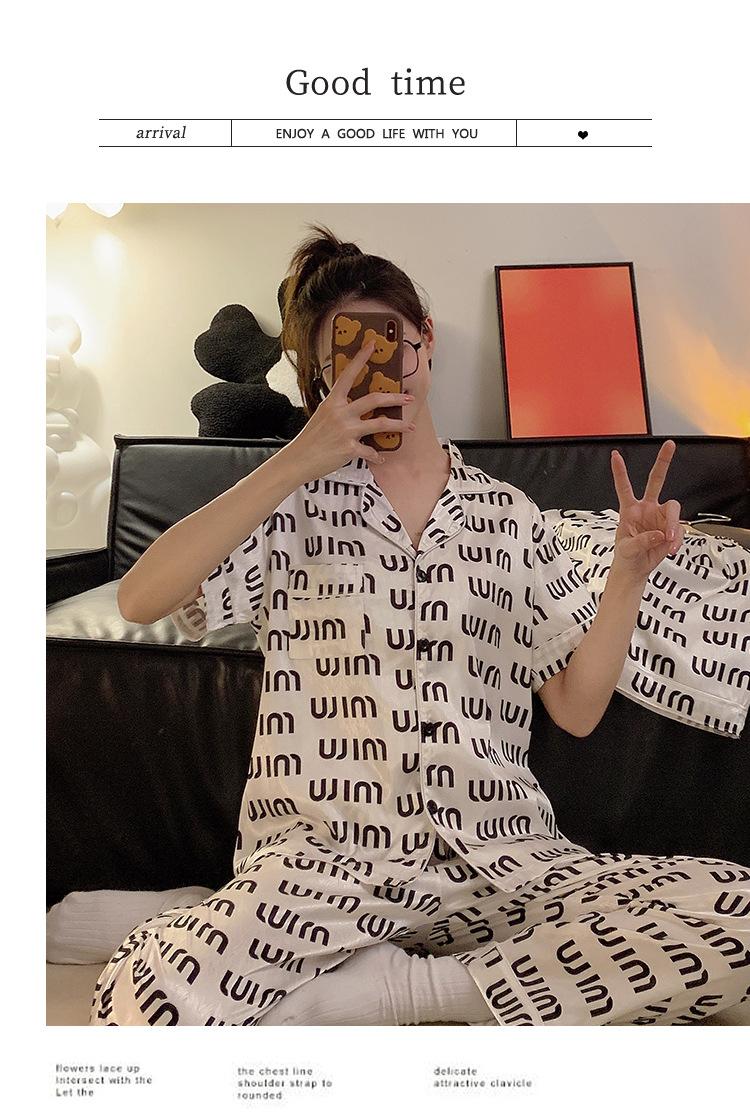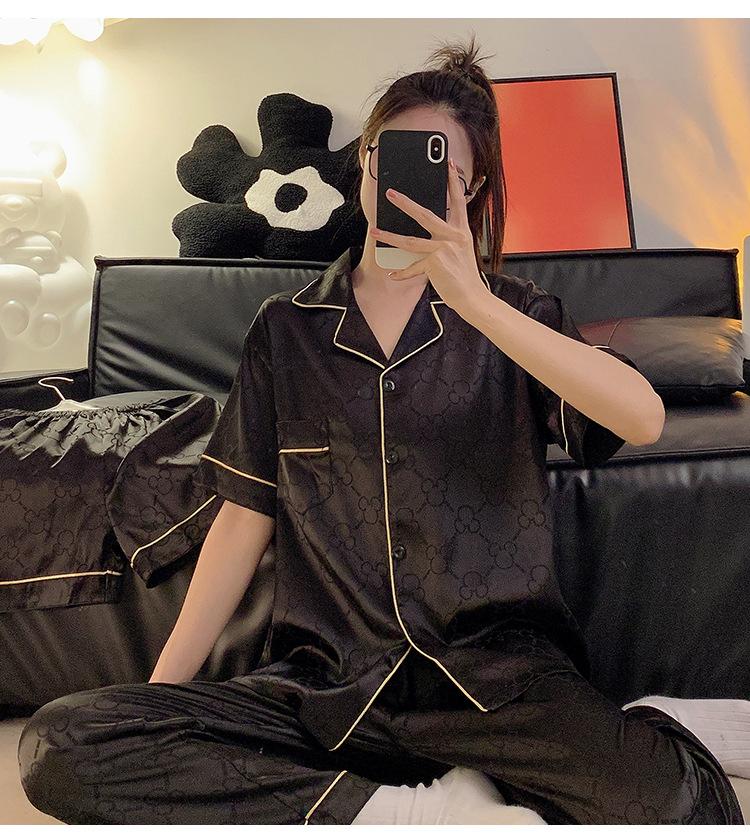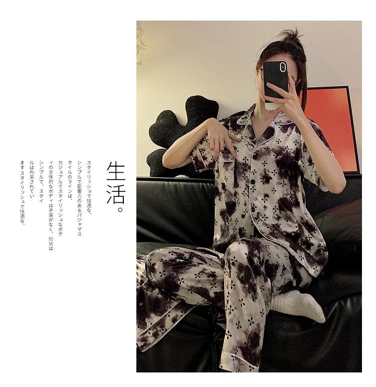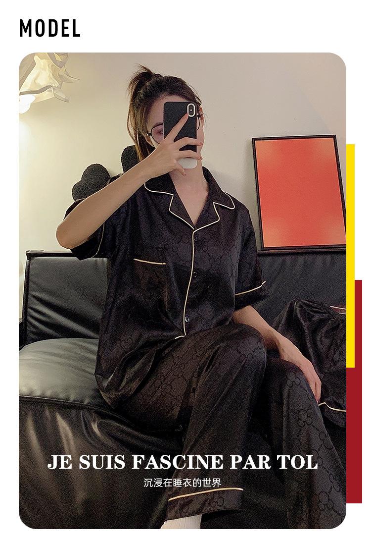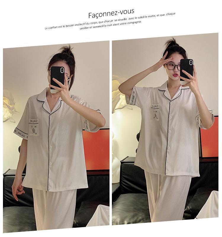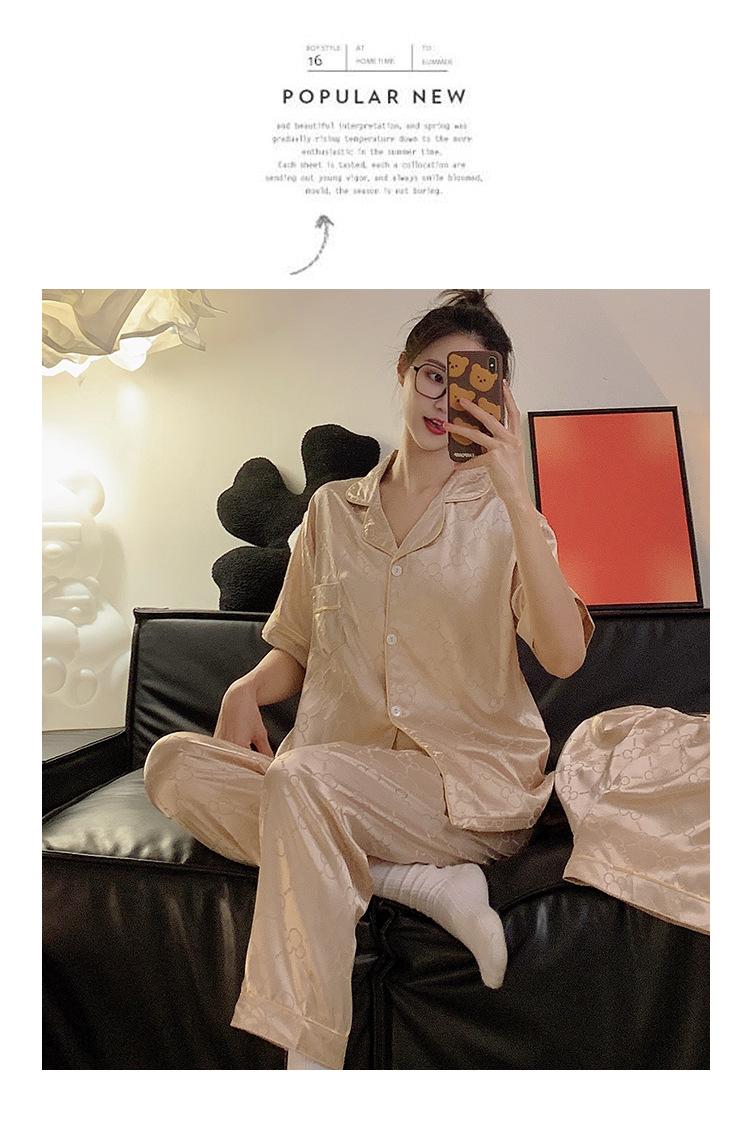 Pijama de tres piezas de seda de hielo y nieve de primavera y verano, pantalones de manga corta de seda de hielo para mujer, 2024, nuevo traje de ropa para el hogar popular en línea