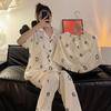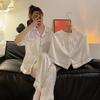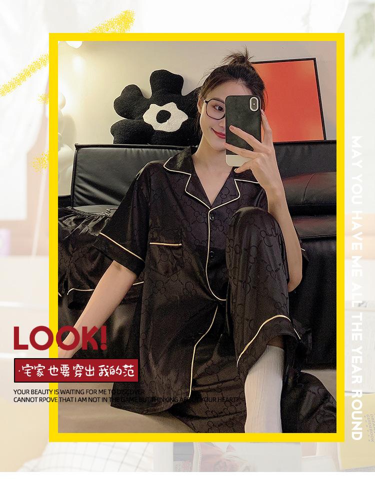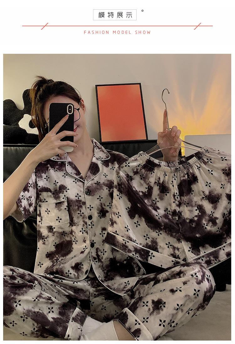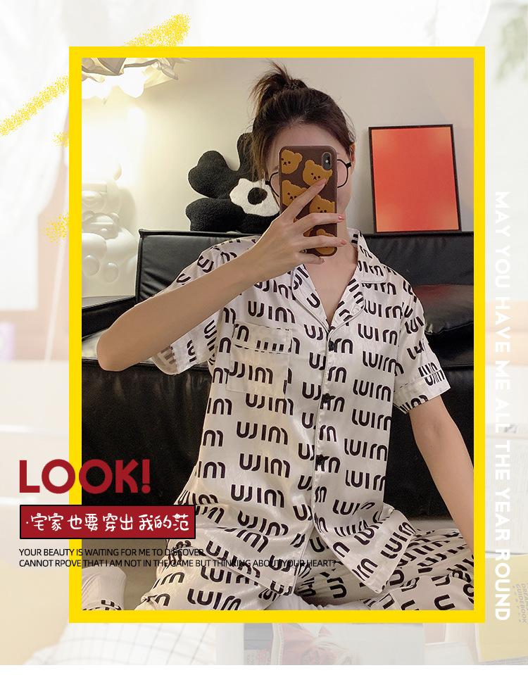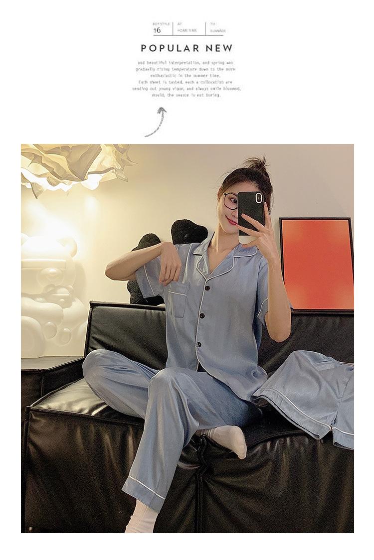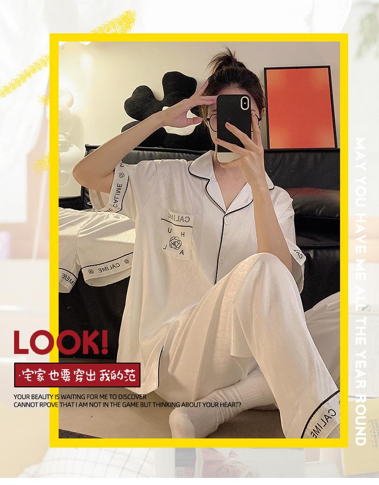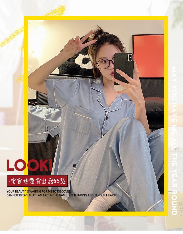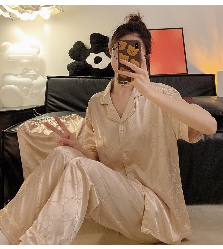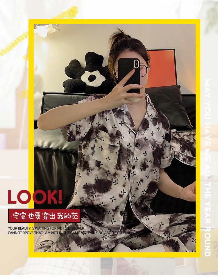 Pijama de tres piezas de seda de hielo y nieve de primavera y verano, pantalones de manga corta de seda de hielo para mujer, 2024, nuevo traje de ropa para el hogar popular en línea