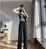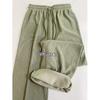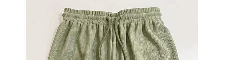 Pantalones anchos con textura verde para mujer, de verano, rectos, deportivos, informales, de cintura alta, con pliegues y drapeados.