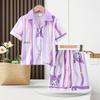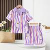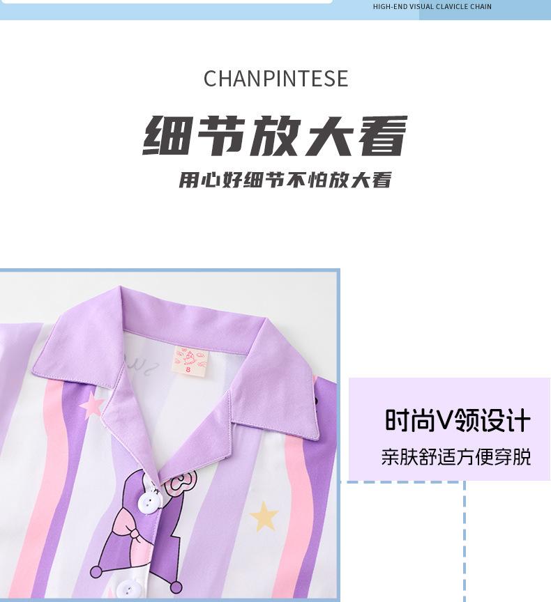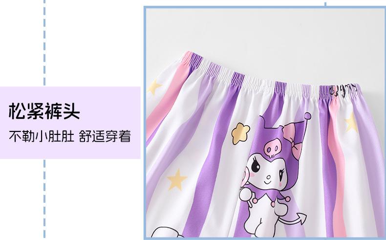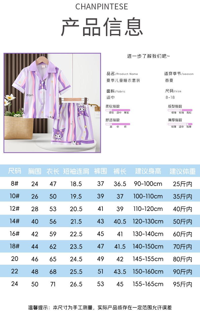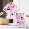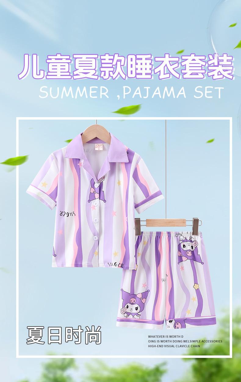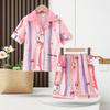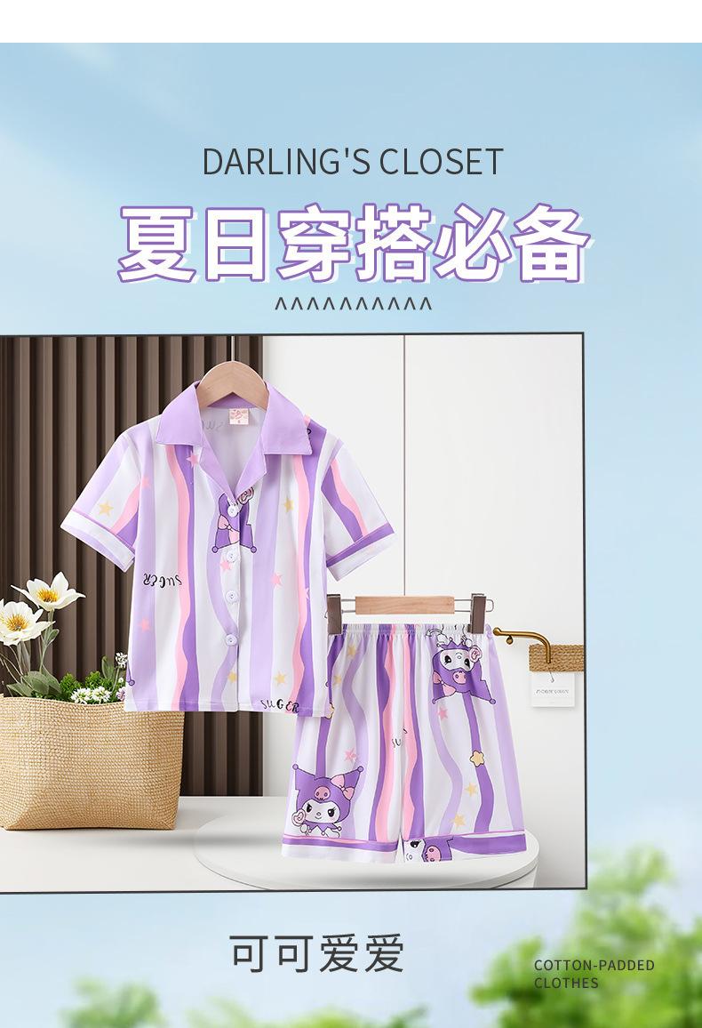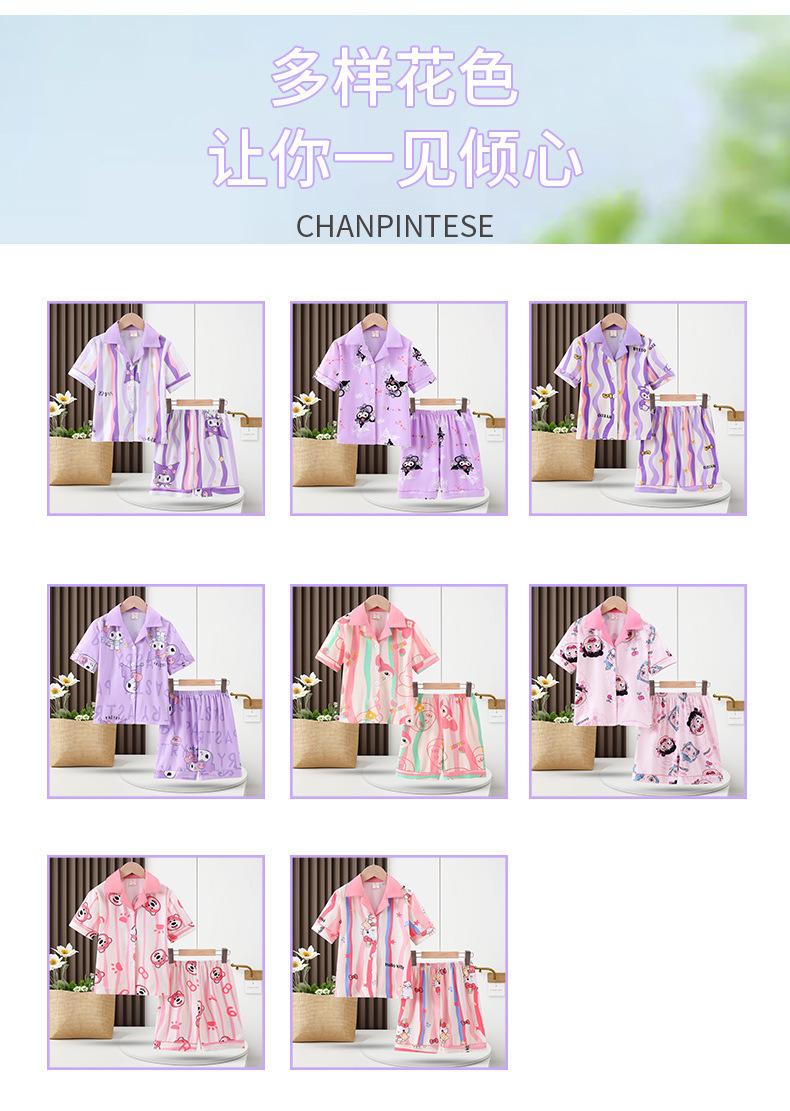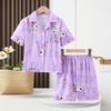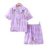 Pijamas de Verano de Manga Corta para Niñas de Seda de Leche Cárdigan Ropa para el Hogar Shorts Pijamas Infantiles Ropa de Aire Acondicionado de Dibujos Animados para Niñas