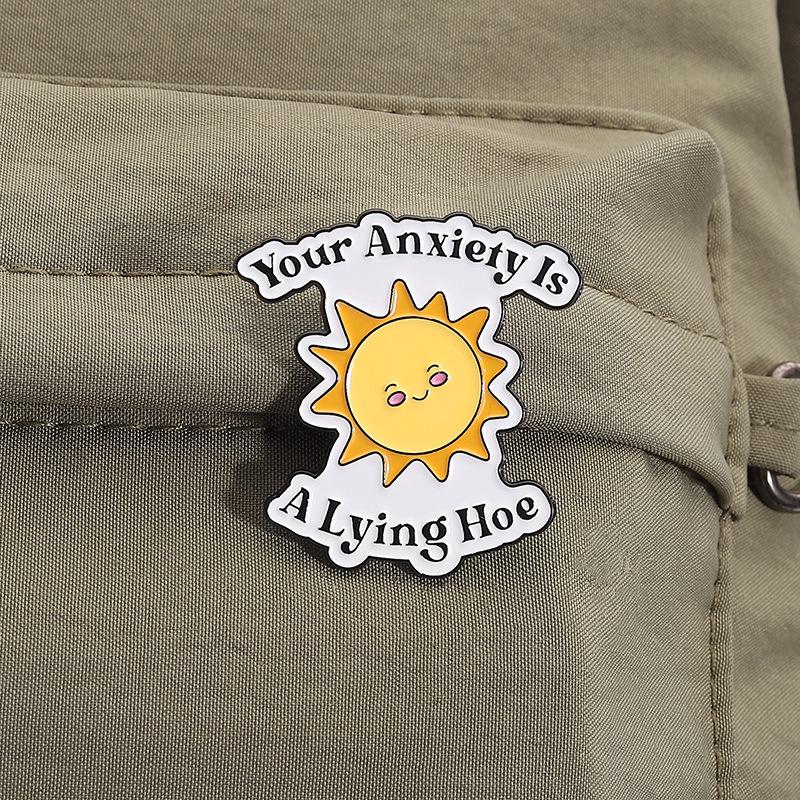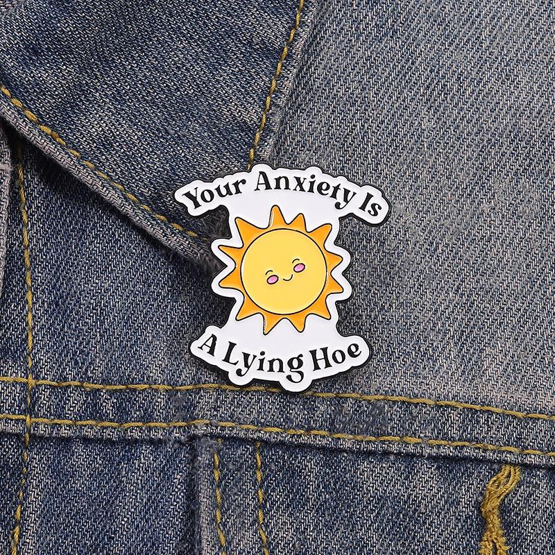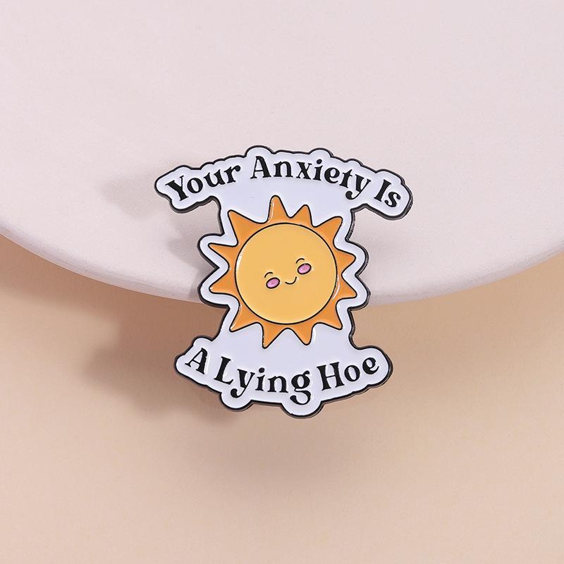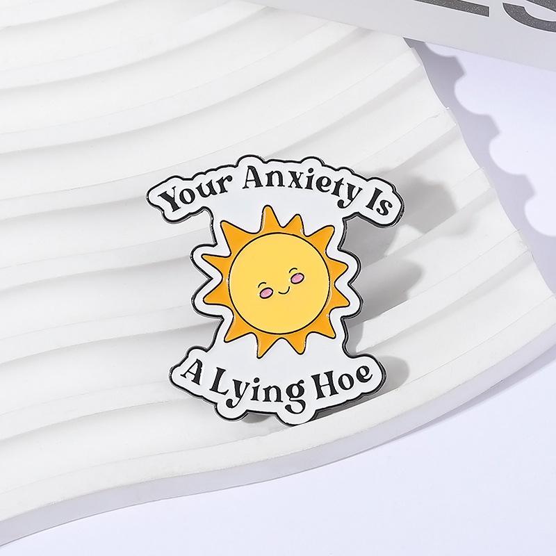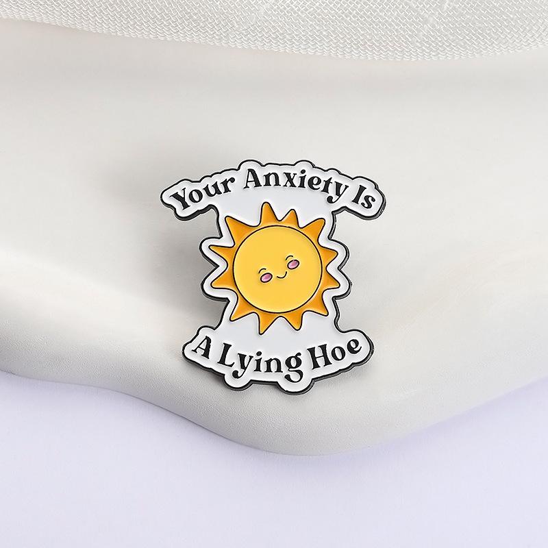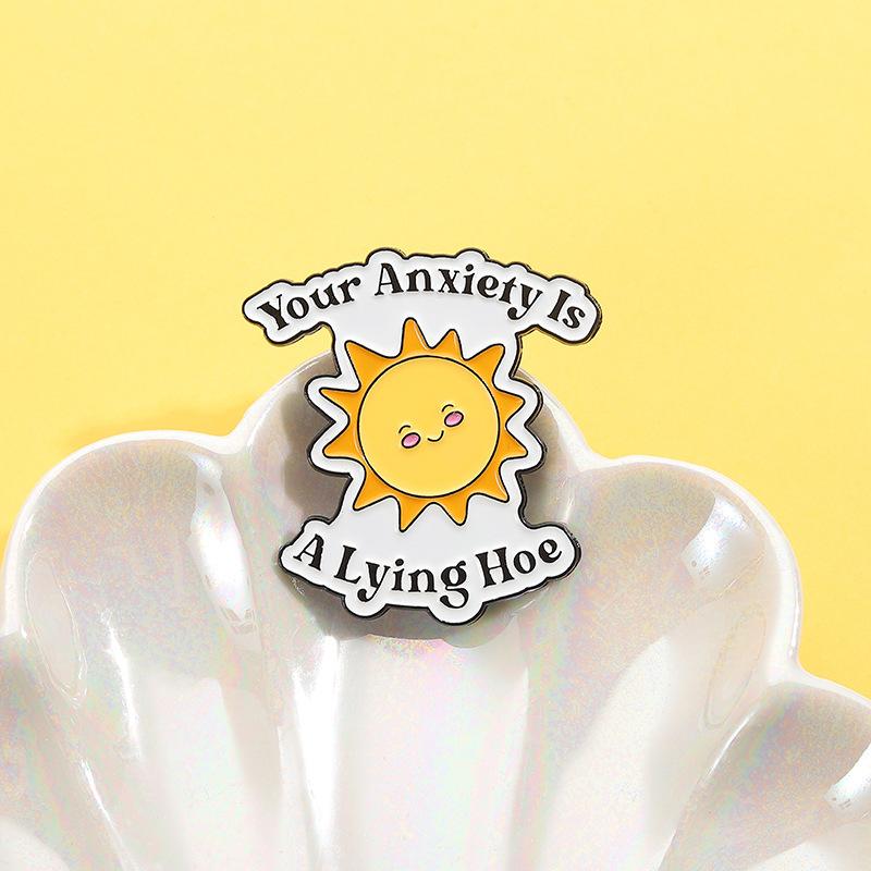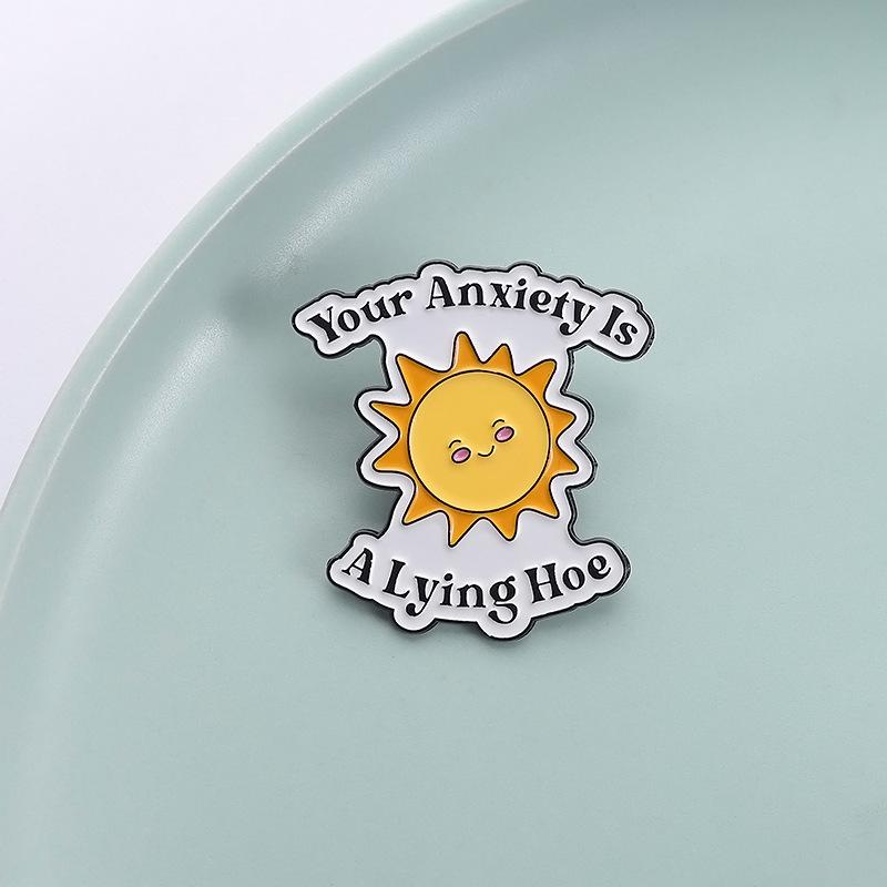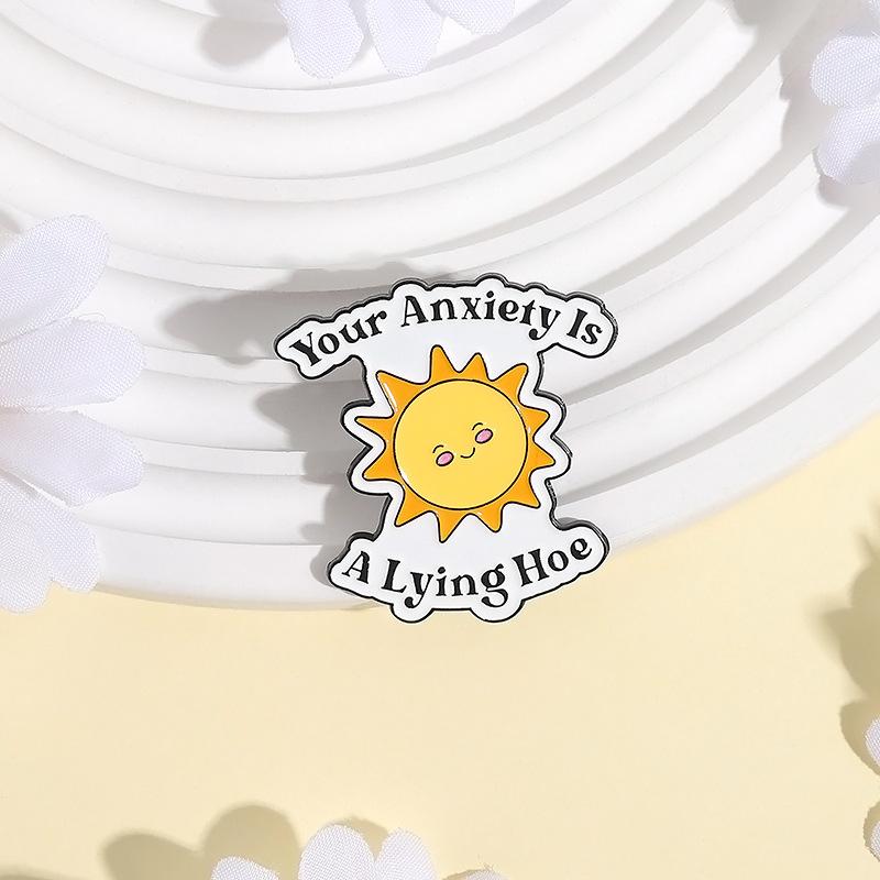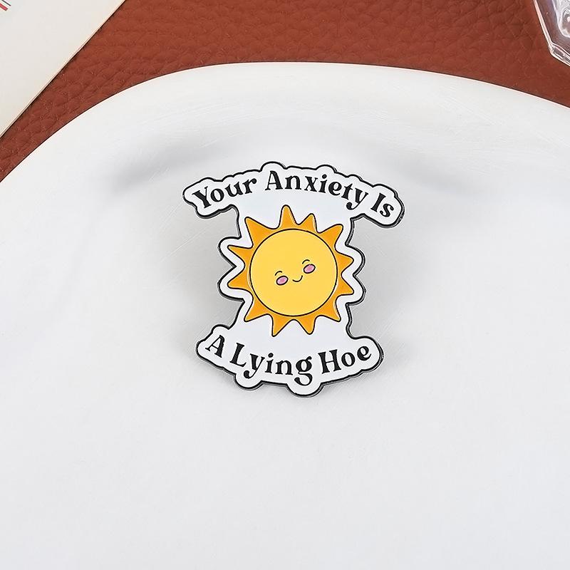 Broche con diseño de dibujos animados inspirador con letras en inglés y frases cortas, insignia creativa y pequeña con estilo de sol.