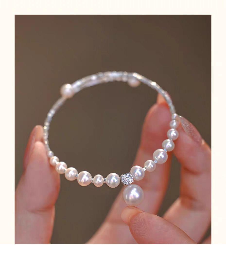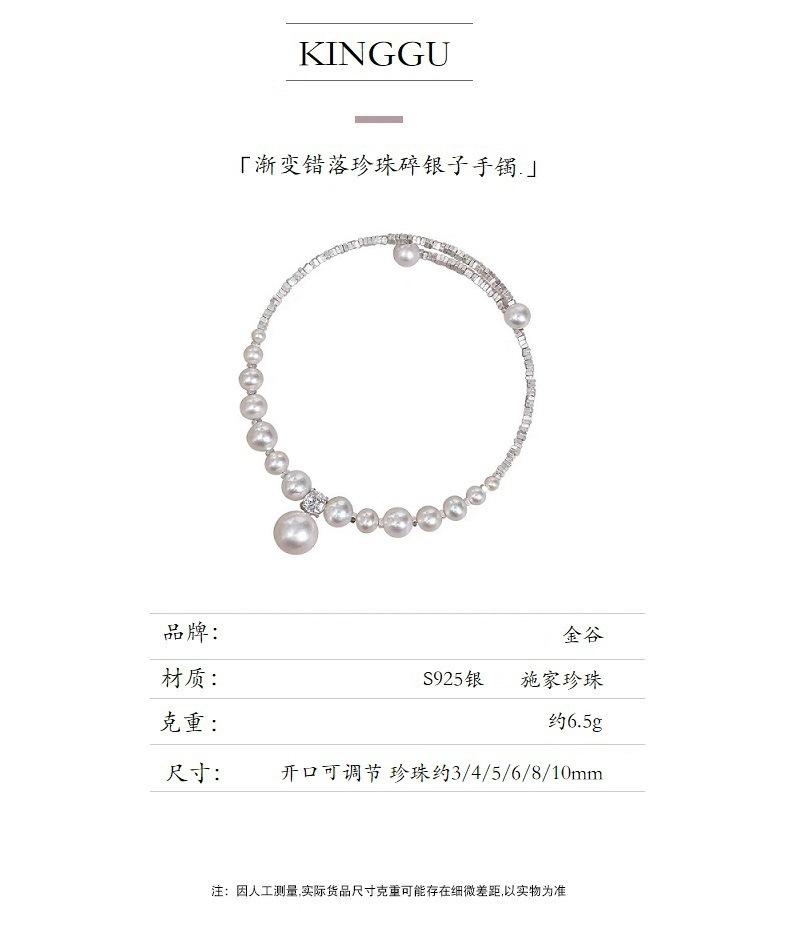Warm white gradient pearl broken silver bracelet (plain silver)