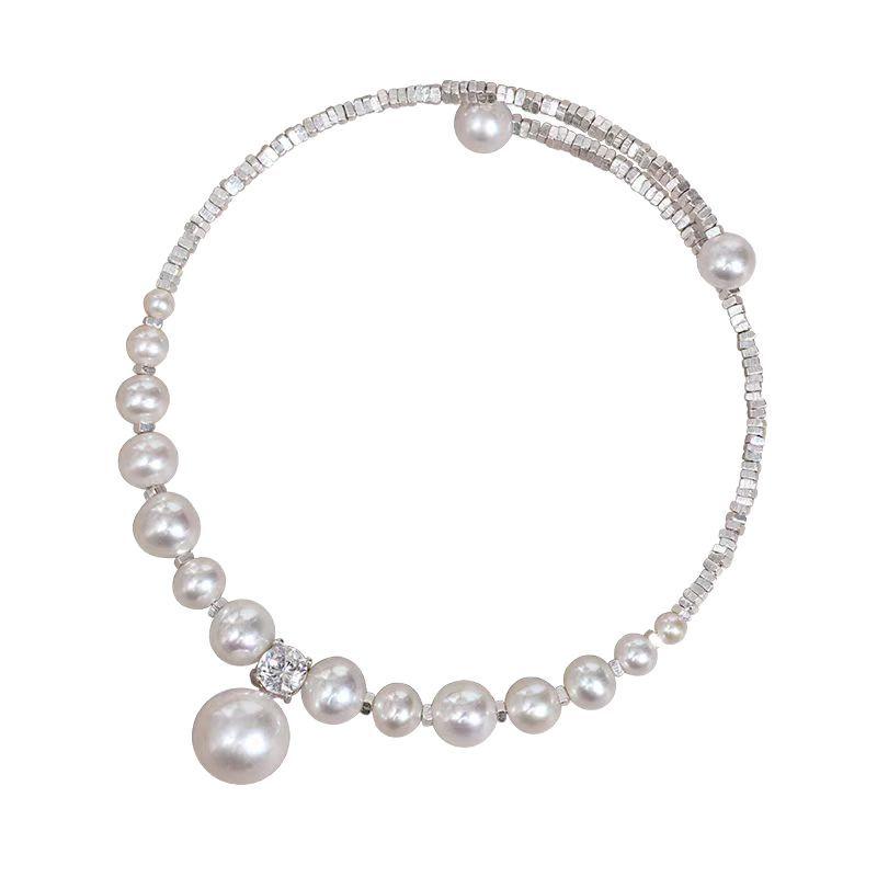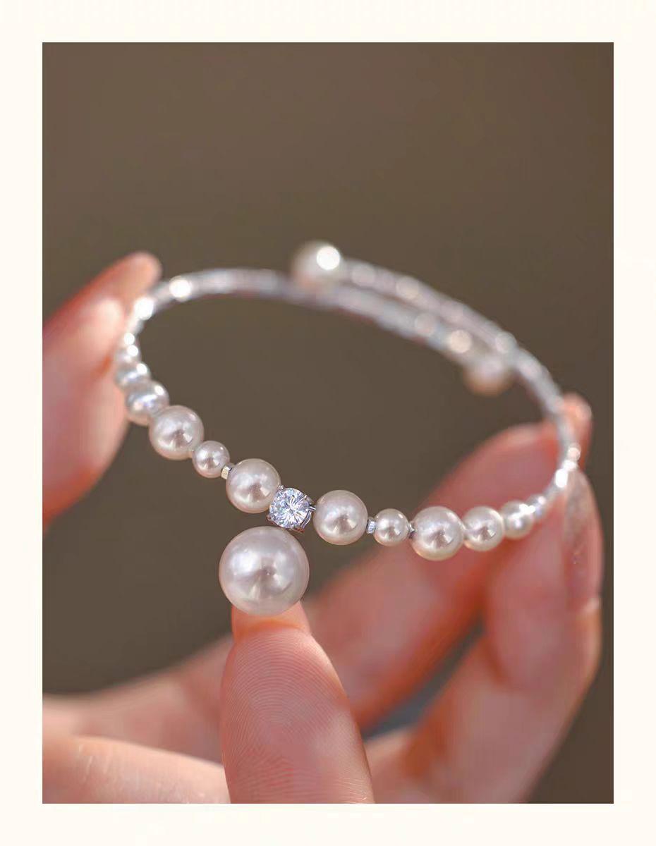 Pulsera de Perlas Degradadas Plateadas Rotas para Mujer Diana Lujo Ligero Nicho Exquisito Combinable de Alta Gama Nuevo Estilo 2025