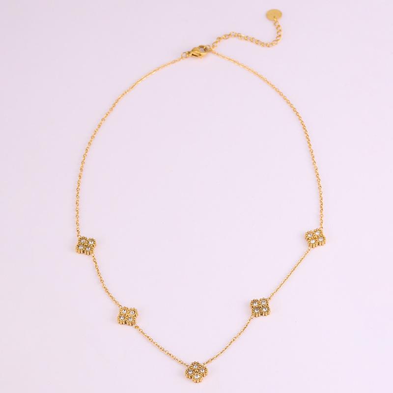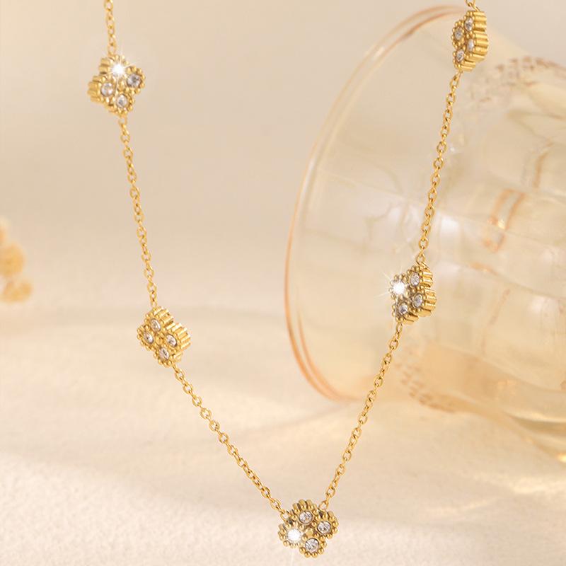 Gypsophila diamond four-leaf clover necklace