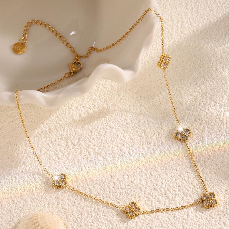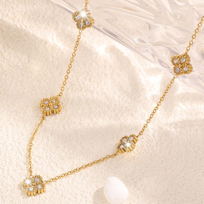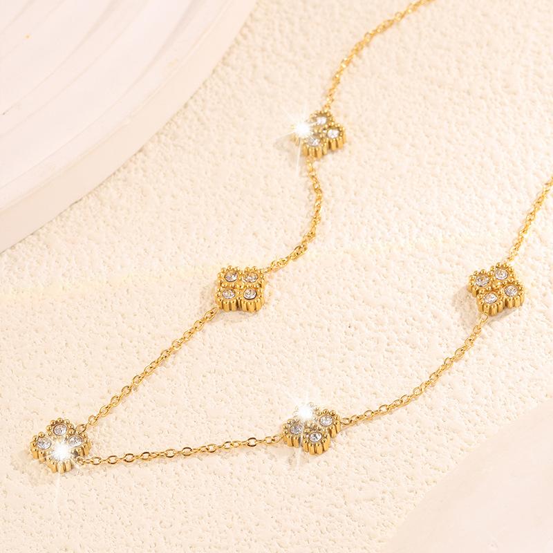 Collar de Acero Inoxidable Moderno y Simple con Diamante Collar de Trébol de Cuatro Hojas para Mujer, Lujo Ligero y de Alta Gama Versátil Collar de Aliento de Bebé