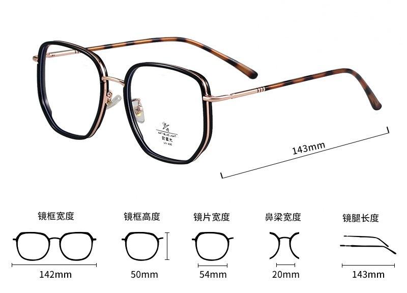Danyang Gafas Cuadradas Metal Tr Celebridad de Internet Gafas Planas Anti-Luz Azul Protección Ocular para Mujer Marco de Gafas para Miopía Sencillo M2037