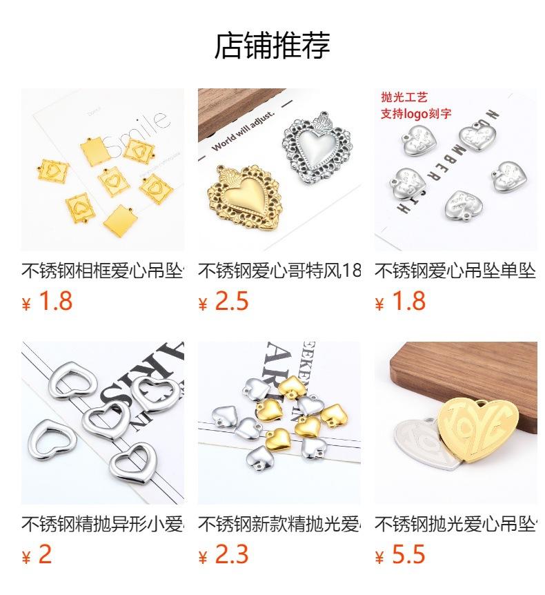 Steel color polished small heart-shaped pendant 5.8x7.8mm, Steel color polished small heart-shaped pendant 10x13mm